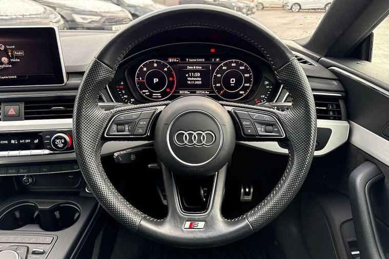 7" Colour driver information system, Audi connect, Audi drive select, Audi parking system plus with front and rear sensors, Audi smartphone interface, Automatic start-stop system with coasting functionality and efficiency programme, Bluetooth interface, Electro-mechanical power steering, MMI Navigation, Power tailgate, Service interval indicator, Voice control system, Diesel particulate filter, 2 x USB charging port with aux input socket, CD player, DAB Digital radio, Two SDXC card slots, Air inlet in matt aluminium with horizontal inlay, Aluminium roof frame and window trim, Auto dimming rear view mirror, Black grained rear grille, Body colour bumpers, Body coloured door mirrors, Chrome plated exhaust pipe, Electric adjustable heated door mirrors, Electric front windows, Front fog lights, High beam assistant, High gloss black B pillar trims and triangular rear door trim, Honeycomb side air inlet in titan black, Rain and light sensors, Rear diffuser in Twilight grey matt with honeycomb grille, S line badges on front wings, S Line body styling, S Line front and rear bumpers, S Line side skirts in black, S line sill plates, Twilight grey matt radiator grille in matt aluminium inlay, Windscreen with acoustic glazing, 40/20/40 split folding 3 seater rear bench seat, Adjustable steering column, Black headlining, Black perforated leather gearknob, Centre console with cupholders, Contrast stitching on seats, steering wheel and gear lever gaiter, Deluxe 3 zone electronic climate control, Front centre armrest, Front head restraints, Front/rear floor mats, Gearshift paddles, Illuminated door sill trim with S logo, ISOFIX child seat mounting and top tether, Jack and tool kit, Luggage compartment mat, Rear headrests, S embossed logo on front sport seats, Stainless steel pedals and foot rest, Non Smokers pack, 3x3 point rear seatbelts, 6 airbags - Driver, front passenger, curtain and side airbags, Electromechanical parking brake, Electronic Stabilisation Control (ESC) including ABS, ASR and EDL, Front passenger airbag deactivation, Height adjustable front seatbelts, Hill hold function, Multi-Collision braking, Pop-up bonnet for pedestrian protection, Pre sense city, Seatbelt monitoring, Tyre pressure warning, Variable restraint system, Warning triangle and first aid kit, Anti theft alarm system, Anti theft wheel bolts, Immobiliser, Keyless Go, Remote central locking, Tyre repair kit,
