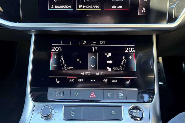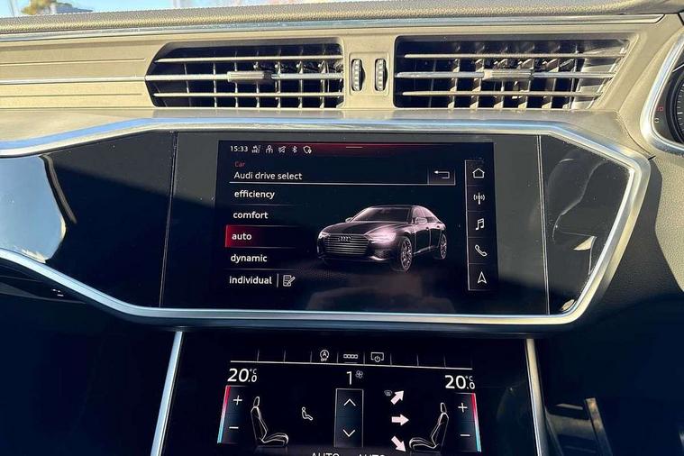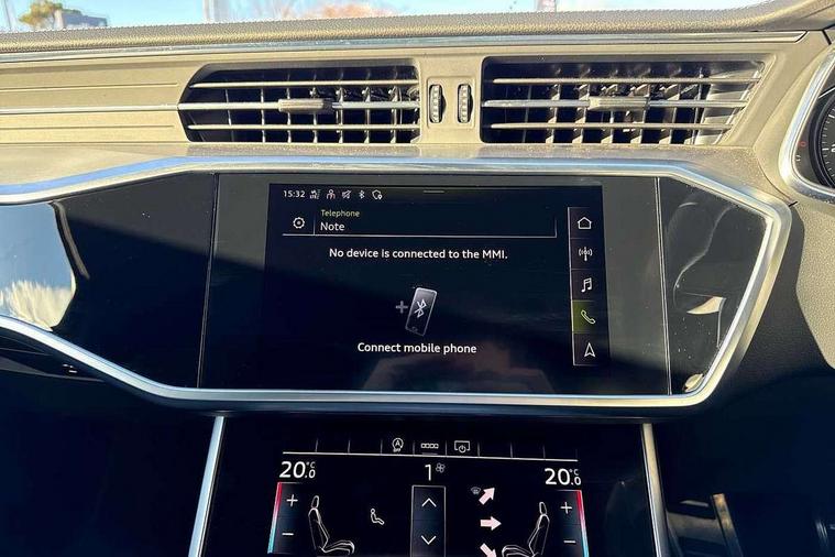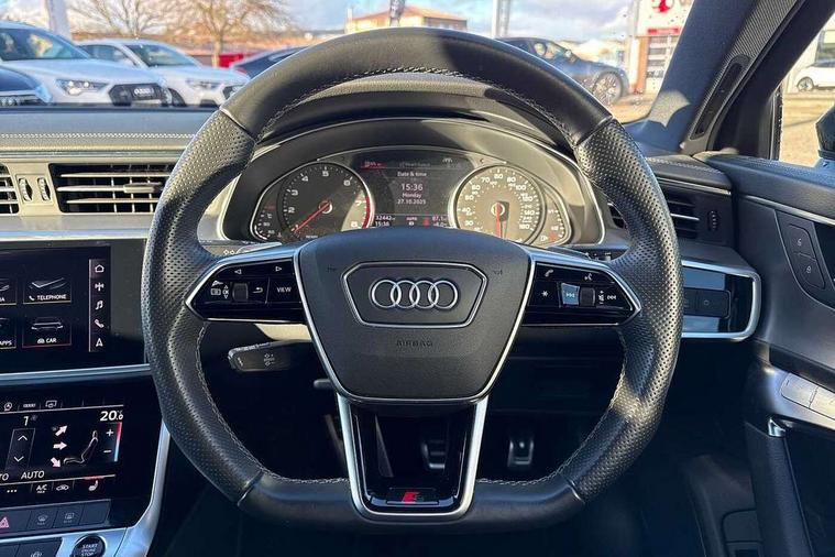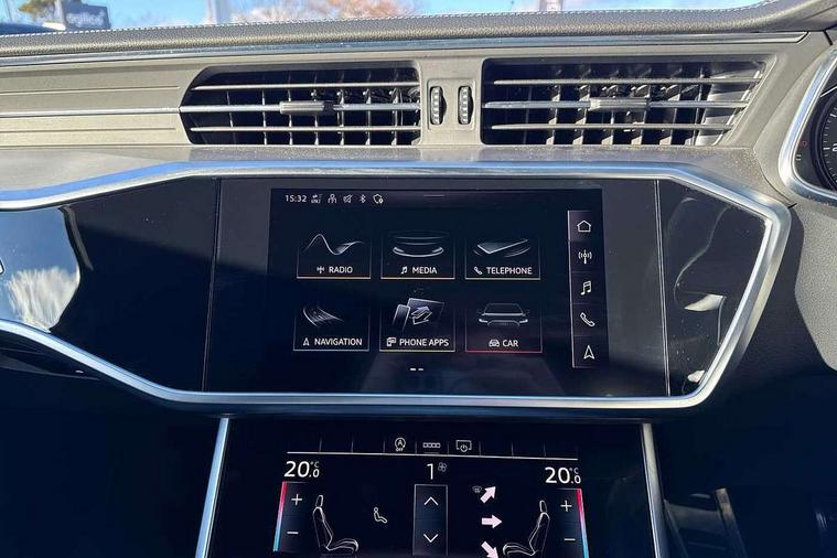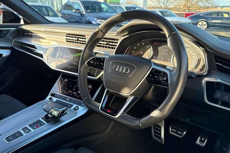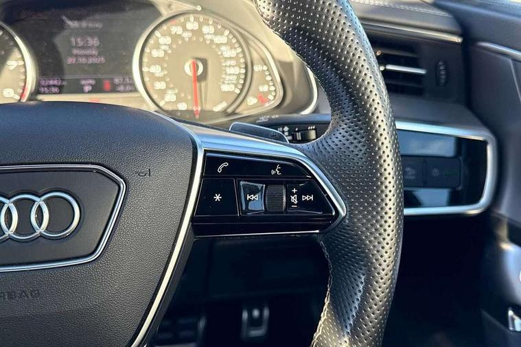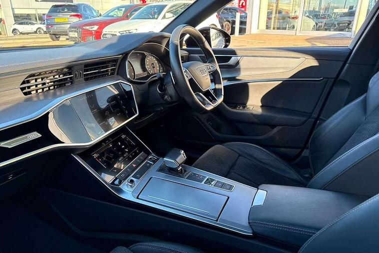 7" high resolution colour driver information display system, Audi connect safety and service (e-call), Audi drive select, Audi parking system plus - acoustic and visual park assist system for front and rear, Audi smartphone interface, Automatic start/stop system with coasting functionality, Bluetooth interface, Electric boot lid release, Lane departure warning system, MMI navigation with MMI touch + twin touch screens 8.8" and 8.6" with haptic and acoustic feedback, Progressive steering, Rear view camera, Service interval indicator, Voice control system, Sports suspension, Audi music interface, Audi sound system, Auxiliary input socket, DAB Digital radio, USB connection, Electric front/rear windows, Frameless auto dimming interior rear view mirror, Gloss black exterior mirror housings, Gloss black highlights on the exterior area of the Audi Single frame, Gloss black highlights on the front and rear bumpers, Gloss black highlights on the radiator grille, Gloss black highlights on the side windows trim strips, Headlight washers, Heat insulating glass in side and rear windows, Heat insulating glass in windshield, LED rear lights, LED signature front daytime running light, Matrix LED headlights with dynamic rear indicators, Matt black rear diffuser with diffuser strip and tailpipes in chrome, Matt black side air intake grille with inlay in matt aluminium, Privacy glass, Rain and light sensors, Signature rear LED light design, 2 zone deluxe electronic climate control, 4 way electric lumbar support for driver and front passenger, 40/20/40 split folding 3 rear seat bench in 3 parts with rear centre armrest, Black cloth headlining, Electrically adjustable front seats with driver memory, Front centre armrest, Front head restraints, Front/rear floor mats, Heated front seats, Height/reach adjust steering wheel, Illuminated door sill trims with S logo, Illuminated sun visors with vanity mirrors, ISOFIX child seat mounting and Top Tether with front passenger airbag deactivation, Leather gear knob, Rear headrests, Stainless steel pedals and foot rest, Tool kit and car jack, LED Interior Ambient Lighting Pack - A6, Non smoking pack - A6, 3 point seatbelts on all seats, Airbags - Front side, front and rear including head, Audi pre-sense front, Black seatbelts, EBD - Electronic brakeforce distribution, Electromechanical parking brake, Electronic Stability Control (ESC) including ABS, ASR and EDL, Extended pedestrian protection measures, Seatbelt monitoring, Tyre pressure warning light, Warning triangle and first aid kit, Anti theft alarm with tow away protection, Anti-theft wheel bolts and wheel loosening detection, Immobiliser, Keyless Go, Remote central locking, Matt brushed aluminium dark inlays, 20" 5 V spoke star design Audi sport cast aluminium alloy wheels in matt titanium look,