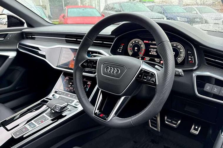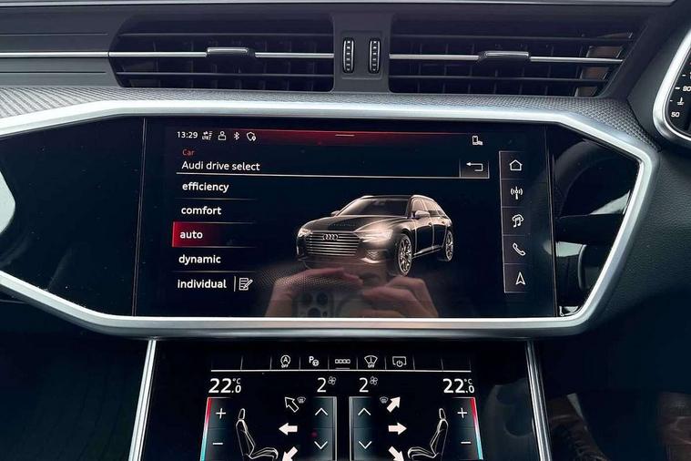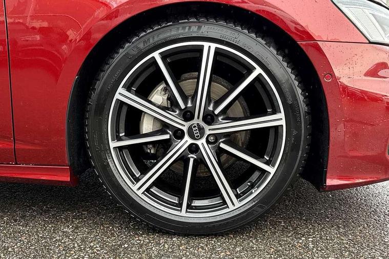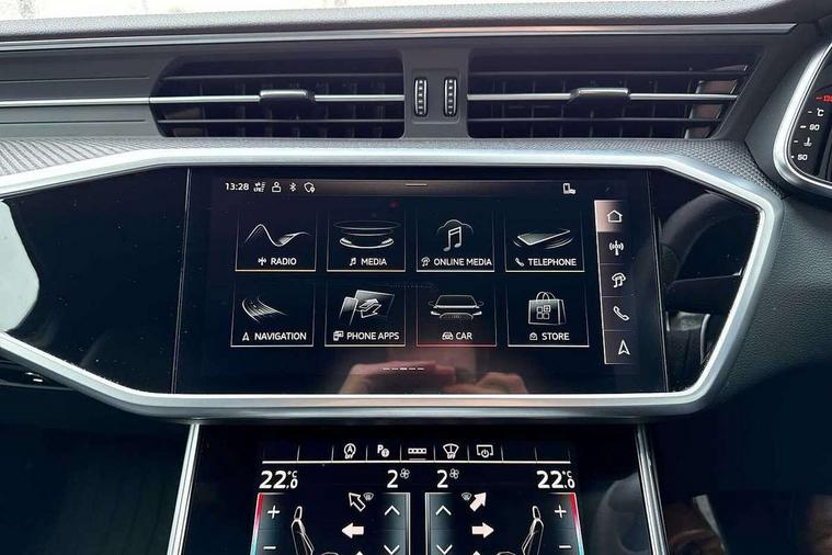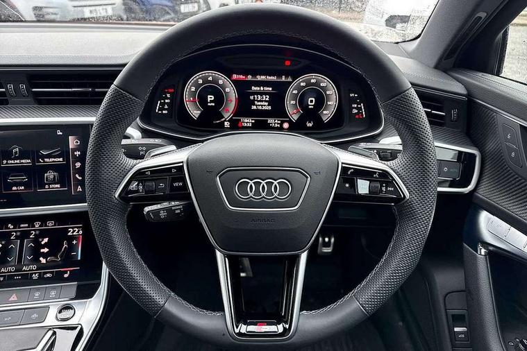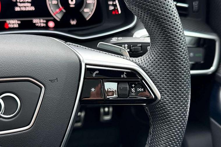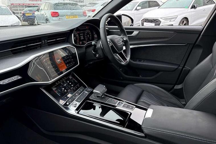 Audi connect safety and service (e-call), Audi connect with Amazon Alexa Integration, Audi drive select, Audi parking system plus - acoustic and visual park assist system for front and rear, Audi virtual cockpit, Automatic start/stop system with coasting functionality, Bluetooth interface, Camera based traffic sign recognition, Lane departure warning system, MMI navigation plus with 10.1" and 8.6" touch screens, Power operated tailgate, Progressive steering, Rear view camera, Service interval indicator, Smartphone interface includes wireless Apple carplay/Android Auto, Voice control system, 12V Mild hybrid, Quattro on demand, Sports suspension, Audi front music interface, Audi sound system, Auxiliary input socket, DAB Digital radio, USB connection, Audi beam, Black roof rails, Body colour rear roof spoiler, Electric front/rear windows, Electrically adjustable heated and folding + automatically dimming exterior mirrors with memory function, Frameless auto dimming interior rear view mirror, Front intermittent wipers, Heat insulating darkened glass in side and rear windows, Heat insulating glass in windshield, LED rear lights with dynamic indicators, LED signature front daytime running light, LED third brake light, Matrix LED headlights, Matt black rear diffuser with diffuser strip and tailpipes in chrome, Matt black side air intake grille with inlay in matt aluminium, Omission of output/technology badging, Privacy glass, Radiator grille in anthracite black matt, single frame in chrome and horizontal struts in matt aluminium silver, Rain and light sensors, Rear side wing doors, Rear wiper, 2 zone deluxe electronic climate control, 40/20/40 split folding 3 rear seat bench in 3 parts with rear centre armrest, Audi phone box light, Black cloth headlining, Electrically adjustable front seats including seat height, fore/aft position, backrest angle and 4-way lumbar with memory for driver's seat, Front and rear floor mats, Front centre armrest, Front head restraints, Heated front seats, Height/reach adjust steering wheel, Illuminated door sill trims with S logo, Illuminated sun visors with vanity mirrors, ISOFIX child seat mounting and Top Tether with front passenger airbag deactivation, Leather gear knob, Luggage compartment system, Rear headrests, Single front passenger seat, Stainless steel pedals and foot rest, Tool kit and car jack, Black styling package plus - A6 Black edition, LED Interior Ambient Lighting Pack - A6, Non smoking pack - A6, S line exterior style pack - A6, 3 point seatbelts on all seats, Airbags - Front side, front and rear including head, Audi pre-sense front, EBD - Electronic brakeforce distribution, Electromechanical parking brake, Electronic Stability Control (ESC) including ABS, ASR and EDL, Extended pedestrian protection measures, Manual child proof rear door locks, Seatbelt monitoring, Tyre pressure warning light, Warning triangle and first aid kit, Anti theft alarm with tow away protection, Anti-theft wheel bolts and wheel loosening detection, Immobiliser, Keyless Go, Remote central locking, Carbon twill inlays, 20" 10 spoke star black metallic audi sport alloy wheels in gloss turned finish,