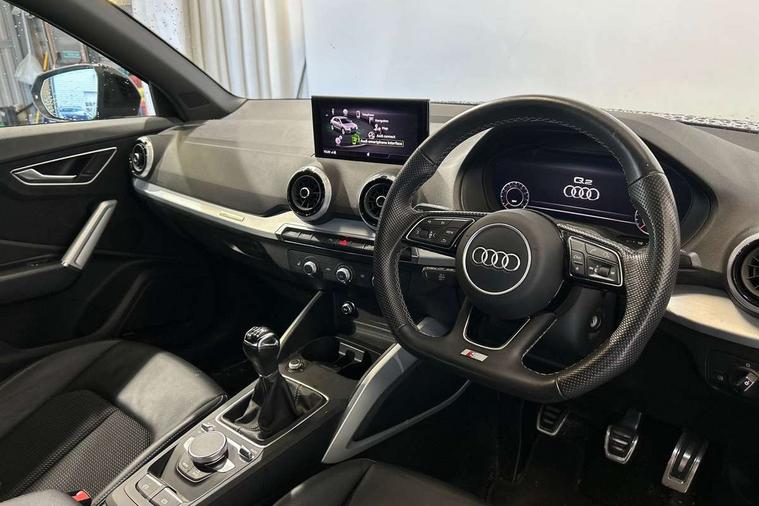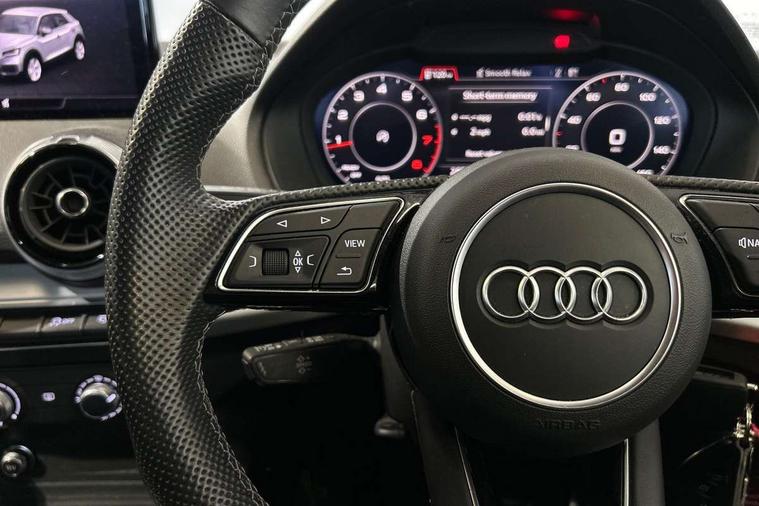 Audi connect navigation and infotainment includes innovative services, Audi connect remote and control connects your vehicle to your smartphone, Audi drive select, Audi drive select with efficiency, Audi smartphone interface, Audi virtual cockpit, Automatic start/stop system with recuperation, Bluetooth interface includes bluetooth audio streaming, Cruise control, E-call, MMI navigation plus with MMI touch, Power operated tailgate, Progressive steering, Rear parking sensors, 2 x SDXC card reader, 8 passive loudspeakers, DAB Digital radio, DVD Drive, Auto dimming rear view mirror, Black window trims, Bumper in full body colour paint finish, Electrically adjustable, folding, auto dimming and heated door mirrors with integrated LED side indicators, Front windscreen with grey tinted sunband, LED daytime running lights, LED headlights with LED rear lights, LED third brake light, Privacy glass - dark tinted rear and rear side windows from B-pillar backwards, Rear side wing doors, Rear wiper, Variable front intermittent wipers, Wheel arch trims in manhattan grey, 12V socket in front, 3 seat bench in 2nd row, 3 spoke flat bottomed multi-function leather sport steering wheel, 4-way electric lumbar support for front seats including seat height adjustment for both front seat, 60/40 split folding rear seat bench, Black cloth headlining, Front and rear head restraints, Front centre armrest, Front/rear floor mats, Height/reach adjust steering wheel, Illuminated door sill trims with S logo, ISOFIX child seat mounting for front passenger with airbag deactivation and outer rear seat including top tether attachment point for outer rear seats, Single front passenger seat, Stainless steel pedals, Black styling pack - Q2, 3x3 point rear seatbelts, 6 airbags - Front, curtain and front side airbags, Electromechanical parking brake, Electronic stabilisation control including ABS, ASR and EDL, Hill hold assist, Pre-sense front with pedestrian recognition, Seatbelt monitoring, Tyre pressure warning light, Warning triangle and first aid kit, Anti theft alarm, Anti theft wheel bolts, Electronically operated child locks, Remote central door locking, Aluminium interior element, Matt brushed aluminium trim inlays, Tool kit,