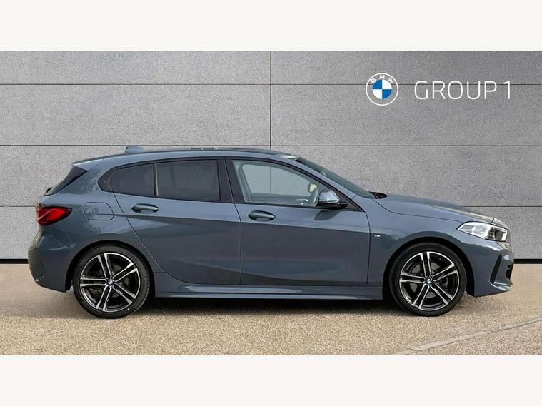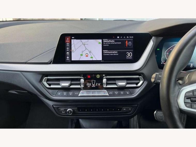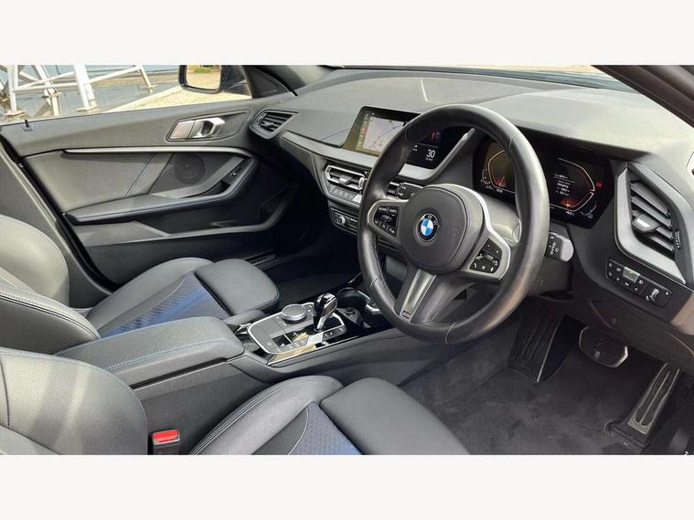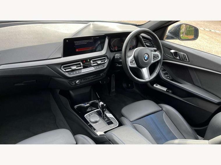 Active guard plus, Attentiveness assist, BMW Online services, BMW Teleservices, Check Control warning system for monitoring of lights and door/luggage compartment open warning, Connected eDrive Services, Eco pro mode, Integrated owners handbook, Oil sensor for level and grade, On board computer, Optimum shift indicator, Personal Profile, Pull away assistant, Speed limiter, Aluminium lightweight construction, Anti roll bar front and rear, Balancer shaft, Double VANOS, Drive Performance Control, Electronic differential lock, High precision injection, M sport suspension, Petrol Particulate Filter, VALVETRONIC engine management, Bluetooth audio streaming, DAB Digital radio, Auto dimming rear view mirror, Automatic headlight beam throw control, Automatic windscreen wipers and automatic headlight, Body colour door handles, Body colour mirror caps, Chrome 'M' logo side designation, Chrome exhaust tailpipe in single, round (Exhaust tailpipe, stainless steel - single, round), Chrome kidney grille frame with Satin Aluminium struts, Direction indicator side lights in exterior mirrors, Electric folding and anti dazzle exterior mirrors, Fading support, Follow me home headlights, Front and rear bumper system with replaceable deformation elements, Front and rear electric windows with open and close fingertip control, anti trap facility and comfort closing, Front door sill finishers in black plastic with M designation in metallic look, Green tinted heat protection glazing, Heated, electrically adjustable exterior mirror aspheric on driver side, convex on passenger side, High gloss shadowline window frame, Recess cover mirror frames and B/C pillar embelisher trim, High level third brake light, LED daytime running lights, LED eyebrow turn indicators, LED front fog lights, Lightweight engineering, Matt black air guide grilles, Model designation on right side of tailgate, Nearside reverse light in rear light cluster, Preparation for high beam assistant, Rain sensor including auto headlights activation, Rear fog lights, Rear window wiper, Shark fin antenna, Visible VIN plate, Welcome lighting, 12V power socket in centre console, 3 rear seat head restraints, 3 spoke M sports design leather steering wheel finished in nappa leather with specific M badge, Anthracite headlining, Anthracite Velour floor mats, Child seat ISOFIX attachment for two outer rear seats and front passenger seat with anchorage points, Conditioned based service, Dakota leather upholstery with perforation and contrast stitching, Driver and front passenger seat heating, Folding rear clothes hook, Four grab handles integrated in roof lining, Front and rear door pockets, Front and rear door pockets with bottle holders, Front and rear side armrest integrated into door trim, Front armrest foldable with integrated storage compartment, Front sports seats with electric side bolster adjustment, Glove compartment, Height adjustable front head restraints, Manual adjust steering wheel, Multi-function controls for steering wheel, Storage compartment in centre console, Sun visors with vanity mirrors and insert tab, Two zone automatic air conditioning, Additional interior lighting pack - 1 Series, Connected pack professional - 1 Series, Extended storage pack - 1 Series, Interior lights pack - 1 Series, Luggage compartment pack - 1 Series, M Sport exterior styling aerodynamics pack - 1 Series, 2 tone horn, 3 point seatbelts on all seats, front pyrotechnic belt tensioners, stopper and belt force limiters, rear coded belt buckles, Airbags - front driver/passenger, front & rear curtain, front side, Anti lock braking system (ABS) with brake assist, BMW emergency call, Brake drying, Braking readiness, Crash sensor activating central locking release, hazard warning lights, fuel cut off, interior lighting + activation of safety battery terminal clamp, Driver and front passenger seat belt security check, Dynamic stability control + (DSC+), Dynamic Traction Control - DTC, Electrically operated hand brake, Front and rear disc brakes, Front passenger manual airbag deactivation, Seatbelt warning, Side impact protection, Tyre pressure monitoring system, Warning triangle and first aid kit, Automatic drive away locking facility, Central locking switch for all doors, fuel filler cap and luggage compartment, Deadlocking function system to all doors, Locking wheel bolts, Remote control with integrated key with High-gloss Black inlay and M designation and 1 button for open/ close lock, window, open luggage compartment, Start/stop button with comfort go keyless engine start and auto start stop deactivation button, Thatcham Cat.1 alarm and immobiliser, Contrast stitching on instrument panel, Reduced rolling resistance tyres,