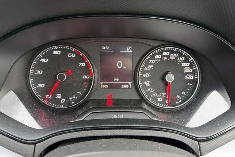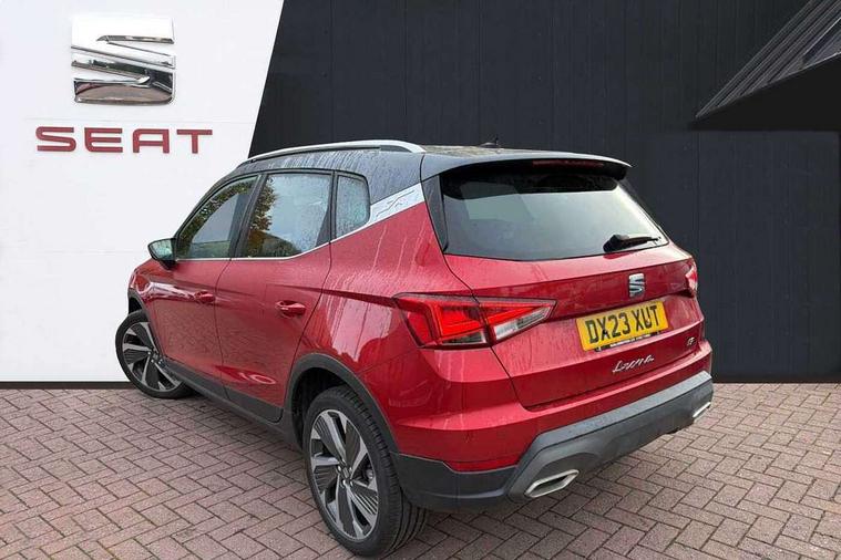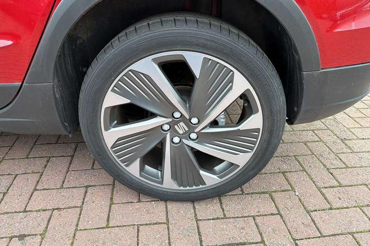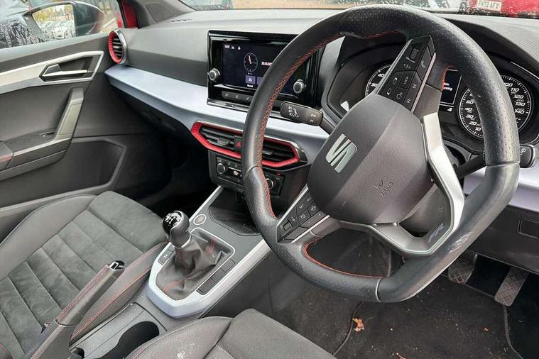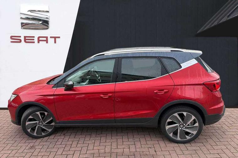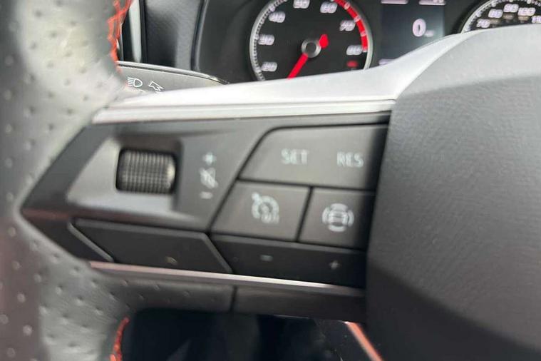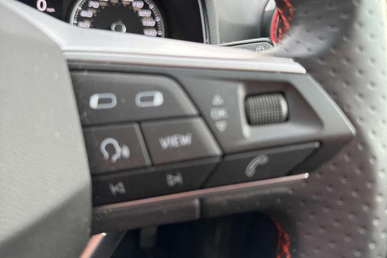 'Lights On' Reminder warning buzzer, Analogue cockpit with physical dials, Digital clock, E-call, Electric speed sensitive power steering, Full Link Smartphone Integration with Mirror Link, Apple Car Play, Google Android Auto with USB Type C cable for Apple and Android compatibility, Lane keeping system, Low fuel warning light, Outside temperature display, Rear parking sensor, RPM counter, Seat connect with safety, service and remote, SEAT Drive profile - Four different models normal-sport-eco-individual, steering response, throttle response, Trip computer, Wireless phone charger, Bluetooth interface for hands free and audio streaming, DAB digital radio and AM/FM radio, Media system with 8.25" colour touchscreen with USB port (type c), Steering wheel mounted audio controls, Anti theft roof antenna, Automatic activation of hazard warning lights, Body coloured bumpers, Body coloured door handle inserts, Chrome roof rails and window surrounds, Dark tinted rear windows, Dimming rear view mirror, Electric front/rear windows, Electrically adjustable and heated door mirrors, Front fog lights with cornering function and rear fog light, FULL LED automatic headlights with dynamic headlight range control, coming and leaving home, LED daytime running lights, LED rear tail lights and licence plate lights, Protective side mouldings, Rear side wing doors, Rear spoiler, Rear window wash/wipe, Roof colour door mirrors, Third brake light, Twin exhaust pipe styling hidden exhaust pipe, Visible VIN plate, Windshield wiper with intermittent control and potentiometer, 2 cupholders, 3 seat bench in 2nd row, 60/40 split folding rear seat, Aircare filter, Black interior roof, Double boot floor, Driver sunvisor with covered mirror + card holder, Dual zone climate control, Front comfort seats, Front courtesy light with 2x front and 2x rear reading lights, Gear shift indicator, Height adjustable front seats, Height/reach adjustable steering column, Illuminated boot, Instrument lighting with brightness control, Interior ambient lighting, Interior light in footwell, central console and door panel, ISOFIX points in outer rear seats with top tether anchorage points, Microsuede cloth upholstery, Passenger sunvisor with vanity mirror, Perforated flat bottomed leather steering wheel/gear knob/handbrake with red stitching and FR logo, Single front passenger seat, Two front and three rear height adjustable headrests, Interior chrome pack - Arona, 3 point seatbelts on all rear seats, ABS, Active front headrests, Child locks on rear doors, Driver and front passenger airbags with front passenger airbag de activation, front side and curtain airbags, Electronic stability control, Emergency Brake Assist (EBA) and front assist, Front and rear seatbelt reminder, Hill hold control, Multi-Collision braking, Tiredness recognition system, Traction control, Tyre pressure monitoring system, Alarm with back-up horn, Electronic engine immobiliser, KESSY Keyless entry and go, Locking wheel bolts, Remote central locking + deadlocks, Tow away protection, Titan black dashboard,