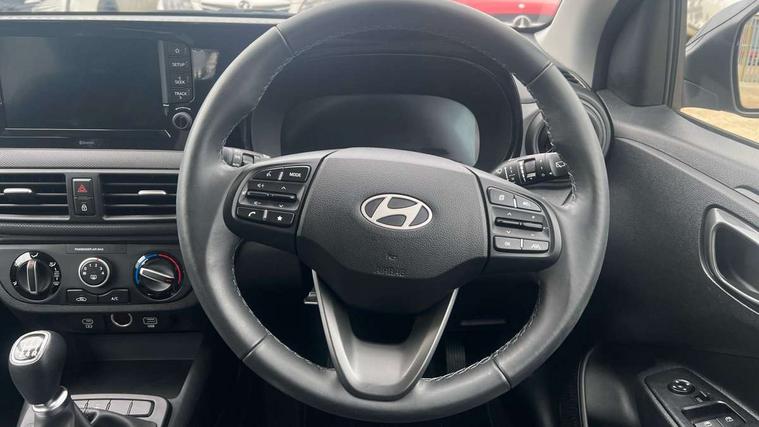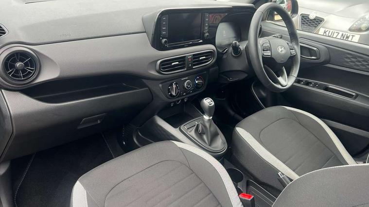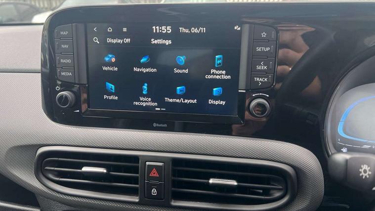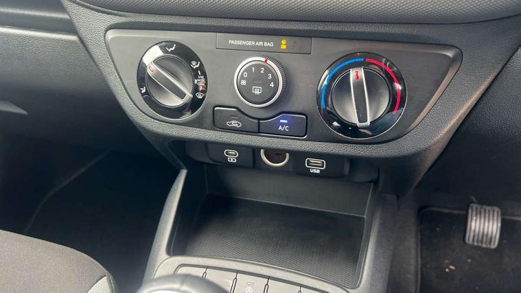 Apple car play/Android Auto, Bluelink mobile remote connectivity, Bluetooth connectivity with voice recognition, Cruise control, Driver attention alert system, eCall emergency call system, Forward Collision-Avoidance Assist (FCA) - Pedestrian/Cyclist, Front USB-C charging and USB-A data, Full-width 4.2" LCD instrument cluster, Intelligent speed limit assist, Lane departure warning system with lane keep assist - LKAS, Lane follow assist, PAS, Rear parking sensors, Rear view camera with guidelines, Roadside assistance, Start/Stop function, Tailgate, Trip computer, 2 front/2 rear speakers, Rear USB-C device charger, Steering wheel audio, phone and cruise controls, 1 speed non intermittent rear windscreen wiper, Black finish on B pillars, Body colour door handles, Body coloured bumpers, Body coloured door mirrors, Electric front windows, Electric rear windows, Electrically adjustable and heated door mirrors, Flat metal emblem, Front grille in matte black, Front intermittent wipers, Halogen daytime running lights, Halogen headlights, Headlights inner with Black Blade design, Heated rear window, High beam assist, Indicator light on door mirrors, Rear roof spoiler with integrated LED brake light, Rear side wing doors, 12v power outlet - front, 3 seat bench in 2nd row, 60/40 split folding flat to floor rear seats, Air conditioning, Auto light control, Bottle holders in front/rear doors + front centre console, Cabin and luggage compartment interior lighting, Cloth upholstery, Driver + passenger vanity mirrors, Driver's seat height adjustment, Driver/passenger sunvisors with ticket holders, Floor mats, Front door pockets, Front Head Restraints - Vertical and Horizontal Adjustment, Glove compartment, Height adjustable steering column, Isofix child seat preparation, Leather multifunction steering wheel, Rear door pockets, Single front passenger seat, Vertical adjustment rear head restraints, 3x3 point rear seatbelts, Airbags - front, front side and curtain airbags, Anti-lock brake system (ABS), Autonomous emergency braking (AEB) with forward collision warning system, Brake assist function, Childproof rear door locks, Electronic stability control, Front and rear seatbelt reminder, Front seatbelt pretensioners, Hill start assist control (HAC), Passenger airbag deactivate switch, Traction control, Tyre pressure monitoring system, Immobiliser, Perimeter alarm, Rear occupant alert, Remote central locking, Second remote key, Speed sensitive auto door locking, 15" Alloy wheels, Tyre repair kit,