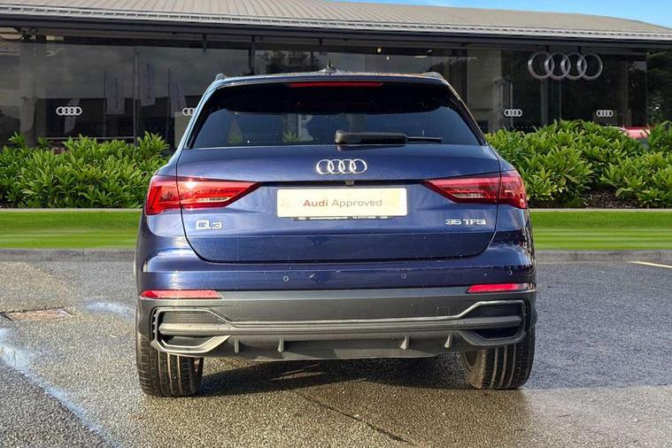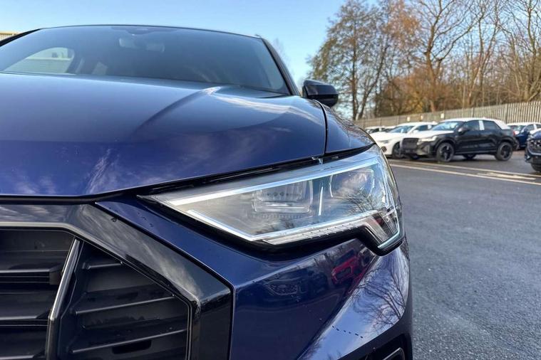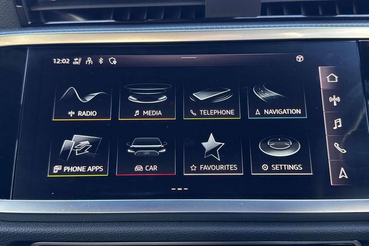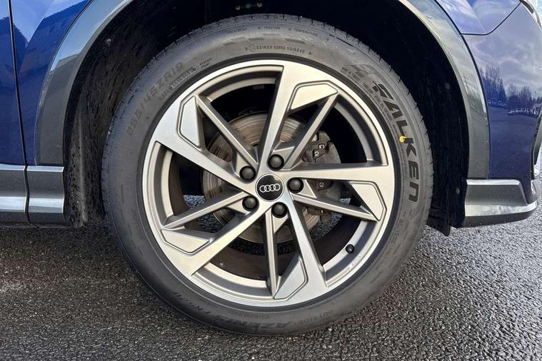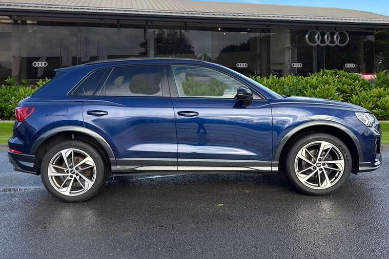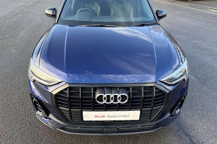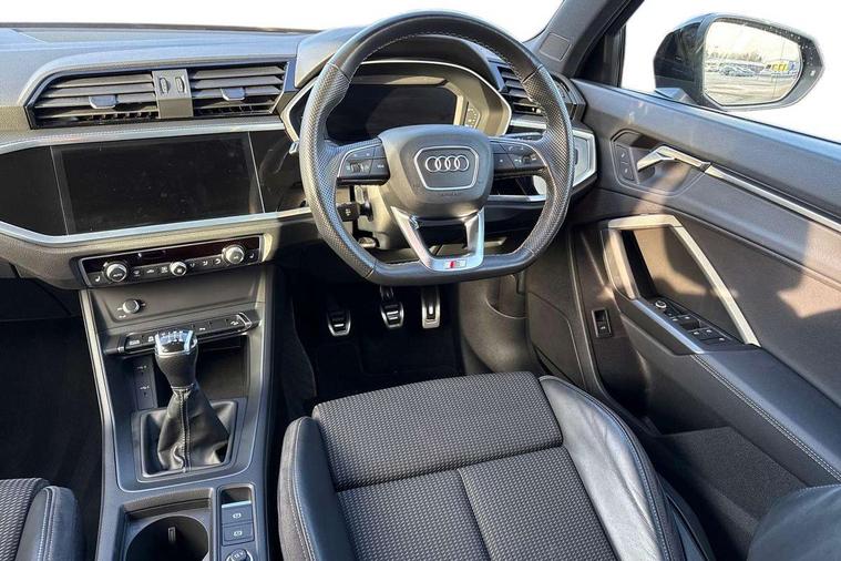 Amazon alexa Integration, Audi drive select, Audi lane departure warning, Audi Virtual Cockpit - 10.25" display, Bluetooth interface, Camera based traffic sign recognition, Cruise control + speed limiter, Legal emergency call, MMI Navigation Plus with high resolution 10.1 inch touchscreen colour display, Power operated tailgate, Progressive steering, Rear parking sensors, Service interval indicator, Smartphone interface includes wireless Apple carplay/Android Auto, Start stop system with recuperation, Voice control system with natural language interaction, Sports suspension, 2 USB-C ports with charge and data functions, 6 passive loudspeakers, DAB digital radio module, Acoustic windscreen, Auto dimming frameless rear view mirror, Black roof rails, Electrically folding, adjustable and heated door mirrors with integrated LED side indicators and kerb view function for passenger side, Front and rear electric windows, Front fog lights, Grille vertical bars in aluminium silver/Matt, High gloss black finish B and C pillars, LED Dynamic rear indicators, LED headlights with LED daytime running lights, LED rear lights, LED third brake light, Privacy glass dark tinted rear and rear-side windows (from B-pillar backwards), Rain and light sensors, Rear diffuser grille in grained matt black, Rear diffuser strip in matt titanium black, Rear side wing doors, Rear wiper, S line bumpers in contrasting Manhattan grey, Variable front intermittent wipers, 12V socket in rear centre console, 3 seat bench in 2nd row, 3 spoke flat bottomed multi-function leather sport steering wheel, 40:20:40 folding with manual adjustment for 60:40 forwards/backwards position and backrest angle, Adjustable rear seat bench/backrest with centre armrest and cupholder, Black cloth headlining, Dual zone electronic climate control, Front and rear black floor mats with contrast stitching in rock grey, Front and rear headrests, Front and rear roof module including reading lights, Front centre armrest, Glove compartment lighting, Height and reach adjustable steering wheel, Illuminated door sill trims with S logo, ISOFIX child seat mounting for front passenger with airbag deactivation and outer rear seat including top tether attachment point for outer rear seats, Luggage compartment light, Manual front seats with height adjustment, Perforated leather gearknob, Single front passenger seat, Stainless steel luggage compartment sill finisher, Stainless steel pedals, Ambient lighting pack - Q3, Black styling pack - Q3, Non smoking pack - Q3, 3x3 point rear seatbelts, 6 airbags - Driver, front passenger, curtain and side windows, Audi pre-sense front with pedestrain and cyclist recognition, Electrically operated child locks on rear doors, Electromechanical parking brake, Electronic stabilisation control including ABS, ASR and EDL, Front seatbelt reminder, Hill descent control, Hill hold assist, Pre sense basic, Seatbelt monitoring, Tyre pressure warning, Warning triangle and first aid kit, Anti theft alarm, Anti theft wheel bolts, Immobiliser, Remote central locking, Detail dashboard around MMI touch colour display in glass look, black with surround in aluminium look, Leatherette door armrest, Piano black inlay,
