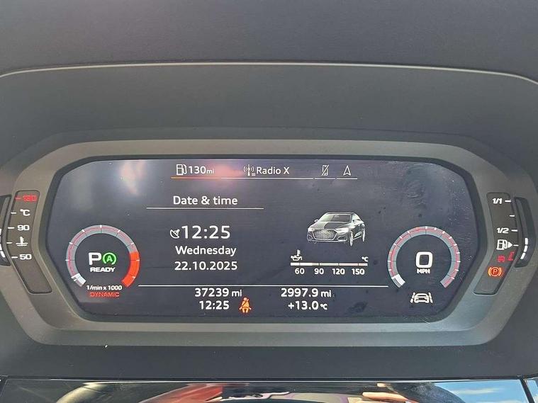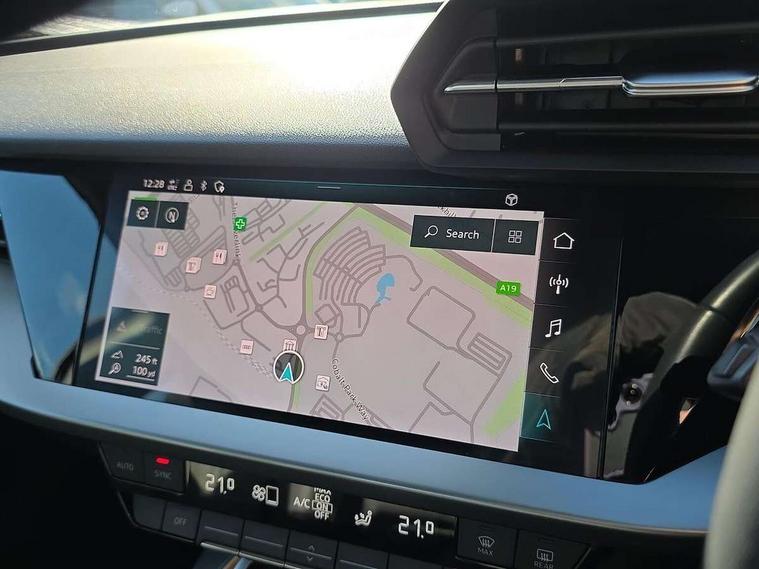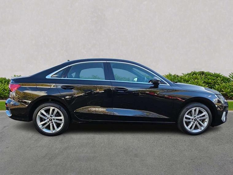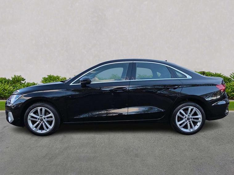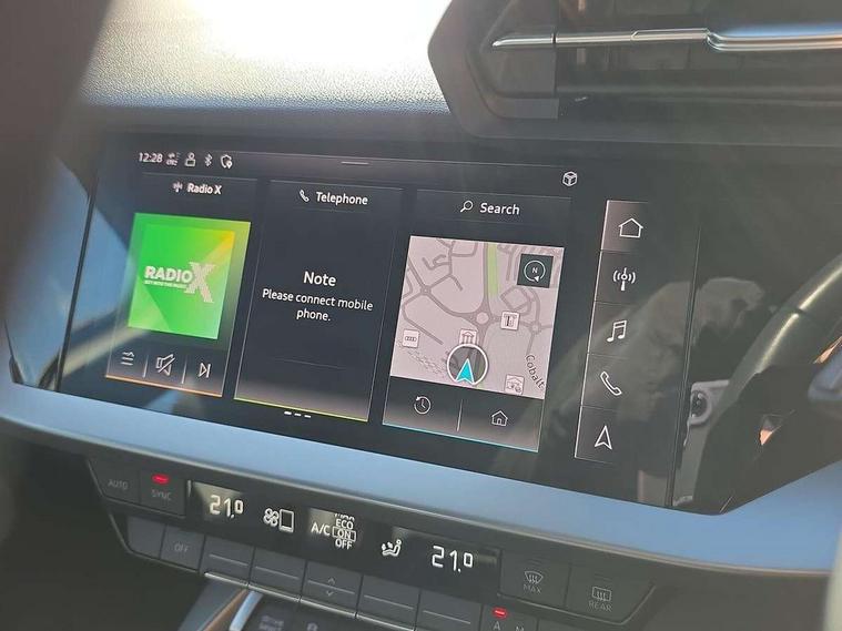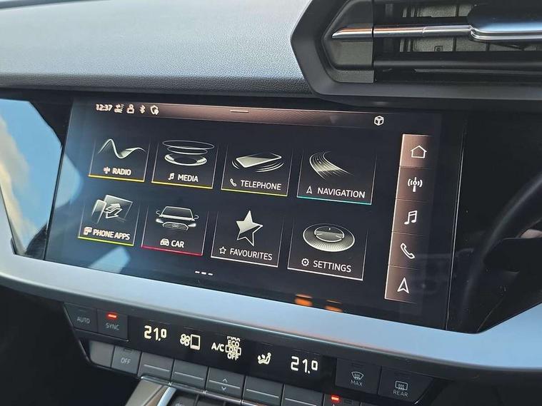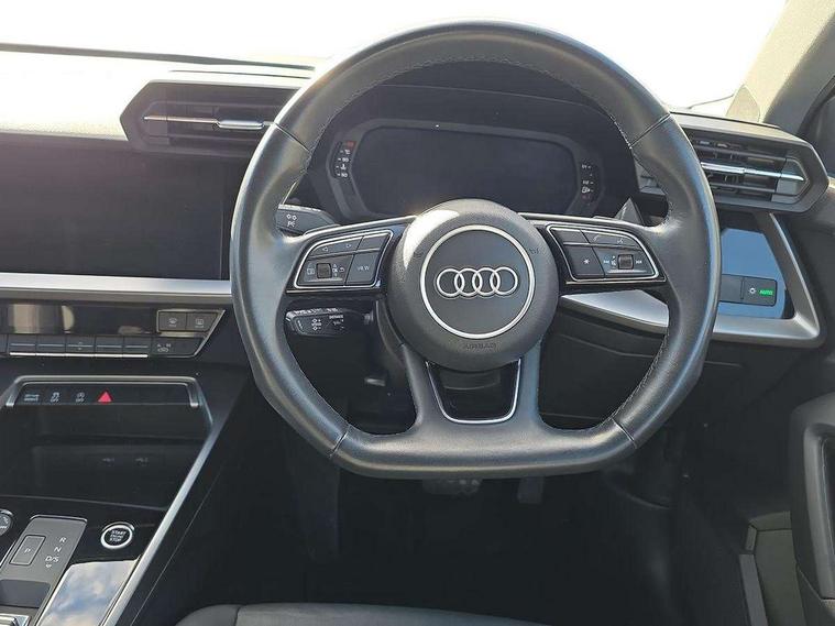 Audi connect emergency call and service, Audi drive select (Auto, Comfort, Dynamic, Efficiency and Individual), Audi smartphone interface, Audi Virtual Cockpit - 10.25" digital and colour instrument cluster, Automatic start/stop system with recuperation, Bluetooth interface, Collision avoidance assistant, Electromechanical power speed sensitive steering, Lane departure warning system, MMI Navigation Plus with high resolution 10.1" colour touch screen display, Service indicator, Voice control system with natural language interaction, Standard suspension, 2x USB Type C ports (for charging and data transfer), 6 passive loudspeakers, CD player, DAB Digital radio, 3rd brake light, Acoustic glass windscreen, Aluminium window trim, Auto dimming frameless rear view mirror, Body colour exterior mirrors, Body colour roof spoiler, Electrically adjustable/heated/folding/auto dimming door mirrors with integrated LED indications + kerb view function for passenger side, Front electric windows, LED daytime running lights, LED headlights and halogen rear lights, Light and rain sensors, Model and engine designation badges at rear, Rear boot, Rear electric windows, Rear side wing doors, Rear window, rear door windows and rear side windows in clear glass, 12V socket and storage compartment in front centre console, 3 seat bench in 2nd row, 40/20/40 split folding rear seat bench with cupholder, Dual zone electronic climate control, Front and rear headrests, Front centre armrest, Front door sill trims with aluminium inlay, Front/rear floor mats, Height and reach adjustable steering wheel, Interior lighting - Front and rear roof module including reading lights, glove compartment light and right hand side, Luggage compartment floor covering, Manual boot compartment lid, Manually adjustable front seats, Seat side bolsters, Single front passenger seat, Steel grey cloth headlining, Twin leather upholstery, Aluminium interior elements pack - A3, Sport styling pack - A3 Saloon, 3x3 point rear seat belts, Driver and front passenger airbag with passenger airbag deactivation, Electronic Stabilisation Control (ESC) including ABS, ASR and EDL, First aid kit with warning triangle and 2 safety vests, Front side airbags with head airbags and interaction airbag, Hill hold assist, Pre-sense front with pedestrian and cyclist detection, Seatbelt monitoring, Tyre pressure loss indicator, Anti theft alarm, Anti-theft wheel bolts, Immobiliser, Manual child locks, Remote control central locking, Aluminium air vent surrounds, Aluminium trim elements, Inlays with silk effect paint in platinum grey,