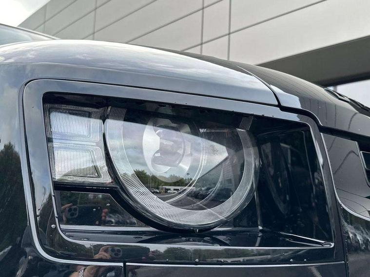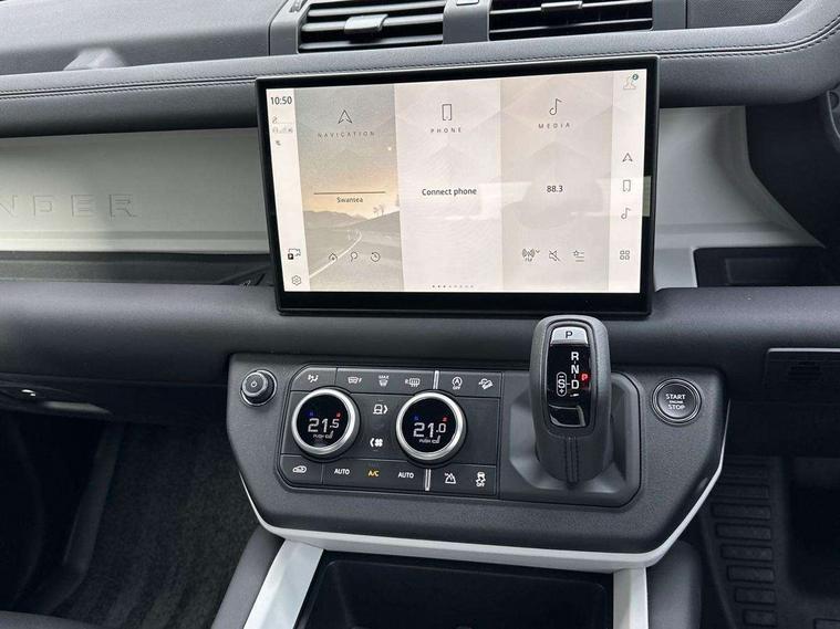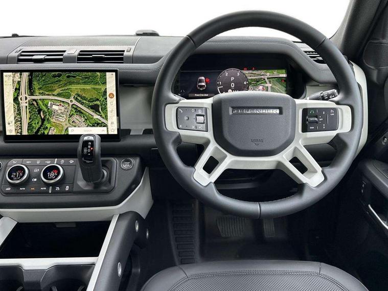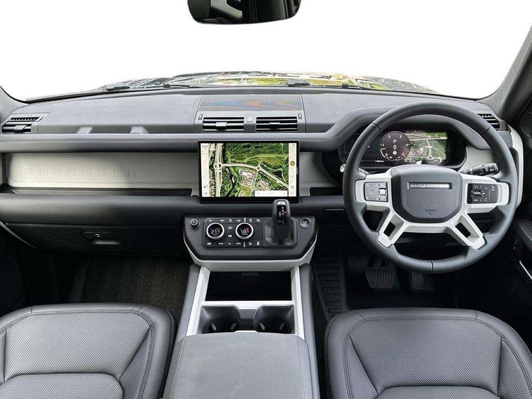 1 x USB-C (power only) & 1 x USB-C (power & data) in Row 1, 2 x USB-C in Row 2, 11.4" touchscreen, 360 degree parking aid, 3D Surround Camera with 360 View, 180 Rear View, Front Traffic Detection, Forward Vehicle Guidance, Tow Hitch Assist and clear sight Ground View, Adaptive cruise control, Android Auto, Apple CarPlay, Blind spot assist, Bluetooth system, Brake pad wear indicator, Clear exit monitor, Connected navigation pro, Driver condition monitor, Electric power assisted steering (EPAS), Interactive driver display, Lane keep assist, Push button start, Rear collision monitor, Rear traffic monitor, Traffic sign recognition with adaptive speed limiter, Trip computer, Wireless device charging, 8 speed automatic transmission, All wheel drive system, Twin speed transfer box, DAB Radio (Digital Audio Broadcasting), Meridian 400w sound audio system with 11 speakers and subwoofer, Pivi pro connected, Automatic headlight levelling, Automatic headlights, Black exposed rear recovery eyes, Body coloured bonnet, Centre high mounted stop light, Electric heated/power fold door mirrors with approach lights and auto dimming driver side, Electric windows with one touch open/close and anti-trap, Follow me home lighting, Heated rear window with timer, Heated windscreen, Illuminated metal treadplates with brand name script, LED tail lights, Panoramic rear side glass, Privacy glass, Puddle lights, Rain sensing windscreen wipers, Rear fog lights, Rear wiper, Side hinged tailgate, Standard tail door, Trailer stability assist, X-Dynamic badge, 12V power socket in loadspace, 3 seat bench in 2nd row, Alpine lights, Configurable cabin lighting, Durable rubber cabin flooring, Durable rubber loadspace flooring, Flat load space floor tray, Footwell lights, Front head restraints, Loadspace cover, Loadspace Hook, Multifunction steering wheel, Overhead stowage for sunglasses, Rear headrests, Rear ISOFIX, Rear reading lights, Single front passenger seat, Standard seat configuration, Storage glovebox, Sunvisors with illuminated vanity mirrors, Twin front cupholders, Non-smoker package, Online pack with data plan - Defender, 5 x 3 point seatbelts, ABS, Brake hold function, Cornering brake control (CBC), Customer configurable autolock, Driver and passenger airbags, DSC - Dynamic Stability Control, EBD - Electronic brakeforce distribution, Electric parking brake (EPB), Emergency brake assist, Emergency braking, ESP + traction control, Front airbags with passenger seat occupant detector, HDC - Hill descent control, Hill launch assist, Low traction launch, Remote for (e-Call, Optimised assistance call, InControl app, Climate, beep and flash and door), RSC - Roll stability control, Seat belt reminder, TPMS (Tyre pressure monitoring system), Alarm, Immobiliser, Intrusion sensor, Keyless entry, Locking wheel nuts, Secure tracker pro,