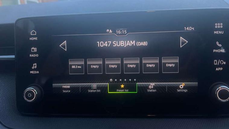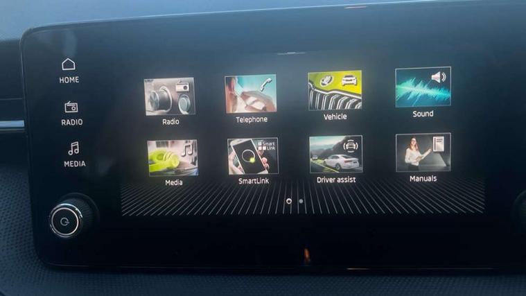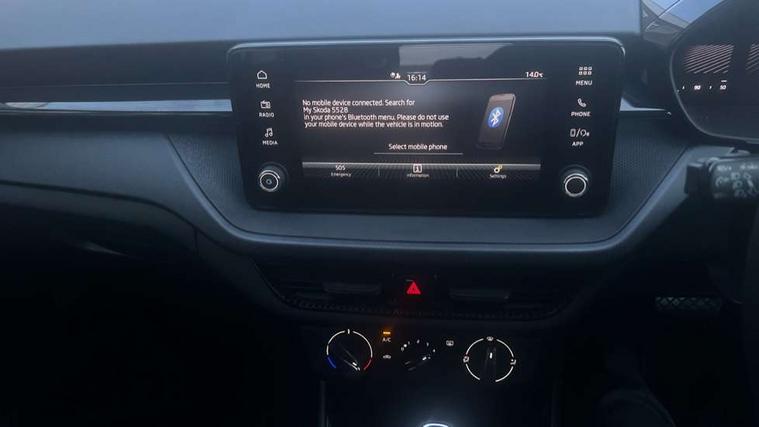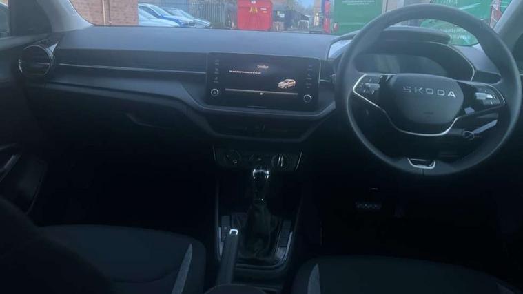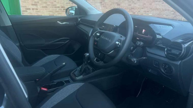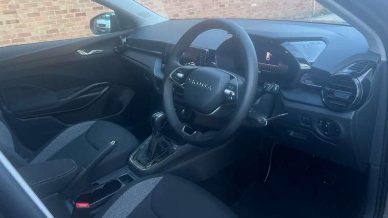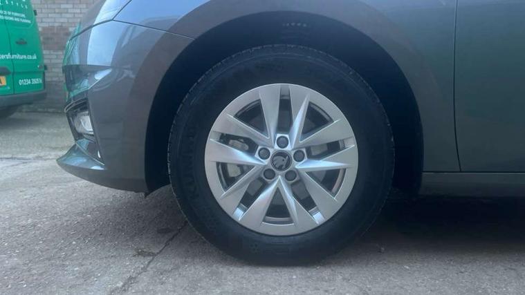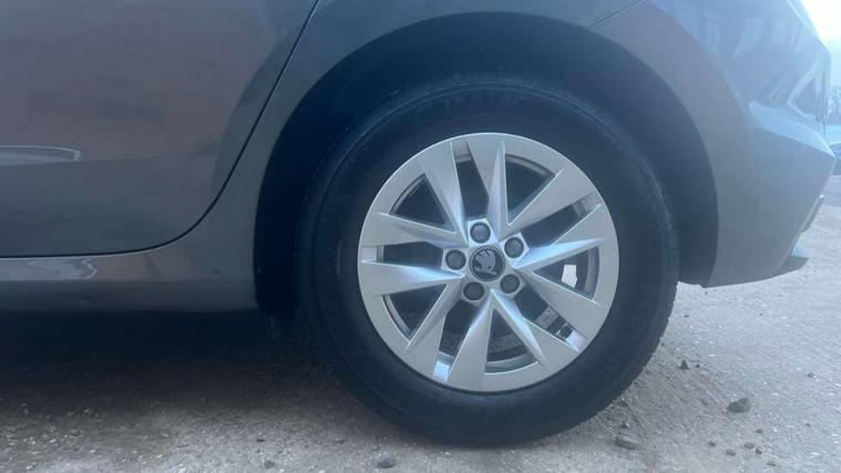 8" Digital instrument display, Advanced driver attention and drowsiness monitor, Bluetooth connection, Electromechanical power steering, Exterior temperature gauge, Rear parking sensors, Service interval indicator, Speed limiter, Traffic sign recognition, Wireless SmartLink for Apple CarPlay and Android Auto, 2x USB-C in the front (for data transmission and charging), 6 Speakers (4 in front and 2 in rear), 8.25" Skoda infotainment touchscreen display, Auxiliary socket for external MP3 player, DAB digital radio reception, Basic rear lights, Body colour door mirrors, Body coloured bumpers, Dimming rear view mirror with black frame, Door mirror integrated indicators, Electrically adjustable front windows with function auto up/down, Front window wiper intermittent control, Headlight range control - Automatic, Ice scraper in fuel cap, LED daytime running lights with coming and leaving home feature, Mechanical adjustable rear windows, Rear LED fog light, Rear side wing doors, Rear window wiper with washing nozzles, Roof mounted spoiler, SKODA tailgate lettering in chrome, Third brake light, 2 reading lights in front and 2 reading lights in rear, 3 rear headrests, Backrest split and folding, Central console with removable cup holder and storage box, Chrome handbrake release button, Fabric upholstery, Front centre armrest, Gearshift knob/handle in leather, Grain satin black interior door handles, Hand brake lever handle in leather, Height adjustable driver seat, Height adjustable front headrests, Height adjustable steering wheel, ISOFIX and TopTether anchorage points to the outer rear seats, ISOFIX and TopTether on the front passenger seat, Luggage compartment lighting, Manual air conditioning, Pollen filter, Rear seat bench unsplit, Single front passenger seat, Storm grey headlining, Sun visors with mirror and airbag label on passenger side, Textile floor mats, Ticket holder, 3-point height adjustable front seats belts with pretensioner and force limiter, Automatic warning lights in case of crash, Driver and passengers airbag with switch off function, e-Call+, ESC including ABS, MSR, ASR, EDS, HBA and XDS, Front and rear seat belt warning, FRONT ASSIST (AEB City and AEB Inter Urban), Front side airbags, Head airbags, Hill hold control, One tone horn, Pedestrian protection, Three rear 3-points safety seat belts with pretensioner and force limiter including stop function for outer rear seat belts, Tyre pressure monitoring system, Anti-theft alarm system including immobiliser, interior monitoring, backup horn, and towing protection, Central locking with radio remote control, interior controls, SAFE function and 2 foldable keys, Black painted air vents, Glossy black decorative trim, Grain satin black central console cover, Grain satin black lower decorative trim, Satin black door and side trim panel in front, Anti-theft wheel bolts protection, Super-low rolling resistance tyres,