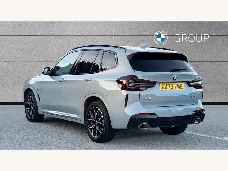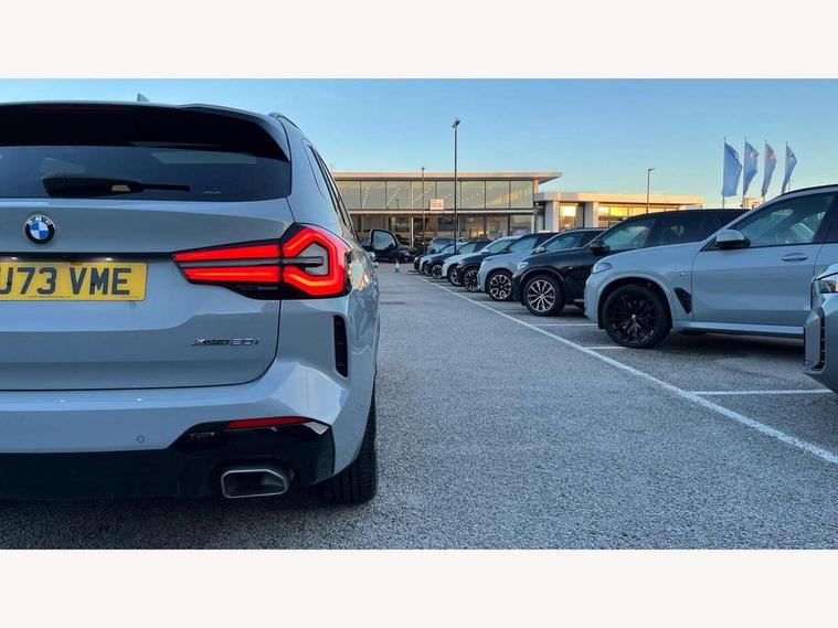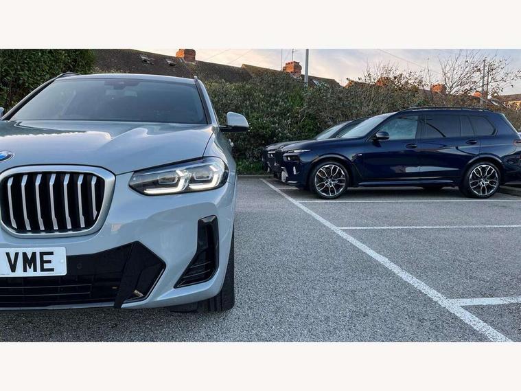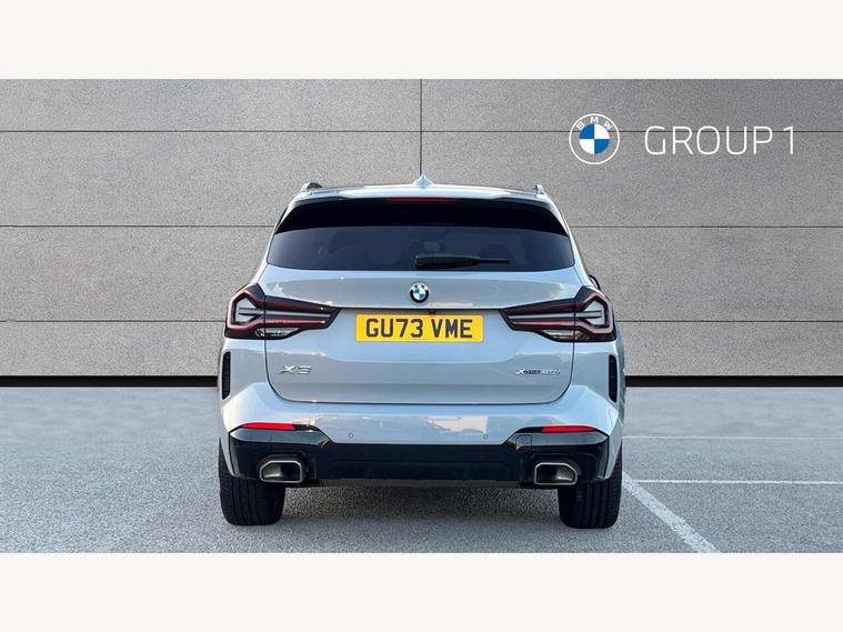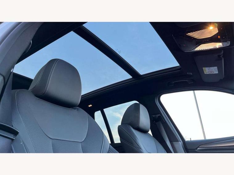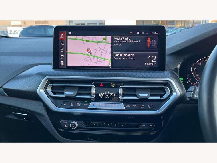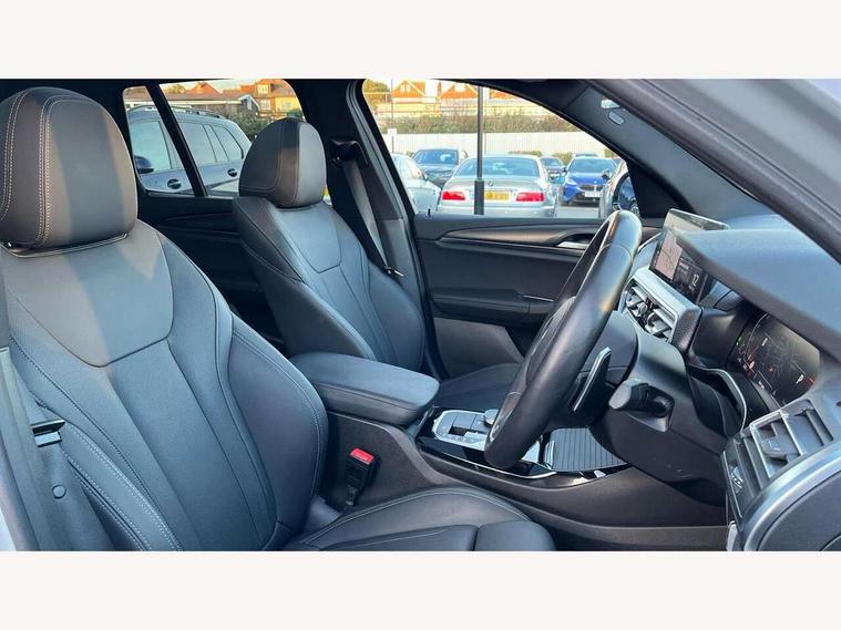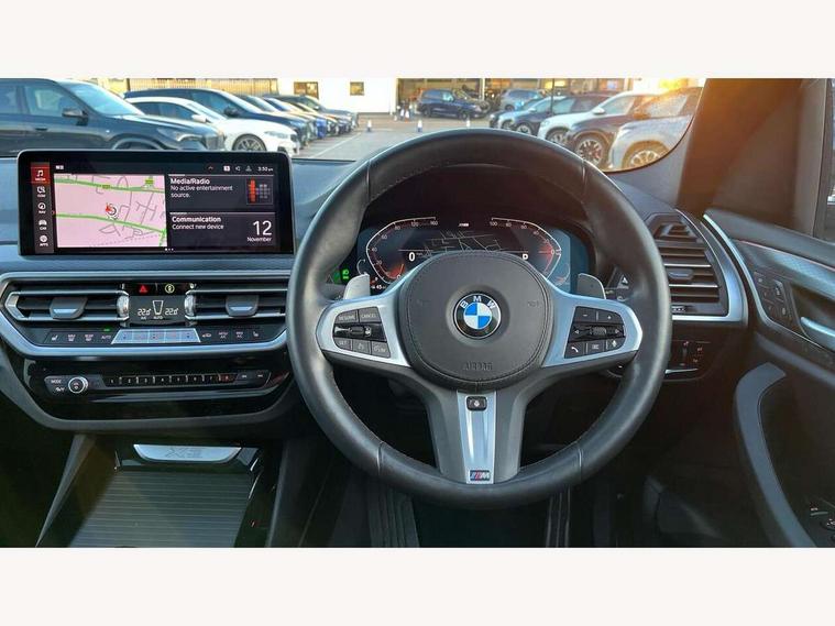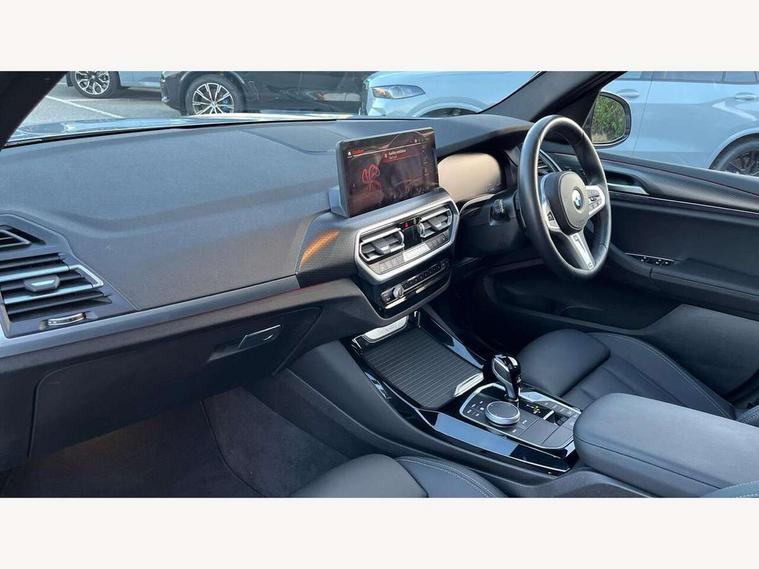 Active Guard, Attentiveness assist, BMW Live Cockpit Professional nav system including 12.3" instrument display + 12.3 high resolution control display, BMW Online services, BMW Teleservices, Brake pad wear indicator in front and rear, Check Control warning system for monitoring of lights and door/luggage compartment open warning, Condition based service - BMW service history, electronic service booklet, integrated owner's handbook, Connected drive services, Electric boot lid, Front/rear Parking distance control, iDrive touch controller with 8 favourite buttons, Instrument cluster with speedometer with mph readout, tachometer, fuel gauge and oil temperature gauge, Lights on warning by audio warning signal when ignition is switched off, Oil sensor for level and grade, warning by check control system, On board computer - average speed+fuel consumption, service interval, clock/date, odometer/trip meter, outside temperature display and ice warning, Optimum shift indicator, Personal Profile - automatic lock when driving away selectable, Run flat indicator, Stop/start system, Variable sports power steering with drive performance control Sport+ mode, Automatic transmission with gearshift paddles, Incorrect fuelling protection, M sport suspension, Multi-link rear suspension, BMW professional radio/CD/MP3, DAB tuner, Acoustic glazing, Automatic windscreen wipers and automatic headlight, Black finish on B pillars, Body colour door handles, Body colour electric adjust heated aspherical door mirrors, Body colour roof mouldings, Body coloured bumpers, Direction indicator, side repeaters, integrated in exterior mirrors, Dynamic brake lights, Exhaust tailpipes - dual, round, split left and right with chrome finisher, Fingertip control / anti-trap function on electric window, Folding wing mirrors with auto dimming, Follow me home headlights, Front and rear bumper system with replaceable deformation elements, Front and rear electric windows, Gloss chrome tailpipes finishers, Green tinted heat insulating glass, Heated windscreen washer jets, High beam assistant, High gloss black shadow line roof rails, High gloss shadowline exterior trim in decorative moulding side frame/recess cover/guide rail/B, C pillars/mirror frame and triangle with mirror base, High level 3rd brake light incorporating LED Technology, Interior rear view electrochromatic mirror with automatic anti dazzle function, LED tail lights, Lightweight engineering, M aerodynamic bodystyling, M Sport entry door sill strips, Model designation, Rain sensor, Rear side wing doors, Rear wing door, Rear wiper, Shark fin antenna, Side exterior M designation badges, Visible VIN plate, Welcome lighting, Windscreen wipers with adjustable interval, 12V power point in luggage area, 12V power socket in front centre console, 2 x USB Type C ports for charging and data transmission (front centre console) and 2 x USB Type C ports for charging (rear centre console), 3 rear headrests, 3 seat bench in 2nd row, 3 zone automatic air conditioning, 4 lashing points to secure luggage, 40:20:40 split folding rear seat with loading system, Ambient lighting, Anthracite headlining, Automatic interior light when door is opened/ignition switched off or via remote key, Floor mats in velour, Foldable storage floor with compartment, Four grab handles integrated in roof lining, Front and rear bottle holders integrated into door trim storage compartments, Front and rear side armrests integrated into door trim, Front centre armrest with storage compartment, Front footwell lights, Front head restraints, Front passenger seat, Front sports seats, Front/rear courtesy lights with soft on/off dimming, Front/rear reading lights, Heated front seats, Isofix rear child seat preparation, Leather gear knob, Lockable glove compartment, Luggage area underfloor compartment, Luggage compartment lighting, M sport leather steering wheel, Multifunction steering wheel, Parcel shelf removeable and storable under boot floor, Reach and rake adjustable steering column, Rear centre armrest with 2 cupholders, Removable / retractable luggage cover, Slope adjustable rear seats, Storage compartment in rear centre console and front/rear door trims, Sun visors with vanity mirrors and ticket pocket, Toolkit located in luggage compartment, Two front cupholders with removable oddments tray/lid, Connected pro pack - X3, ADB - Automatic Differential Brake, Anti-lock braking system (ABS) with brake assist, Automatic Stability Control (ASC), Battery safety cut-off, BMW emergency call, Brake drying, Brake energy regeneration, Braking pre-tensioning, Child locks on rear doors, Cornering brake control (CBC), Crash Sensor - activation of central locking release, hazard warning light and interior lighting, Deactivation of fuel pump in the event of a crash, Driver and front passenger front and side airbags with passenger deactivation and ITS front and rear head airbags, Driver and front passenger knee airbag, DSC+, Dynamic brake control, Dynamic Traction Control - DTC, Electromechanical parking brake, Hill descent control, Hill start assist, Seatbelt security check for front seats, Side impact protection, Three point seatbelts to all seats with front and outer rear pyrotechnic belt tensioners and seat belt force limiters, Two tone horn, Tyre pressure sensor, Ventilated front and rear disc brakes, Warning triangle and first aid kit, Central locking switch for all doors, fuel filler cap and luggage compartment, Electronic engine immobiliser, Locking wheel nuts, Remote control including two integrated key - one button for open/close all lockable content, windows and separate button for open luggage compartment, Remote control Thatcham category 1 alarm, Start/stop button with Comfort Go keyless engine start and auto Start/stop deactivation button, Low rolling resistance tyres,