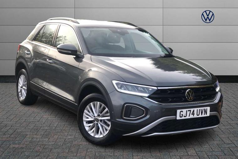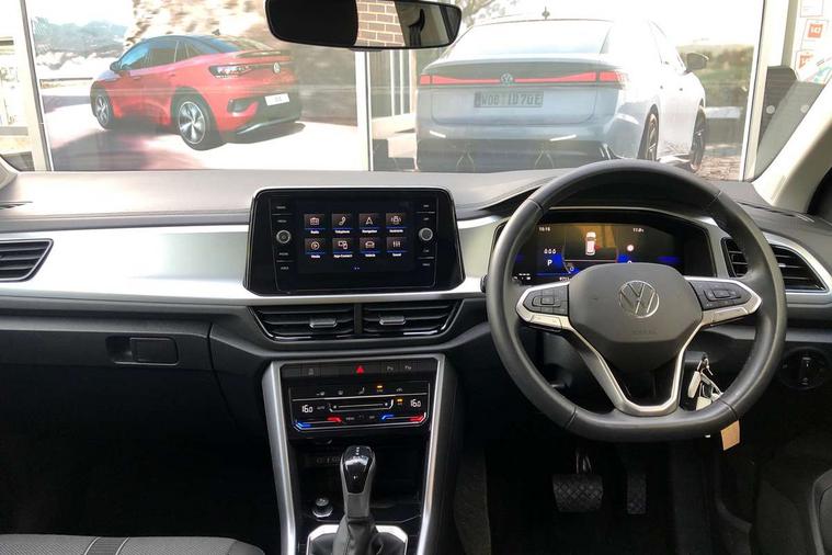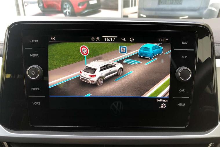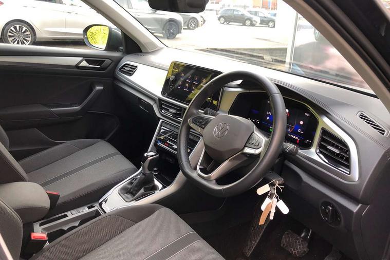 Advanced driver attention and drowsiness monitor, Dynamic road sign display, Emergency call service, Lane keeping system Lane Assist, Mobile phone interface, Modified key software - reduce switch off time for key status change to Long no motion, Online services, Park assist including front and rear parking sensors, Power assisted speed sensitive steering, Service interval indicator, Tailgate/trunk lid release from outside, Think blue trainer driver tips and journey analysis, Warning sound and light for front seatbelts unfastened, Wireless app connect, Wireless Smartphone charger, Battery regeneration during braking, Front shock absorption, Rear shock absorption chassis with increased ride height, Start/stop function with battery regeneration, DAB Digital radio, Diversity antenna for FM reception, Front and rear 6 speakers, Music playback - MP3, WMA and AAC files, Premium USB cable in choice of either Apple or Android smartphone compatibility, SD card slot, Simultaneous pairing of 2 compatible mobile devices, Title and cover art display, We Connect and We Connect Plus functionality, Auto dimming interior rear view mirror, Automatic hazard lights activation under emergency braking, Automatic headlight control with LED separate daytime running lights with coming/leaving home function, Black roof rails, Body coloured bumpers and radiator grille with chrome trim and front fog lamps with chrome bezel, Body coloured exterior mirror housings and door handles, Electrically adjustable and heated door mirrors, Extended roof spoiler, Exterior mirrors aspherical on driver side, convex on front passenger side, External USB type C socket and charging sockets, Front windscreen wiper with intermittent wipe and 4 position delay, Heated rear window, LED 3rd brake light, LED rear combination lamps, LED rear number plate lights, Power windows with comfort operation and circuit breaker, Rain sensor, Rear exhaust tailpipe, Rear fog light on one side and reversing lights on both sides, Rear side wing doors, Rear wash/wipe with intermittent wipe setting, Remote electrically foldable door mirrors, puddle lights and reverse activated passenger's door mirror, 12V power socket in centre console, 3 rear head restraints, 3 seat bench in 2nd row, 4 load lashing points in luggage compartment, Air care climatronic air conditoning system with active combination filter and 2-zone temperature control, Ambient lighting with mirror logo projection, Cloth upholstery, Door and side trim panel in cloth, Drawer under drivers seat, Driver/front passenger seat height adjustment, Front centre armrest, Front comfort sports seats, Front cupholders x 2, Front reading light, Front seat back storage pockets, Glove compartment door with light, Instrument lighting, white adjustable panel illumination, Interior light delay, Isofix child seat preparation, Leather gearshift handle, Load-through provision with cup holder when folded down ('Unsplit rear seat bench, split folding backrest, with centre armrest), Luggage compartment lighting, Lumbar support for driver's and front passengers seat, Non-folding front passenger seat backrest, Single front passenger seat, Storage compartment in left and right luggage area, Storage compartment in rear doors, Storage compartments in driver and front passenger doors, Sunvisors with illuminated vanity mirrors, Variable boot floor, height adjustable and removable, Driver assistance pack without proactive passenger protection - T-Roc Life/Match, 3 point height adj front seatbelts + pretensioners, 3 point seatbelts in outer rear with ECE label, ABS, Child locks on rear doors, City emergency braking and pedestrian monitoring, Driver and front passenger airbag with front passenger airbag deactivation, Driver and front passenger safety-optimised head restraints, Drivers seatbelt reminder, Electronic parking brake, Electronic Stability Control (ESC) inc EDL (Electronic Differential Lock) and ASR (Traction Control), Front and rear passengers curtain airbag system including front side airbags, Front disc brakes, Hill start assist, Predictive pedestrian protection, Rear disc brakes, Two tone horn, Tyre pressure loss indicator, Volkswagen roadside assistance, Alarm with interior protection, Pewter matt decorative inserts for intrument panel, centre console and door panels at the front, Trims for alloy wheels,
