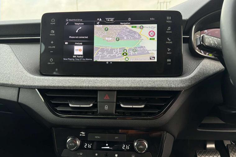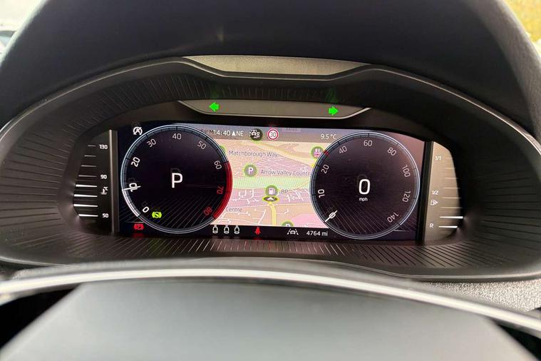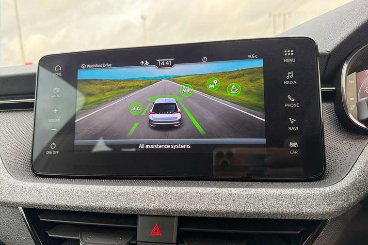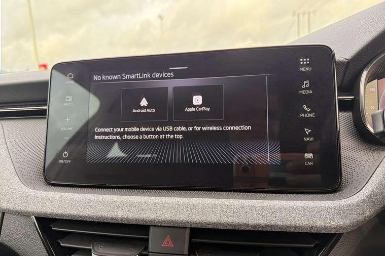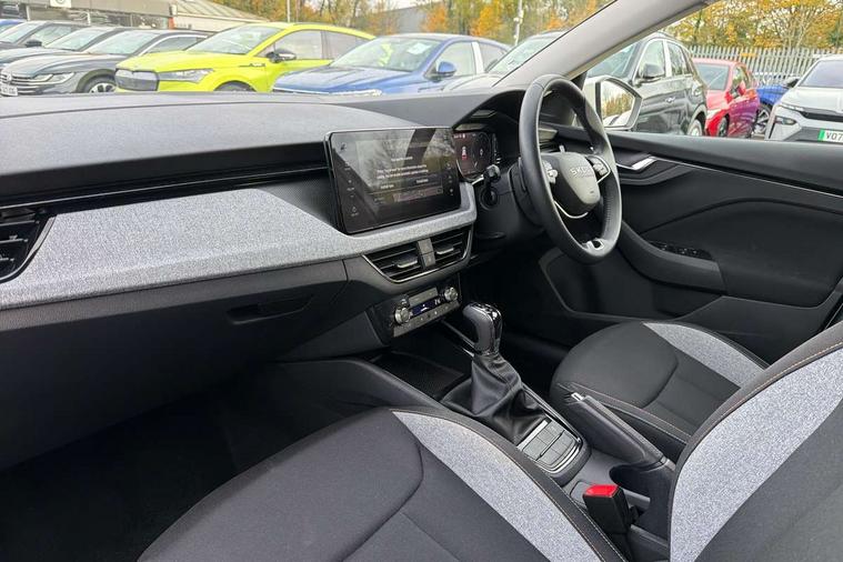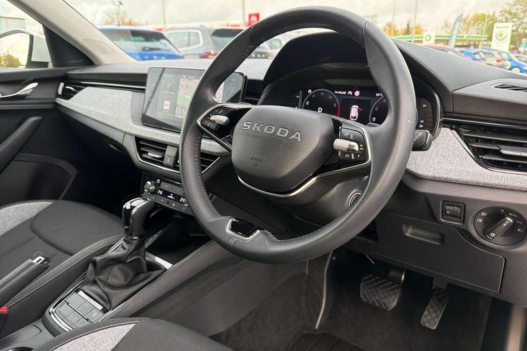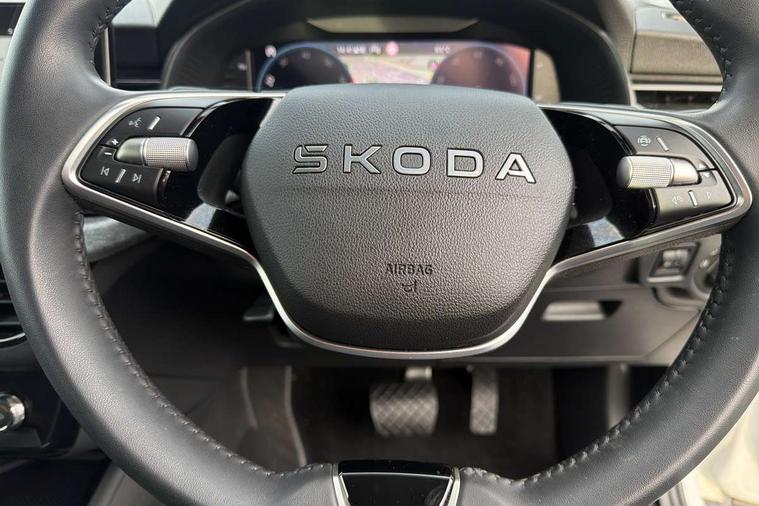 Advanced driver attention and drowsiness monitor, Bluetooth, e-Call (emergency call), Front assist system, PAS, Rear parking sensors, Rear view camera, Speed limiter, Tailgate, Traffic sign recognition, Virtual Cockpit - 10.25" digital display, Voice control system, Wireless smartlink, 4 USB C ports, 8 Speakers, 9.2" Skoda navigation display, DAB radio, Auto dimming rear view mirror, Automatic headlamp activation with Coming home and Leaving home feature, Automatic high/low beam, Body colour bumpers, Body colour door mirrors and handles, Chrome moulding around grille, Front and rear electric windows, Full LED headlights, Heated rear window, LED 3rd brake light, LED brake lights, LED daytime running lights, LED front turning lights, LED high beam, LED low beam, LED taillights, Rear LED fog light, Rear side wing doors, Rear wiper, Tinted windows, Unique dark chrome design logo on alloy wheels, 12V socket in luggage compartment, 3 seat bench in 2nd row, Black / Grey armrest stitching, Black hotstamping, Cargo elements, Chrome inner door handles, Door inserts in satin black, Driver and passenger sun visors with vanity mirror, Dual zone climate control, Front and rear roof lights, Front centre armrest, Front head restraints, Glasses storage in roof liner, Height adjustable driver seat, Height adjustable passenger seat, Ice scraper, Illuminated glove compartment, Inner circulation control with pollen filter, ISOFIX for front passenger seat, Isofix preparation for back seats, Leather gearknob and handbrake lever, Loft cloth upholstery, Luggage net under rear parcel shelf, Manual lumbar support for front seats, Net package and top tether hooks in boot space, Pearl grey ceiling, Pocket on the back of both front seats, incl. mobile phone pockets, Single front passenger seat, Skoda lettering on steering wheel, Textile floor mats, Third rear headrest, Ticket holder, Top tether for front passenger seat, Umbrella in driver's door, 3x3 point rear seatbelts, ABS, Child locks, Curtain airbags and front side airbags, Disc brakes, Driver and front passenger airbags, ESP, Hill hold control, Manual leather parking brake, One tone horn, Passenger airbag switch off function, Seatbelt reminder for driver and front passenger, Tyre pressure monitoring system, Anti theft alarm system with interior monitoring, backup horn and towing protection, Anti-theft wheel bolts, Remote central locking with 2 remote folding keys, SAFE function for remote central locking, Decord pad, door inserts Kota uni,