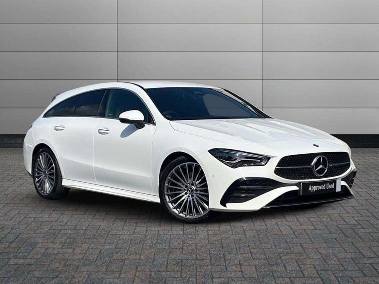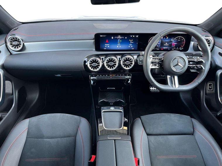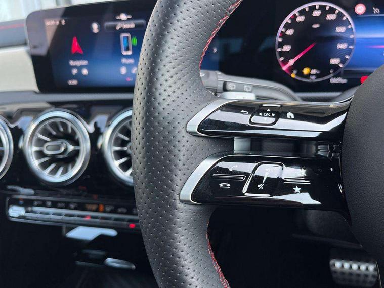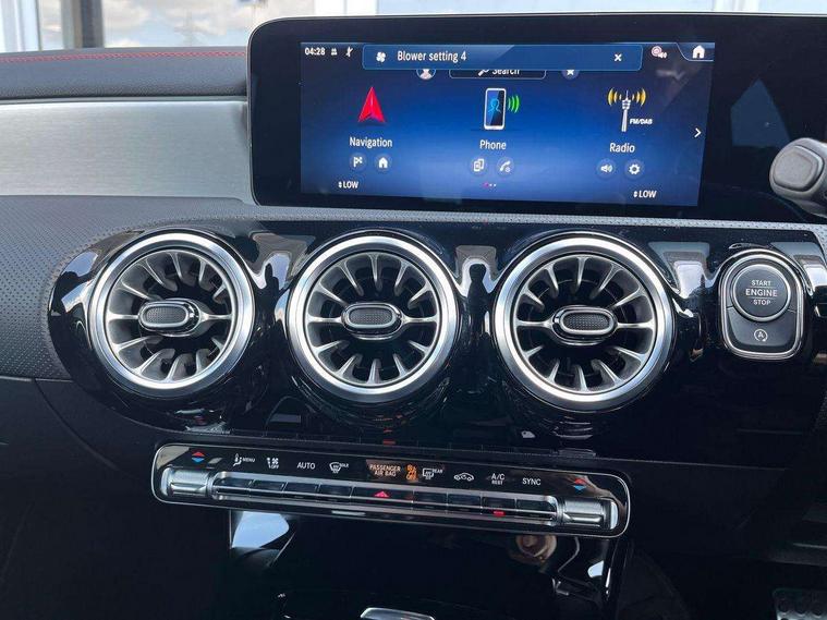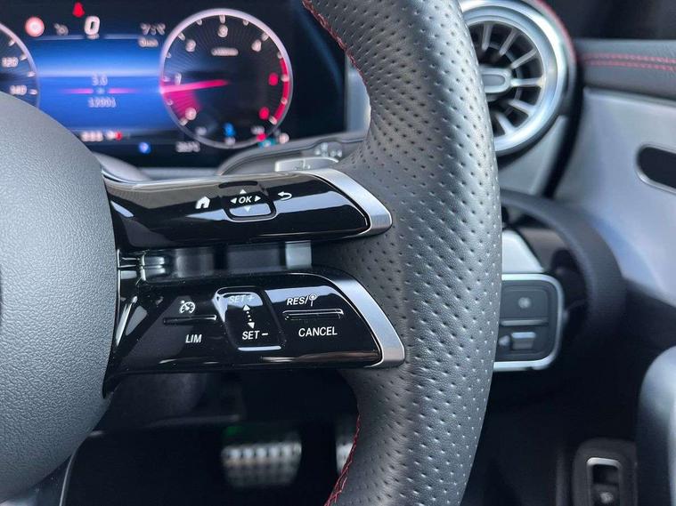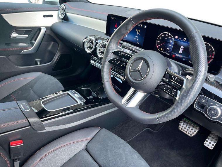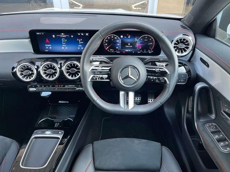10.25 inch Instrument display with digital cockpit, 10.25 inch touchscreen central media display, Active lane keeping assist, Attention assist - Monitors steering behaviour and long journey fatigue, Blind spot assist, Bluetooth connection, Car wash mode, Cruise control with limiter, Direct steer system, DYNAMIC SELECT with a choice of driving modes (ECO, Comfort, Sport and Individual), ECO start/stop function, Fluid level warning indicator for fuel, oil, coolant and washer fluid, Hard-disk navigation, Hey Mercedes Voice activation, Lamp failure indicator, Mercedes me connect including emergency call system, accident recovery, breakdown and maintenance management, Mercedes me remote services, Outside temperature gauge, Owners manual in English, Pre-installation of private car share, Radio aerial integrated into front and rear windshields, Service indicator (ASSYST), Smartphone integration with Apple CarPlay and Android auto, Speed limit assist, Tailgate, Trip computer in multifunction display with current consumption indicator, Wireless charging in the front centre console, Comfort suspension with ride height lowering, Rear axle multi-link, DAB digital radio tuner, MBUX multimedia system, Mercedes Benz advanced sound system (225 W) with 10 speakers, 1 central speaker, speakers on doors, a tweeter on door, one sub woofer + boost amplifier, Pre installation for Mercedes Benz Link, Adaptive brake lights, AMG body styling with AMG front apron and rear apron and visible exhaust tailpipe in chrome trim elements, Body colour door handles, Chrome beltline strips, Electric windows, Electrically adjustable and heated door mirrors with integrated LED indicators, Exhaust system with 2 Visible tailpipe trim elements and rear apron with trim in chrome, Hand free access, Headlamp assist automatic headlamp activation, Heated glass rear windscreen + timer control, High level LED third brake light, Interior mirror with black reading lamps and frameless, LED high performance headlamps with integrated LED daytime running lights and adaptive highbeam assist, LED tail lamp, Privacy glass with dark tinting on rear side windows and rear window, Radiator grille with Mercedes-Benz pattern in chrome with central Mercedes star and single louvre with chrome inserts, Rain sensing windscreen wipers with two sensitivity settings, Rear fog lamp, Rear side wing doors, Rear wiper, Variable front intermittent wipers, Window line trim strip in high gloss aluminium, 3 seat bench in 2nd row, 3 twin spoke flattened multifunction steering wheel in nappa leather - horizontal twin spoke in high gloss black, vertical twin spoke in silver chrome, 4 way lumbar support, 40:20:40 split folding rear seat backrests, Air conditioning - Two zone thermotronic luxury automatic climate control with display, Air vents with surround in silver chrome, Artico man-made leather/Microcut microfibre upholstery, Automatic child seat recognition sensor, Black roof lining, Brushed stainless steel sports pedals with rubber studs, Floor mats with stitched AMG lettering, Fluorescent jacket, Front centre armrest with stowage, Galvanished gear shift paddles in silver chrome, Heated front seats, Illuminated front door sills with Mercedes Benz lettering and changeable cover, Interior lighting - 64 colour Ambient lighting, Luggage net on driver/front passenger seat backrest, Manually height and reach adjustable steering column, Rear armrest with two integral cup holders for drinks, Rear head restraints, Single front passenger seat, Sport seats with fixed head restraints, Stowage compartment in centre console with retractable cover, Sunvisors with illuminated vanity mirrors, Twin front cupholders, Two outer rear seat isofix and top tether child seat fixing points, Keyless go comfort pack - CLA with easy pack tailgate, Light and sight pack - CLA, Mirror pack - CLA, Parking pack with reversing camera - CLA, Seat comfort pack - CLA, USB package plus - CLA, Active bonnet pedestrain safety measure which detects an impact and raises bonnet by 65mm, Active brake assist includes forward collision warning system with autonomous braking, Adaptive brake assist with hold function and hill start assist, Anti lock braking system (ABS) with brake assist, Black seat belts, Bonnet with power domes, Brake calipers with Mercedes-Benz lettering, Brake pad wear warning indicator, Childproof locks manually operated for rear doors and electrically operated for rear power windows, Crash responsive emergency lighting, Driver and front passenger head and sidebags, Driver and front passenger windowbags, Drivers knee airbag, Dual stage driver and front passenger airbags, Electric parking brake, Electronic stability programme with acceleration skid control, ESP curve dynamic assist, Exit warning, Front and rear seatbelt reminder, Front passenger seat occupancy sensor, Perforated front brake discs, Sports braking system, Three point rear seat belts, Tyre pressure monitoring system, Warning triangle and first aid kit, Alarm system with immobiliser and interior protection -Thatcham category 1, Guard 360 deg vehicle protection - tow away protection with visual, acoustic warning, interior monitoring, preinstallation for parking damage, Remote central locking and crash sensor with emergency opening function, Light aluminium with longitudinal grain interior trim, 19" AMG multi spoke light alloy wheels painted in titanium grey with high sheen finish, Summer tyres, Tirefit tyre sealant kit,