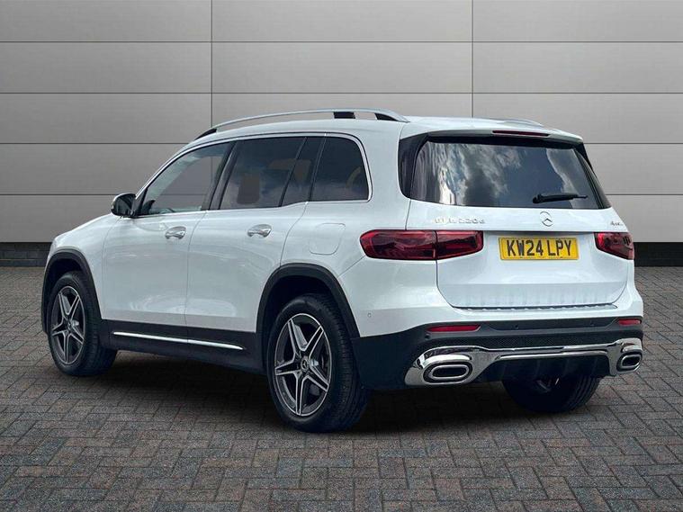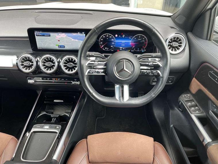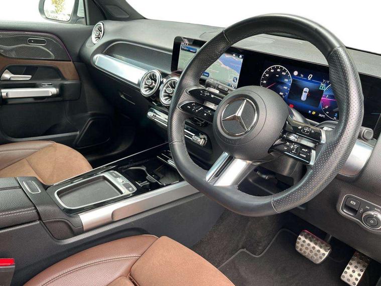 10.25 inch touchscreen central media display, 10.25" Digital instrument cluster display screen, 12 ultrasonic sensors in front and rear bumpers, 180 degree reversing camera with parking guidelines, Additional drive program "OFF-ROAD", Assisted parking: reversing backwards into perpendicular and parallel parking spaces, Attention assist - Monitors steering behaviour and long journey fatigue, Bluetooth connection, Brake pad wear indicator warning light, Car wash mode, Convenience opening and closing, Direct steering, DYNAMIC SELECT with a choice of driving modes (ECO, Comfort, Sport and Individual), ECO start/stop function, Engine start/stop button, Fluid level warning indicator for fuel, oil, coolant and washer fluid, Hard disk navigation, Hey Mercedes Voice activation, Lamp failure indicator, Lane keep assist, MBUX navigation premium, Mercedes me connect including emergency call system, accident recovery, breakdown and maintenance management, Mercedes me remote services, Outside temperature gauge, Owners manual and service booklet in English, Pre-installation of private car share, Preinstallation for parking damage notification, Radio aerial integrated into front and rear windshields, Remote boot closing, Service indicator (ASSYST), Smartphone integration with Apple CarPlay and Android auto, Speed limit assist, Tailgate, Trip computer in multifunction display with current consumption indicator, Ultrasound sensors - positioned in the handle of the tailgate, Wireless charging, Comfort suspension with ride height lowering, Rear axle multi-link, 1 USB-C port in the oddments compartment (Charge + Data transfer), 2 USB-C ports for the rear on the centre armrest (Charge only), 2 USB-C ports under the front centre armrest (Charge + Data transfer), DAB digital radio tuner, MBUX multimedia system, Mercedes Benz sound system (100 W) with 6 speakers, Pre installation for Mercedes Benz Link, Adaptive brake lights, Adaptive high beam assist, AMG front apron with front splitter in the colour of the vehicle with chrome trim element, AMG rear apron with visible tailpipe trim and chrome trim element, AMG specific/dual flow exhaust pipes in chrome (non-functional), Auto dimming rear view mirror, Beltline trim and window line trim strip in high gloss aluminium, Black grained side sill trim with chrome inlay, Body coloured door handles, Electric adjustable and heated door mirrors with integrated LED side indicators, Electric folding door mirrors, Front and rear electric windows, Headlamp assist automatic headlamp activation, Heat insulating dark-tinted glass starting from B-pillar, Heated glass rear windscreen + timer control, High level LED third brake light, Interior mirror with black reading lamps and frameless, LED high performance headlamps with integrated LED daytime running lights, LED tail lamp, Polished aluminium roof rails, Radiator grille as a diamond grille with chrome pins and central Mercedes star, Rain sensor windscreen wipers, Rear fog lamp, Rear side wing doors, Rear wiper, Single louvre in matt grey with chrome inserts and black highlights, Two visible tailpipe trim elements exhaust, Ultrasonic sensors - positioned in the front and rear bumpers, Wheel arch liners in the colour of the vehicle, 12V socket in the oddments compartment, 3 seat bench in 2nd row, 3 twin spoke flattened multifunction steering wheel in nappa leather - horizontal twin spoke in high gloss black, vertical twin spoke in silver chrome, 4 way adjustable lumbar support, 40:20:40 split folding rear seats, Air vents with silver chrome surrounds, AMG floor mats, AMG sports pedals with brushed stainless steel surfaces and black rubber studs, Automatic child seat recognition sensor, Black roof lining, Door handles with chrome inserts, Fluorescent jacket, Front and rear headrests, Front centre armrest with stowage, Galvanised steering wheel gearshift paddles in silver chrome, Handle recess lighting, Heated front seats, Height adjustable head restraints, Height/reach adjustable steering column, Interior lighting - 64 colour Ambient lighting, Luggage net on driver/front passenger seat backrest, Single front passenger seat, Sports seats, Stowage compartment with retractable cover, Sun visors with illuminated vanity mirrors, THERMATIC automatic climate control, Third row of seats for two people on rear seat, Twin front cup holders, Two outer rear seat isofix and top tether child seat fixing points, Easy pack tailgate, Interior lighting with light and sight pack - GLB, Seat comfort package - GLB, 3 rear 3 point seatbelts, Active bonnet pedestrain safety measure which detects an impact and raises bonnet by 65mm, Active brake assist includes forward collision warning system with autonomous braking, Adaptive brake assist with hold function and hill start assist, Airbags - kneebag for driver, Anti-lock braking system (ABS) with brake assist, Black seatbelts, Bonnet with power domes, Childproof locks manually operated for rear doors and electrically operated for rear power windows, Crash responsive emergency lighting, Curve dynamic assist, Downhill speed regulation (DSR), Driver and front passenger head and sidebags, Driver and front passenger windowbags, Dual stage driver and front passenger airbags, Electric parking brake, Electronic stability programme with acceleration skid control, Front and rear seatbelt reminder, Front brake callipers with Mercedes Benz lettering, Front passenger seat occupancy sensor, Perforated front brake discs, Tyre pressure monitoring system, Warning triangle and first aid kit, Guard 360 degree vehicle protection - Anti theft alarm system, tow away protection with visual, acoustic warning and alarm, Interior monitoring system, Keyless Go Access and drive authorisation system, KEYLESS-GO starting function, Remote central locking and crash sensor with emergency opening function, Thatcham category 1 alarm system with immobiliser and interior protection, Vehicle key with KEYLESS GO functionality, Carbon structure 