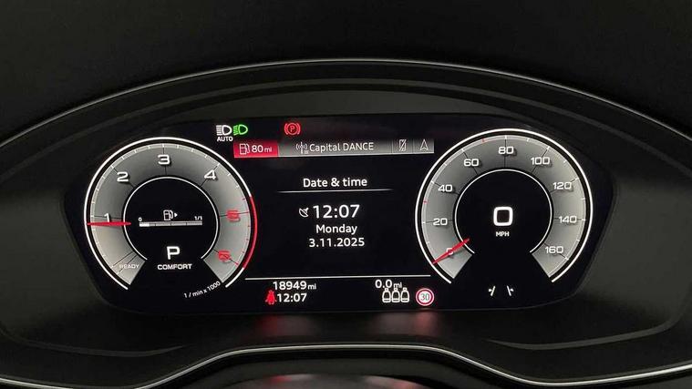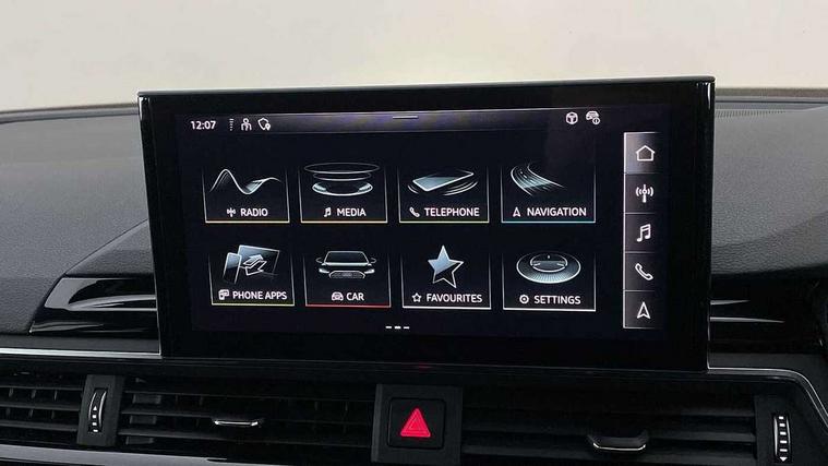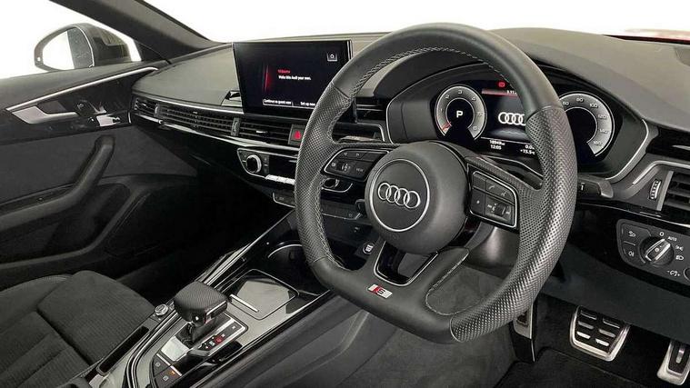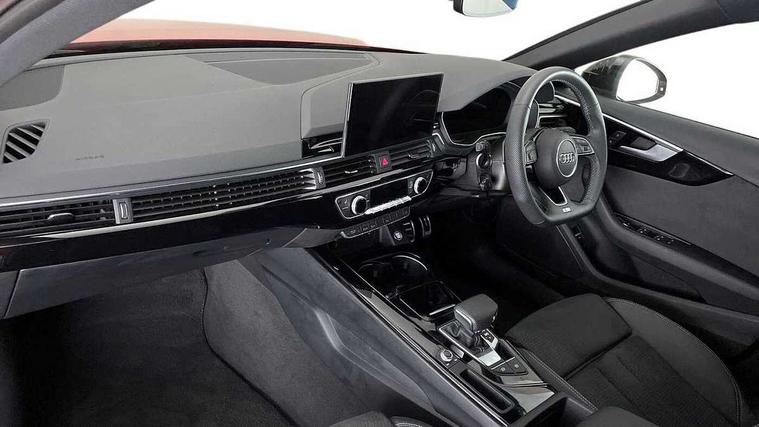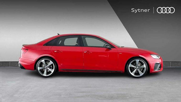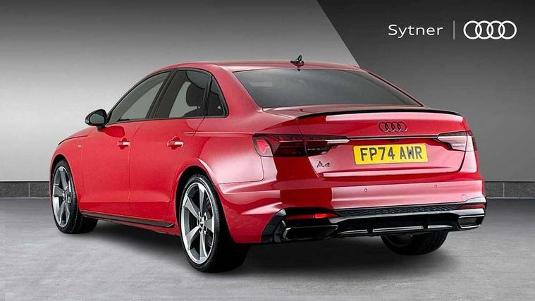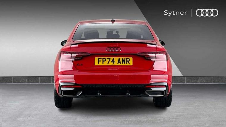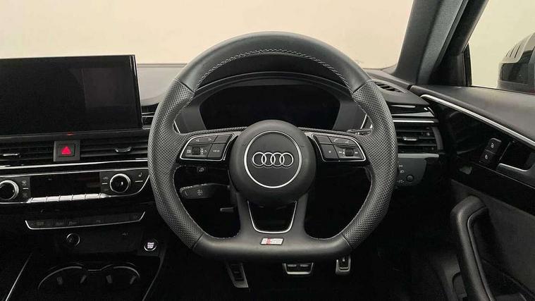 Audi connect safety and service (e-call), Audi drive select, Audi smartphone interface, Audi virtual cockpit, Automatic start-stop system with coasting functionality and efficiency programme, Bluetooth interface, Camera based traffic sign recognition, Electric boot lid release, Electromechanical power steering, Email, calendar and text messages displayed via MMI, Front and rear parking sensors, Lane departure warning, MMI Navigation plus with MMI touch includes 10.1" high resolution colour MMI display, 3D map, Rear view camera, Voice control system, Sports suspension lowered by 23mm, 2 USB charging ports, 8 passive loudspeakers, DAB digital radio reception, Audi beam uses LEDs to project the audi logo onto the ground as you exit your A4, Auto dimming rear view mirror, Black Audi rings and black badging (with removed engine badging), Body colour door handles, Body colour front spoiler lip, Body colour side sill trim, Electric adjustable/heated/folding door mirrors with auto dimming, Exhaust tailpipes in dark chrome, Grained matt black side air inlets with matt aluminium silver inlay, High beam assistant, High gloss black B pillar trims and triangular rear door trim, LED headlights with LED rear lights + dynamic rear indicators + headlight adjustment and high beam, turning light + LED daytime running lights, LED third brake light, Privacy glass, Rain and light sensors, Rear boot, Rear diffuser in matt black with trim strip in matt aluminium silver, Rear side wing doors, Sport front and rear bumpers with side skirts, Variable intermittent front wash/wipe, Windscreen with acoustic glazing, 4 way electric lumbar support for driver and front passenger, 40/20/40 split folding 3 rear seat bench in 3 parts with rear centre armrest, Black carpets, Black cloth headlining, Black perforated leather gearknob, Contrast stitching on seats, steering wheel and gear lever gaiter, Deluxe 3 zone electronic climate control, Front and rear head restraints, Front centre armrest, Heated front seats, Illuminated door sill trims with S logo, ISOFIX child seat mounting and top tether, Manual seat adjustment, Single front passenger seat, Stainless steel pedals and foot rest, Black styling pack - A4 Saloon, LED Interior light pack - A4/S4, 3 rear seatbelts, 6 airbags - Driver, front passenger, curtain and side windows, Attention and drowsiness assist, Electronic Stabilisation Control (ESC) including ABS, ASR and EDL, Hill hold assist, Multi collision brake assist, Pop-up bonnet for pedestrian protection, Pre sense city, Rear door child safety locks, Seatbelt monitoring, Warning triangle and first aid kit, Anti theft alarm, Anti theft wheel bolts, Central locking, Keyless Go, Piano black finish inlay, Tool kit, Tyre repair kit,