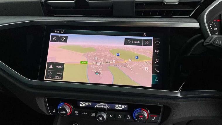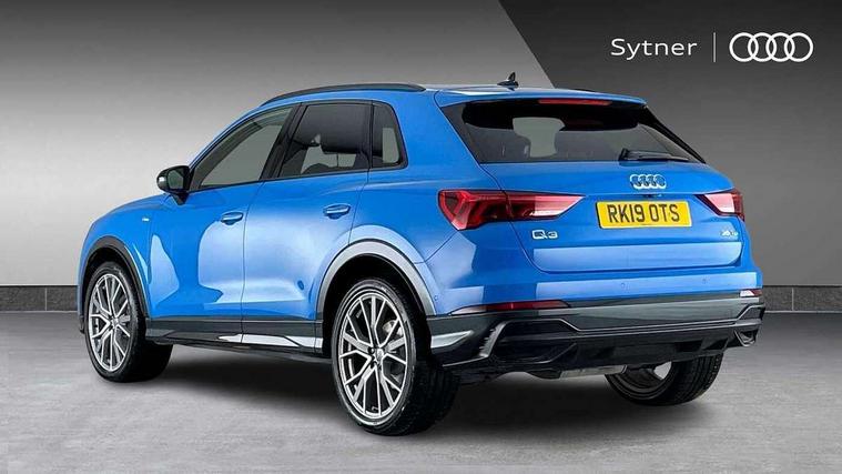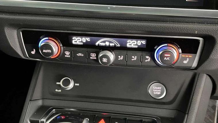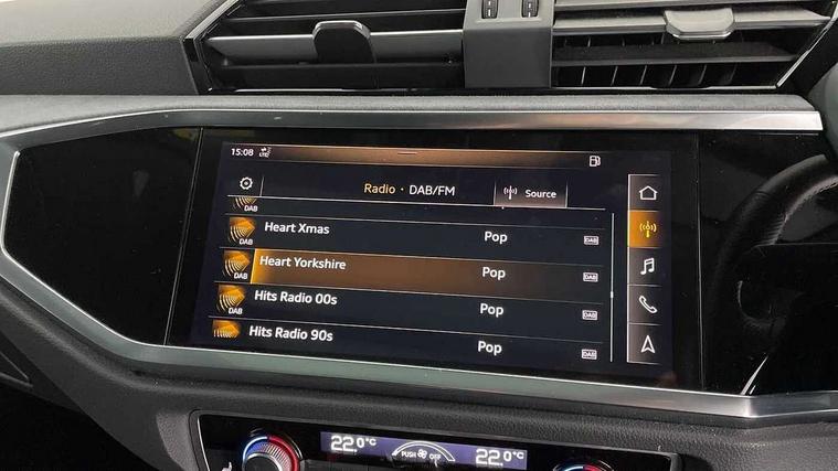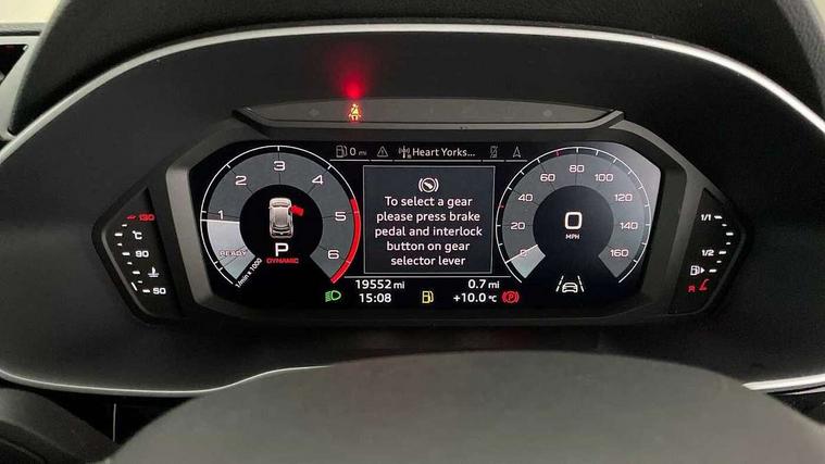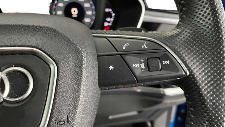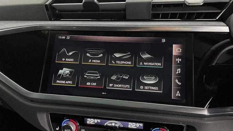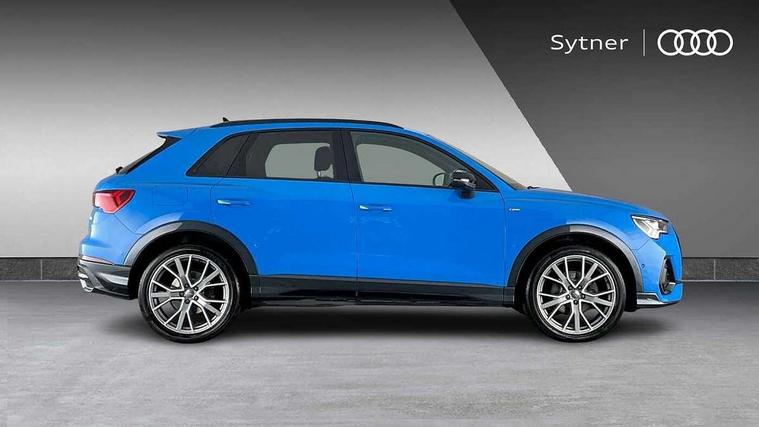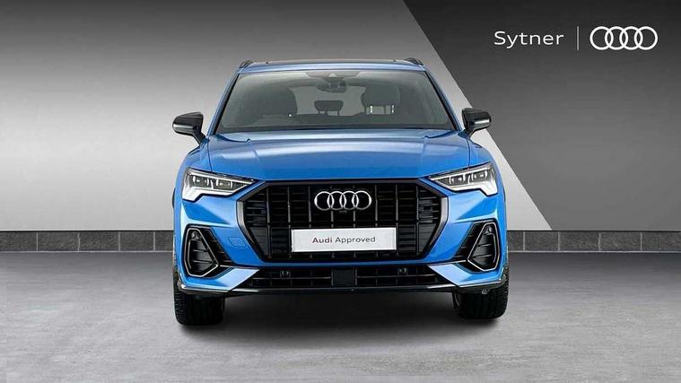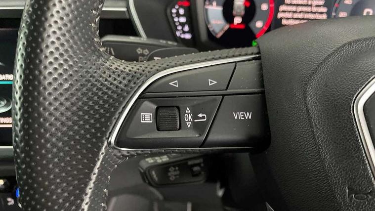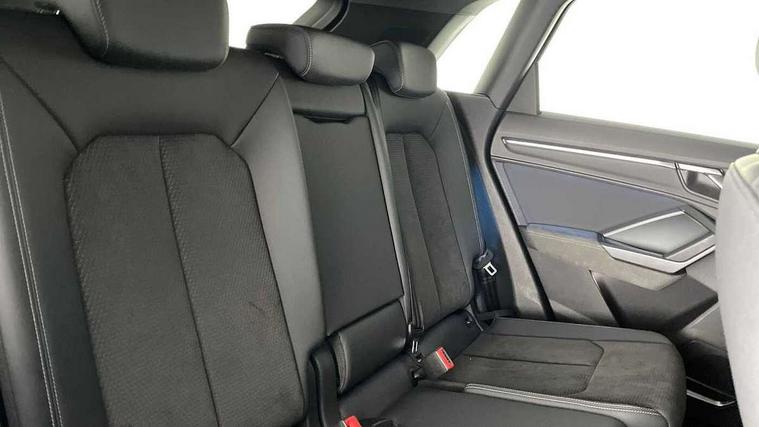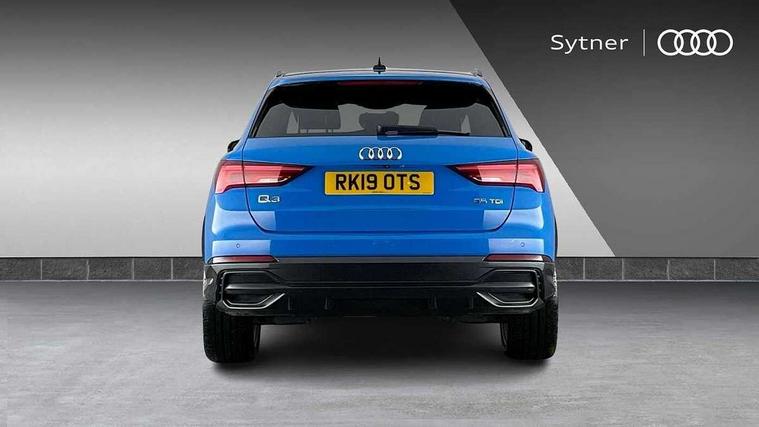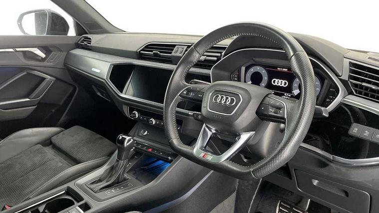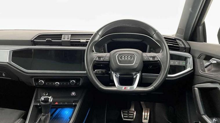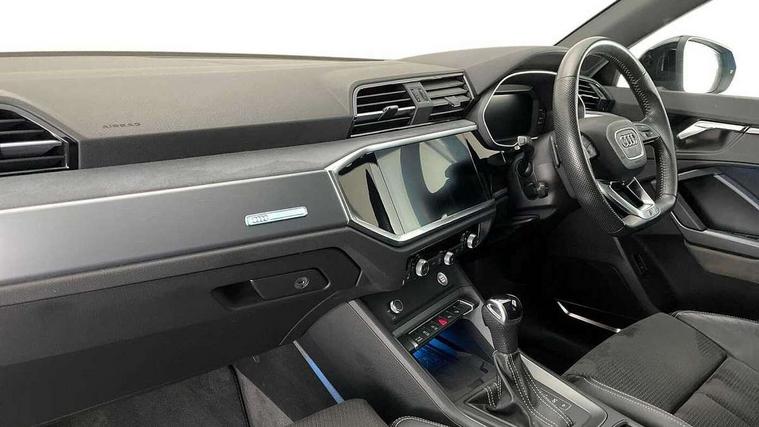 360 degree parking camera, Audi connect safety and service (e-call), Audi drive select, Audi lane departure warning, Audi parking system plus with front and rear sensors, Audi phone box with wireless charging, Audi side assist, Audi smartphone interface, Audi virtual cockpit plus, Bluetooth interface, MMI navigation plus with MMI touch, Power opening/closing tailgate, Progressive steering, Rear cross traffic alert, Service interval indicator, Stop/start system, Voice control system, Adaptive suspension with damping control, Diesel particulate filter, Bang & Olufsen 3D Premium Sound System, DAB digital radio module, Acoustic windscreen, Aluminium roof rails, Auto dimming and folding door mirrors, Auto dimming rear view mirror, Black roof rails, Contrast bumpers in Manhattan grey paint finish, Diffuser in matt Platinum grey, Electrically adjustable and heated door mirrors with integrated LED side indicators, Front and rear electric windows, Front fog lights, Front side air inlets in matt platinum grey, Front spoiler blade in matt platinum grey, Front spoiler in matt selenite silver, Grille vertical bars in aluminium silver/Matt, Headlight washers, High gloss black finish B and C pillars, Matrix LED headlights with LED rear lights and dynamic front and rear indicator, Panoramic opening glass sunroof, Privacy glass, Rain and light sensors, Rear diffuser strip in selenite silver, S line bumpers in contrasting Manhattan grey, 12V socket in rear centre console, 3 spoke flat bottomed high multi-function leather sport steering wheel with gearshift paddles, 4 way electric lumbar support for driver and front passenger, 40:20:40 split folding rear bench seat, Adjustable rear seat bench/backrest with centre armrest and cupholder, Aluminium door sill trims, Black cloth headlining, Dual zone climate control, Electrically adjustable front seats, Front and rear black floor mats with contrast stitching in rock grey, Front and rear headrests, Front centre armrest with storage compartment and angle adjustment, Heated front seats, ISOFIX child seat mounting and Top Tether with front passenger airbag deactivation, Perforated leather gearknob, Stainless steel luggage compartment sill finisher, Stainless steel pedals, Black styling pack - Q3, Driver Assistance Pack - Q3, Multi coloured extended ambient interior lighting pack - Q3, Non smoking pack - Q3, 3x3 point rear seatbelts, 6 airbags - Driver, front passenger, curtain and side windows, Audi pre-sense front with pedestrain and cyclist recognition, Electronic stabilisation control including ABS, ASR and EDL, Hill hold assist, Pre sense basic, Seatbelt monitoring, Tyre pressure warning, Warning triangle and first aid kit, Advanced key, Anti theft alarm, Anti theft wheel bolts, Remote central locking, Dark matt brushed aluminium inlay, MMI touch colour display in gloss black with aluminium surround,
