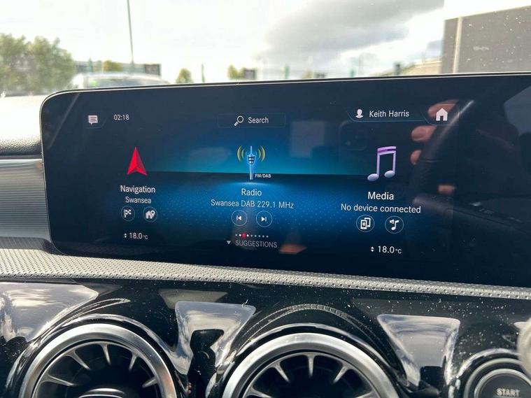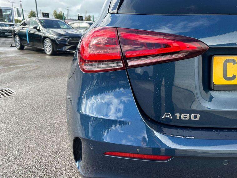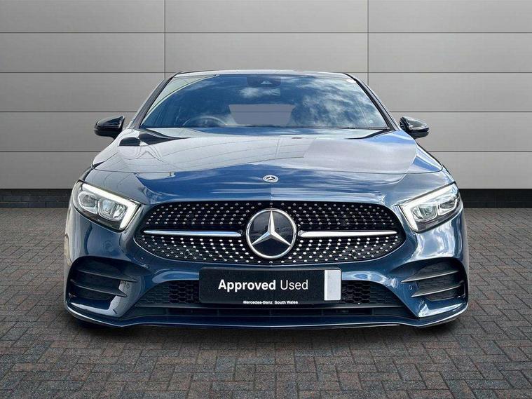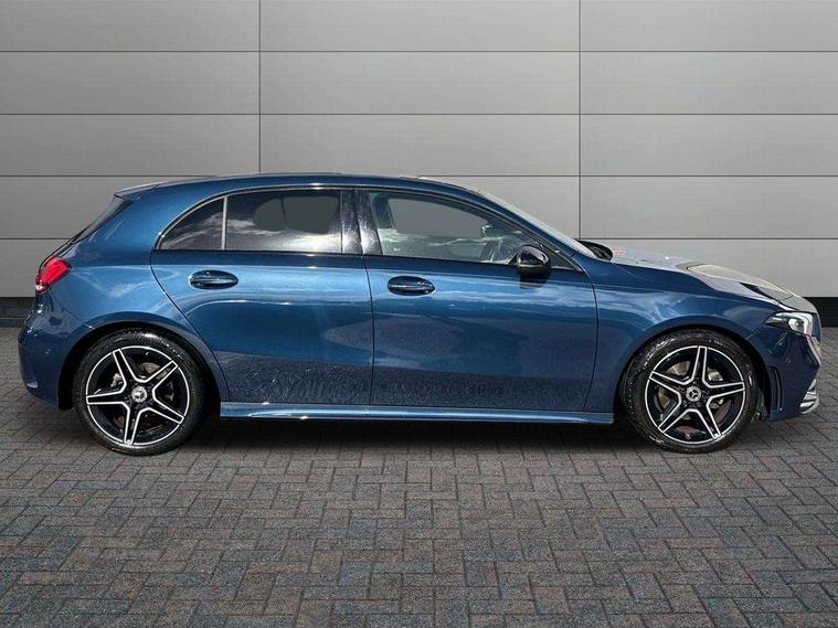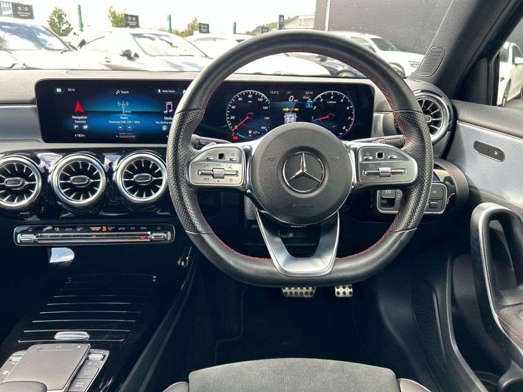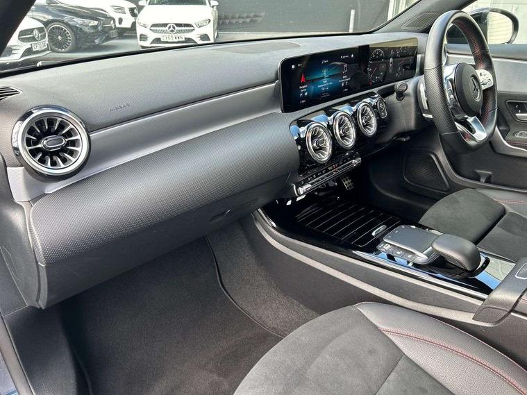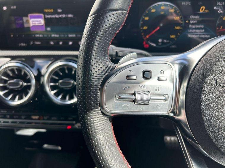 10.25" Digital instrument cluster display screen, 10.25" media display, 180 degree rear view camera with parking guidelines, Active parking assist with visual and audible warning of detected obstacles, Attention assist, Brake pad wear indicator warning light, Car wash mode, Cruise control + speed limiter, Direct steering, Dual bluetooth interfaces, DYNAMIC SELECT with a choice of driving modes (ECO, Comfort, Sport and Individual), ECO start/stop function, Fluid level warning indicator for fuel, oil, coolant and washer fluid, Hard-disk navigation, Hey Mercedes Voice activation, Lamp failure indicator, Lane keeping system, Mercedes me connect including emergency call system, accident recovery, breakdown and maintenance management, Mercedes me remote services, Outside temperature gauge, Owners manual in English, Pre-installation for private car sharing, Preinstallation for Mercedes Benz link, Service indicator (ASSYST), Smartphone integration with Apple CarPlay and Android auto, Speed limit assist, Speed sensitive power steering, Trip computer, Ultrasonic sensors positioned in the front and rear bumpers, Lowered comfort suspension, Rear axle torsion beam, 2 USB ports (type C) in rear stowage compartment and one in front of center console, 6 speakers, DAB Digital radio, MBUX multimedia system with DAB digital radio and touchpad including satellite navigation, Mercedes-Benz sound system - 100W, 4 Electric Front and Rear windows, Adaptive brake lights, AMG bodystyling - Front apron with splitter in chrome, rear apron with chrome trim and chrome visible trim elements in tailpipe, Automatic headlights, Black weather strip, Body colour bumpers, Body colour door handles with chrome inserts, Body colour side skirt, Electric adjustable and heated door mirrors with integrated LED side indicators, Exclusive diamond radiator grille, Exhaust system - Twin visible tailpipes in polished stainless steel, Headlamp assist automatic headlamp activation, Heated glass rear windscreen + timer control, LED High level third brake light, LED high performance headlamps with integrated LED daytime running lights, LED tail lamp, Privacy glass, Radio aerial, Rain sensing windscreen wipers with two sensitivity settings, Rear fog lights, Rear side wing doors, Rear wiper, 3 seat bench in 2nd row, 3 Spoke flat bottom leather multi function steering wheel with perforated leather in grip area, 40:20:40 split folding rear seats, Artico man-made leather/Microfibre Dinamica upholstery with red contrast stitching, Auto Mercedes-Benz child seat recognition sensor, Black air vents with surround in silver chrome, Black roof lining, Brushed stainless steel sports pedals with rubber studs, Controller on centre console with chrome surround, Floor mats with AMG lettering, Front centre armrest with storage compartment, Front seat backs luggage nets, Galvanished gear shift paddles on steering wheel, Heated front seats, Height/reach adjustable steering column, Illuminated Mercedes Benz lettering front door sills with changeable cover, Interior lighting - 64 colour Ambient lighting, Interior mirror with reading lamps in black and frameless, Manual height adjustable front seats, Rear head restraints, Seat occupancy sensor for front passenger seat, Single front passenger seat, Sports seats with integrated headrests, Stowage compartment in centre console with retractable cover, Sunvisors with illuminated vanity mirrors, Touchpad on center console, Twin front cupholders, Two zone thermotronic luxury automatic climate control, Light and sight pack - A Class, Mirror package - A Class, Night pack - A Class Saloon/Hatchback, Seat comfort pack - A Class, 3 rear 3 point seatbelts, ABS with Brake Assist, Active bonnet, Active brake assist includes forward collision warning system with autonomous braking, Adaptive brake assist with hold function and hill start assist, Black seatbelts, Childproof locks manually operated for rear doors and electrically operated for rear power windows, Crash responsive emergency lighting, Driver and passenger head and side airbags, Drivers knee airbag, Dual stage driver/passenger airbags, Electronic parking brake, ESP curve dynamic assist, ESP with ASR, Front and rear seatbelt reminder, Front brake callipers with Mercedes Benz lettering, ISOFIX and top tether child seat fixing points in two outer rear seats, Tyre pressure monitoring system, Warning triangle and first aid kit, Window airbags, Alarm system/interior protection/immobiliser, Keyless Go, Remote central locking and crash sensor with emergency opening function, Urban guard vehicle protection system with immobiliser and interior protection, Matrix look light longitudinal grain aluminium trim element, 18" AMG 5 twin spoke light alloy wheels aerodynamically optimised painted in black with highsheen finish, Summer tyres, Tirefit sealant kit,