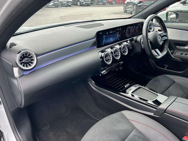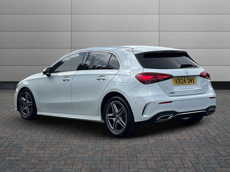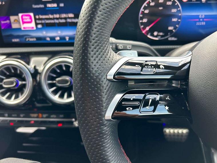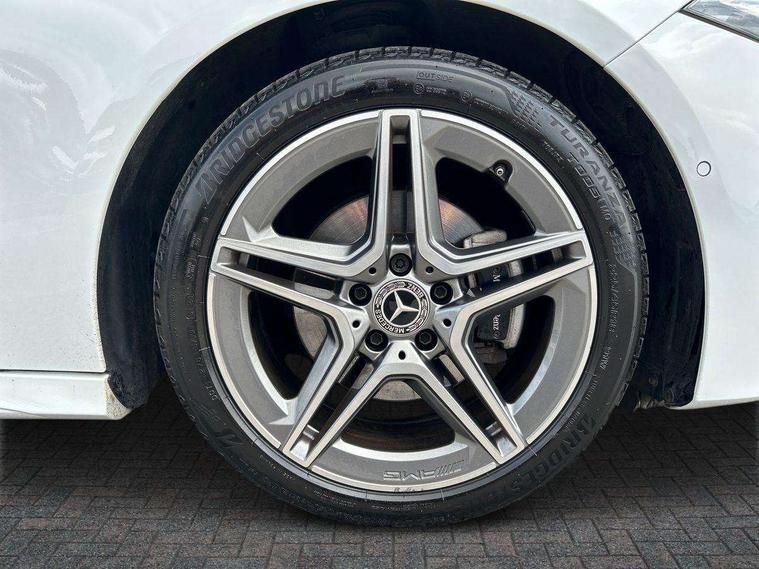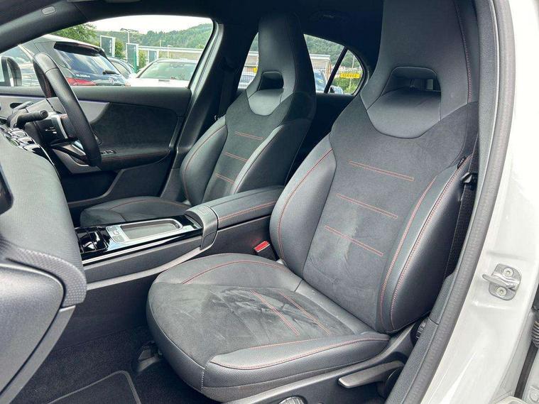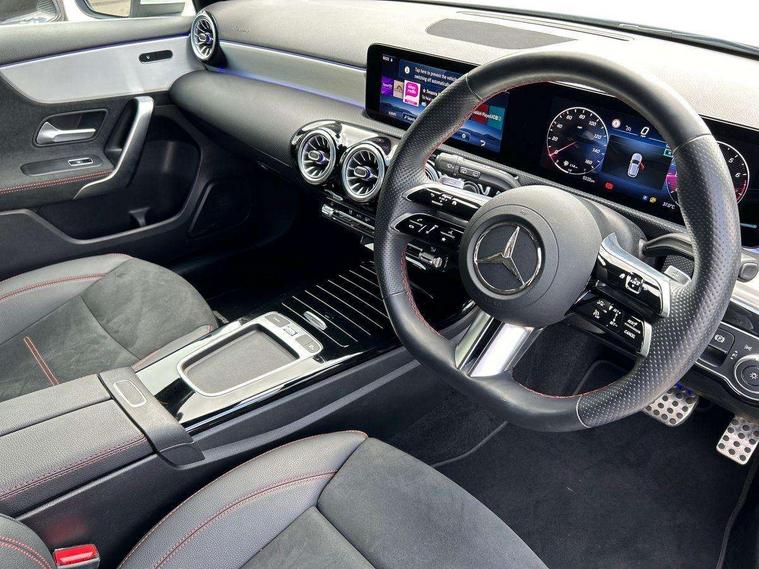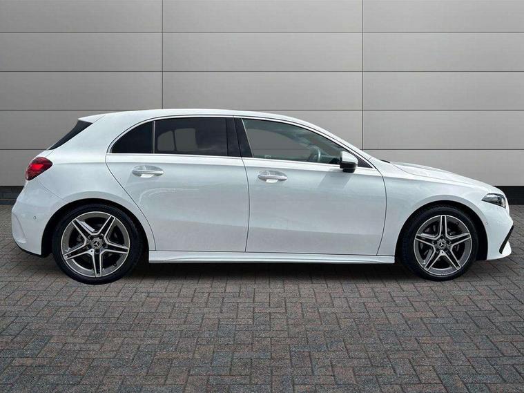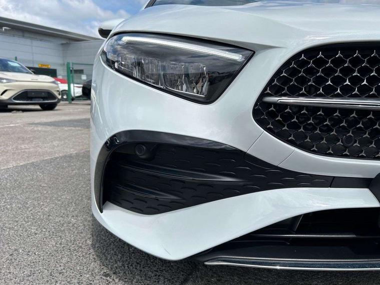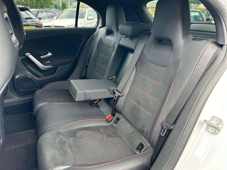10.25 inch touchscreen central media display, 10.25" Digital instrument cluster display screen, Attention assist, Brake pad wear indicator warning light, Car wash mode, Cruise control + speed limiter, Direct steering, Direction indicators with lane change function, Dual bluetooth interfaces, DYNAMIC SELECT with a choice of driving modes (ECO, Comfort, Sport and Individual), Easy pack tailgate hands-free access, ECO start/stop function, Engine start/stop button, Fluid level warning indicator for fuel, oil, coolant and washer fluid, Fluorescent jacket for driver, Hard-disk navigation, Hey Mercedes Voice activation, Lamp failure indicator, Lane keeping system, Mercedes me connect including emergency call system, accident recovery, breakdown and maintenance management, Mercedes me remote services, Outside temperature gauge, Owners manual in English, Pre-installation of private car share, Preinstallation for Mercedes Benz link, Remote boot closing, Service indicator (ASSYST), Smartphone integration with Apple CarPlay and Android auto, Speed limit assist, Speed sensitive power steering, Tailgate, Trip computer in multifunction display with current consumption indicator, Wireless charging, Lowered comfort suspension, DAB Digital radio, MBUX multimedia system, Mercedes Benz sound system (100 W) with 6 speakers, 4 Electric Front and Rear windows, Adaptive brake lights, AMG body styling - AMG front apron with front splitter and AMG rear apron and visible exhaust tailpipe trim elements, Body colour bumpers, Body colour door handles with chrome inserts, Body colour side skirt, Body coloured door mirrors, Chrome beltline strips, Diamond radiator grille with pins in fine star pattern, Electric adjustable and heated door mirrors with integrated LED side indicators, Exhaust system with 2 visible tailpipe trim elements and rear apron, Headlamp assist automatic headlamp activation, Heat insulating dark tinted rear and rear side windows, Heated glass rear windscreen + timer control, LED High level third brake light, LED High Performance headlamps including integral LED daytime running lamps and adaptive highbeam assist, LED tail lamp, Privacy glass, Radio aerial, Rain sensing windscreen wipers with two sensitivity settings, Rear fog lights, Rear side wing doors, Rear windscreen wiper, Window line trim strip in chrome, 3 seat bench in 2nd row, 3 Spoke flat bottom leather multi function steering wheel with perforated leather in grip area, 4 way lumbar support, 40:20:40 split folding rear seats, Air conditioning - One zone thermatic automatic climate control with automatically controlled air distribution, AMG floor mats, Automatic child seat recognition sensor, Black air vents with surround in silver chrome, Black roof lining, Brushed stainless steel sports pedals with rubber studs, Front centre armrest with stowage, Front door sills with Mercedes Benz lettering, Front seat backs luggage nets, Galvanished gear shift paddles on steering wheel, Heated front seats, Height/reach adjustable steering column, Interior lighting - 64 colour Ambient lighting, Interior mirror with reading lamps in black and frameless, Rear armrest with 2 cupholders, Seat occupancy sensor for front passenger seat, Single front passenger seat, Sports seats with integrated headrests, Stowage compartment in centre console with retractable cover, Sunvisors with illuminated vanity mirrors, Twin front cupholders, Light and sight pack - A Class, Mirror package - A Class, Parking pack - A Class, Seat comfort pack - A Class, USB pack plus - A Class, 3 rear 3 point seatbelts, ABS with Brake Assist, Active bonnet, Active brake assist includes forward collision warning system with autonomous braking, Adaptive brake assist with hold function and hill start assist, Black seatbelts, Bonnet with power domes, Childproof locks manually operated for rear doors and electrically operated for rear power windows, Crash responsive emergency lighting, Driver and passenger head and side airbags, Drivers knee airbag, Dual stage driver/passenger airbags, Electronic parking brake, ESP curve dynamic assist, ESP with ASR, Front and rear seatbelt reminder, ISOFIX and top tether child seat fixing points in two outer rear seats, Tyre pressure monitoring system, Warning triangle and first aid kit, Window airbags, Alarm system/interior protection/immobiliser, Guard 360 degree vehicle protection, Keyless entry lock/unlock, Keyless Go, Remote central locking and crash sensor with emergency opening function, Light longitudinal grain aluminium trim, 18" AMG 5 twin spoke light alloy wheels, aerodynamically optimised, painted in termolite grey with high sheen finish, Summer tyres, Tirefit sealant kit,
