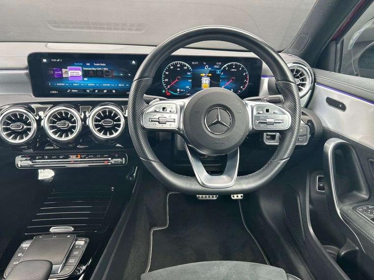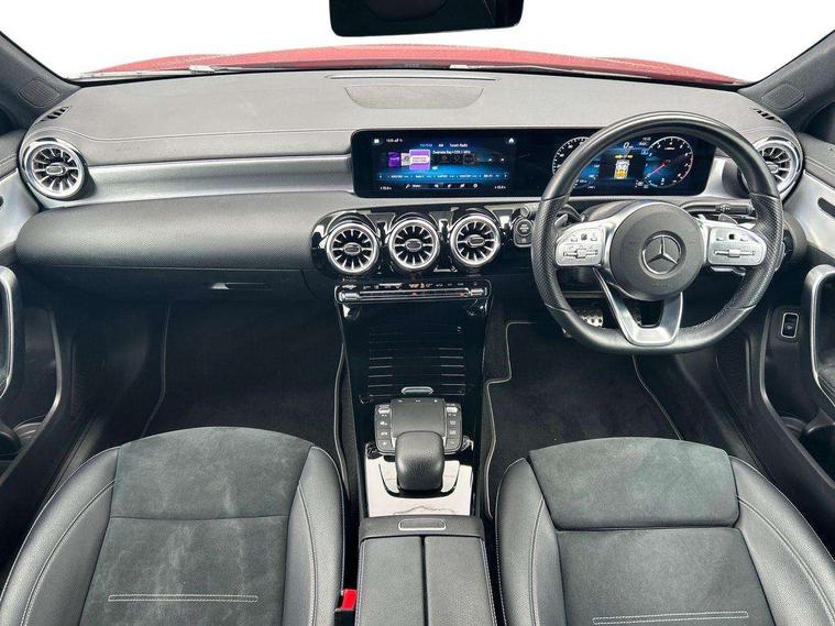 10.25" Digital instrument cluster display screen, 10.25" media display, 180 degree rear view camera with parking guidelines, Active parking assist with visual and audible warning of detected obstacles, Attention assist, Brake pad wear indicator warning light, Car wash mode, Cruise control + speed limiter, Direct steering, Dual bluetooth interfaces, DYNAMIC SELECT with a choice of driving modes (ECO, Comfort, Sport and Individual), ECO start/stop function, Fluid level warning indicator for fuel, oil, coolant and washer fluid, Hard-disk navigation, Hey Mercedes Voice activation, Lamp failure indicator, Lane keeping system, Mercedes me connect including emergency call system, accident recovery, breakdown and maintenance management, Mercedes me remote services, Outside temperature gauge, Owners manual in English, Pre-installation for private car sharing, Preinstallation for Mercedes Benz link, Service indicator (ASSYST), Smartphone integration with Apple CarPlay and Android auto, Speed sensitive power steering, Trip computer, Ultrasonic sensors positioned in the front and rear bumpers, Lowered comfort suspension, Rear axle torsion beam, 10 speakers, 2 USB ports (type C) in rear stowage compartment and one in front of center console, DAB Digital radio, MBUX multimedia system with DAB digital radio and touchpad including satellite navigation, Mercedes-Benz sound system - 100W, 4 Electric Front and Rear windows, Adaptive brake lights, AMG bodystyling - Front apron with splitter in chrome, rear apron with chrome trim and chrome visible trim elements in tailpipe, Automatic headlights, Black weather strip, Body colour bumpers, Body colour door handles, Body colour side skirt, Body coloured door mirrors, Electric adjustable and heated door mirrors with integrated LED side indicators, Exclusive diamond radiator grille, Exhaust system - Twin visible tailpipes in polished stainless steel, Headlamp assist automatic headlamp activation, Heated glass rear windscreen + timer control, High gloss black beltline, LED high performance headlamps with integrated LED daytime running lights, LED tail lamp, Privacy glass, Radio aerial, Rain sensing windscreen wipers with two sensitivity settings, Rear boot, Rear fog lights, Rear side wing doors, Third brake light featuring LED technology, Window line trim strip in high gloss black, 3 seat bench in 2nd row, 3 Spoke flat bottom leather multi function steering wheel with perforated leather in grip area, 40:20:40 split folding rear seats, Artico man-made leather/Microfibre Dinamica upholstery with contrast stitching in light grey, Auto Mercedes-Benz child seat recognition sensor, Black air vents with surround in silver chrome, Black roof lining, Brushed stainless steel sports pedals with rubber studs, Controller on centre console with chrome surround, Floor mats with black top stitching and embroidered edition logo and piping in light grey, Front centre armrest with storage compartment, Front seat backs luggage nets, Front seat cushion length adjustment, Galvanished gear shift paddles on steering wheel, Heated front seats, Height/reach adjustable steering column, Illuminated front door sills with changeable cover, Interior lighting - 64 colour Ambient lighting, Interior mirror with reading lamps in black and frameless, Manual height adjustable front seats, Rear armrest with 2 cupholders, Rear head restraints, Seat occupancy sensor for front passenger seat, Single front passenger seat, Sports seats with adjustable head restraints, Stowage compartment in centre console with retractable cover, Sunvisors with illuminated vanity mirrors, Touchpad on center console, Twin front cupholders, Two zone thermotronic luxury automatic climate control, Light and sight pack - A Class, Mirror package - A Class, Night pack - A Class Saloon/Hatchback, Seat comfort pack - A Class, 3 rear 3 point seatbelts, ABS with Brake Assist, Active bonnet, Active brake assist includes forward collision warning system with autonomous braking, Adaptive brake assist with hold function and hill start assist, Black seatbelts, Childproof locks manually operated for rear doors and electrically operated for rear power windows, Crash responsive emergency lighting, Driver and passenger head and side airbags, Drivers knee airbag, Dual stage driver/passenger airbags, Electronic parking brake, ESP curve dynamic assist, ESP with ASR, Front and rear seatbelt reminder, Front brake callipers with Mercedes Benz lettering, ISOFIX and top tether child seat fixing points in two outer rear seats, Tyre pressure monitoring system, Warning triangle and first aid kit, Window airbags, Alarm system/interior protection/immobiliser, Keyless entry lock/unlock, Keyless Go, Remote central locking and crash sensor with emergency opening function, Urban guard vehicle protection system with immobiliser and interior protection, Matrix look light longitudinal grain aluminium trim element, 18" AMG 5 twin spoke light alloy wheels aerodynamically optimised painted in black with highsheen finish, Summer tyres, Tirefit sealant kit,