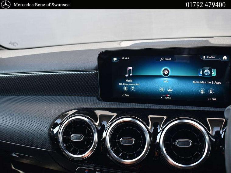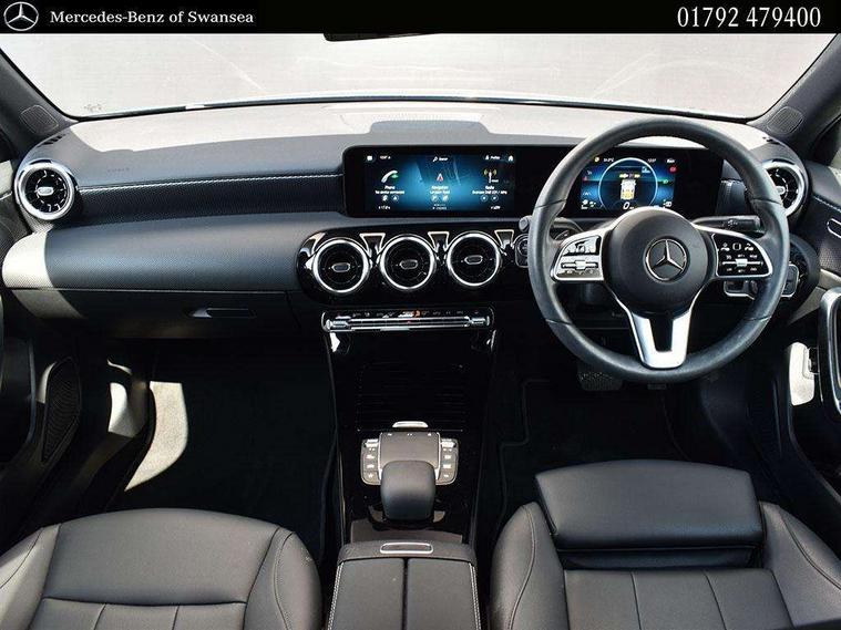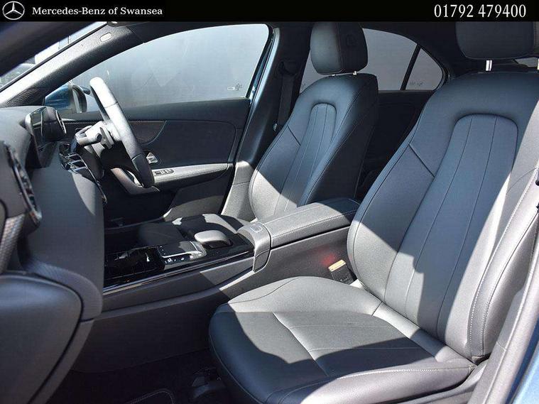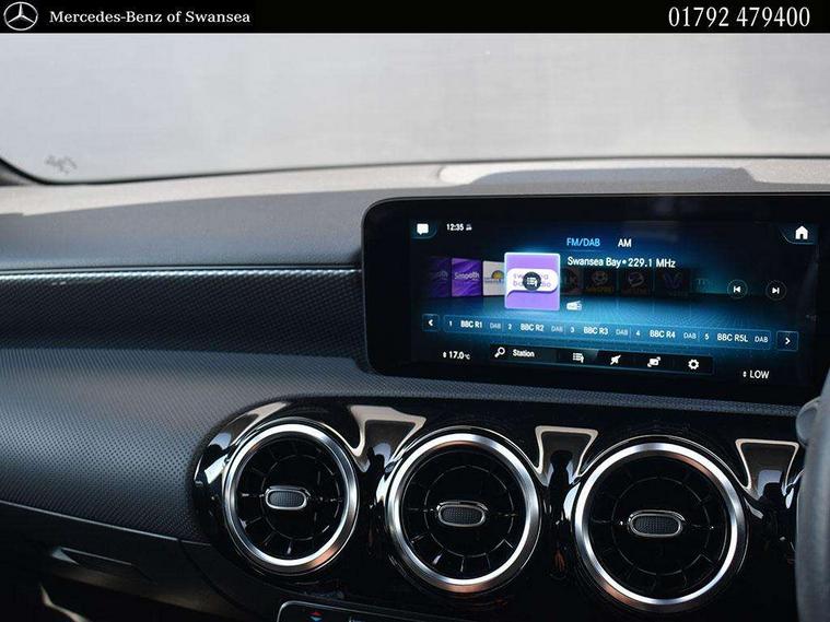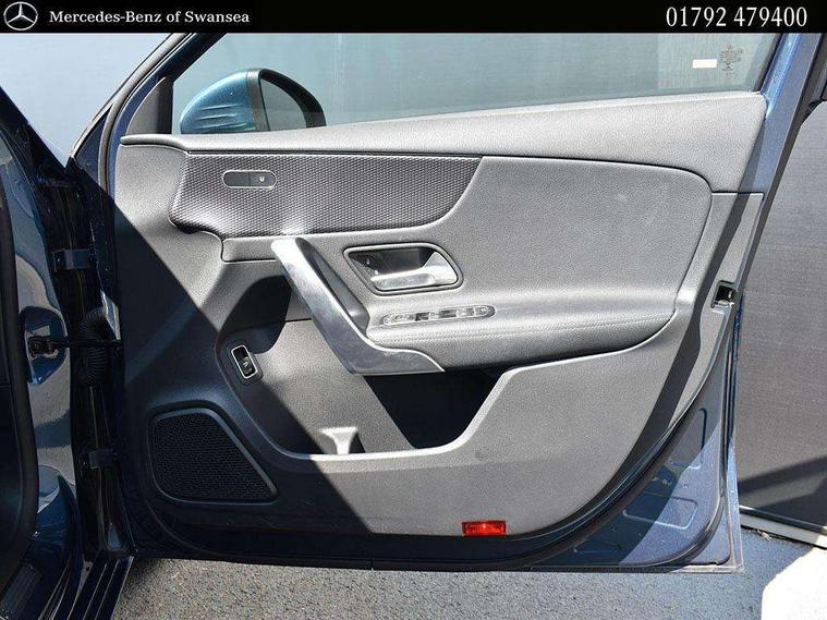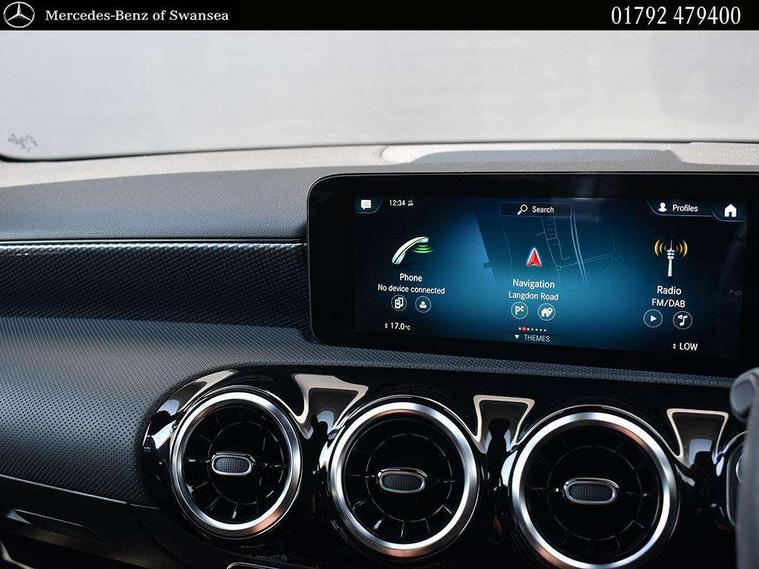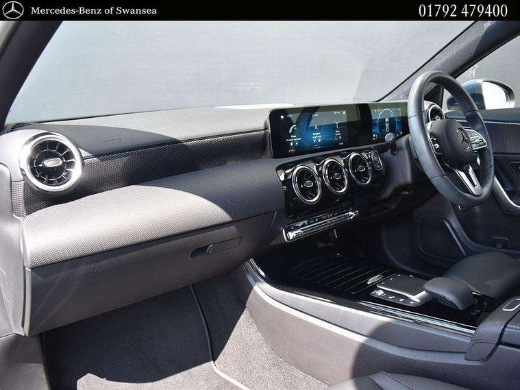 10.25" media display, 180 degree rear view camera with parking guidelines, 7" colour screen in instrument panel, Active parking assist with visual and audible warning of detected obstacles, Attention assist, Brake pad wear indicator warning light, Car wash mode, Cruise control + speed limiter, Direct steering, Dual bluetooth interfaces, DYNAMIC SELECT with a choice of driving modes (ECO, Comfort, Sport and Individual), ECO start/stop function, Fluid level warning indicator for fuel, oil, coolant and washer fluid, Hard-disk navigation, Hey Mercedes Voice activation, Lamp failure indicator, Lane keeping system, Mercedes me connect including emergency call system, accident recovery, breakdown management and maintenance, Mercedes me remote services, Outside temperature gauge, Owners manual in English, Pre-installation for car sharing, Preinstallation for Mercedes Benz link, Service indicator (ASSYST), Smartphone integration with Apple CarPlay and Android auto, Speed sensitive power steering, Trip computer, Ultrasonic sensors positioned in the front and rear bumpers, Lowered comfort suspension, Rear axle torsion beam, 2 USB ports (type C) in rear stowage compartment and one in front of center console, 6 speakers, DAB Digital radio, MBUX multimedia system with DAB digital radio and touchpad including satellite navigation, Mercedes-Benz sound system - 100W, 4 Electric Front and Rear windows, Adaptive brake lights, Automatic headlights, Black weather strip, Body colour bumpers, Body colour door handles, Body colour side skirt, Body coloured door mirrors, Chrome beltline trim, Diamond radiator grille with black pins with one louvre in silver + chrome insert, Electric adjustable and heated door mirrors with integrated LED side indicators, Exhaust system - Twin visible tailpipes in polished stainless steel, Headlamp assist automatic headlamp activation, Heated glass rear windscreen + timer control, LED high performance headlamps with integrated LED daytime running lights, LED tail lamp, Privacy glass, Radio aerial, Rain sensing windscreen wipers with two sensitivity settings, Rear boot, Rear fog lights, Rear side wing doors, Third brake light featuring LED technology, Window line trim strip in chrome, 3 seat bench in 2nd row, 3 Spoke leather multi function steering wheel, 40:20:40 split folding rear seats, Artico man-made leather upholstery, Auto Mercedes-Benz child seat recognition sensor, Black air vents with surround in silver chrome, Black roof lining, Controller on centre console with chrome surround, Front centre armrest with storage compartment, Front comfort seats with adjustable head restraints, Front door sills with Mercedes Benz lettering, Front seat backs luggage nets, Front seat cushion length adjustment, Gearshift paddles on steering wheel, Heated front seats, Height/reach adjustable steering column, Interior mirror with reading lamps in black and frameless, ISOFIX and top tether child seat fixing points in two outer rear seats, Manual height adjustable front seats, Rear head restraints, Seat occupancy sensor for front passenger seat, Single front passenger seat, Stowage compartment in centre console with retractable cover, Sunvisors with illuminated vanity mirrors, Touchpad on center console, Twin front cupholders, Two zone thermotronic luxury automatic climate control, Velour floor mats, Light and sight pack - A Class, Mirror package - A Class, Seat comfort pack - A Class, 3 rear 3 point seatbelts, ABS with Brake Assist, Active bonnet, Active brake assist includes forward collision warning system with autonomous braking, Adaptive brake assist with hold function and hill start assist, Black seatbelts, Childproof locks manually operated for rear doors and electrically operated for rear power windows, Crash responsive emergency lighting, Driver and passenger head and side airbags, Drivers knee airbag, Dual stage driver/passenger airbags, Electronic parking brake, ESP curve dynamic assist, ESP with ASR, Front and rear seatbelt reminder, Tyre pressure monitoring system, Warning triangle and first aid kit, Window airbags, Alarm system/interior protection/immobiliser, Keyless Go, Remote central locking and crash sensor with emergency opening function, Urban guard vehicle protection system with immobiliser and interior protection, Dark carbon fibre interior trim, 18" multi spoke light alloy wheels painted in himalayas grey with a high sheen finish, Summer tyres, Tirefit sealant kit,