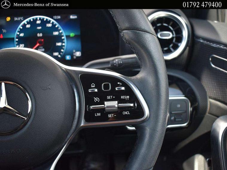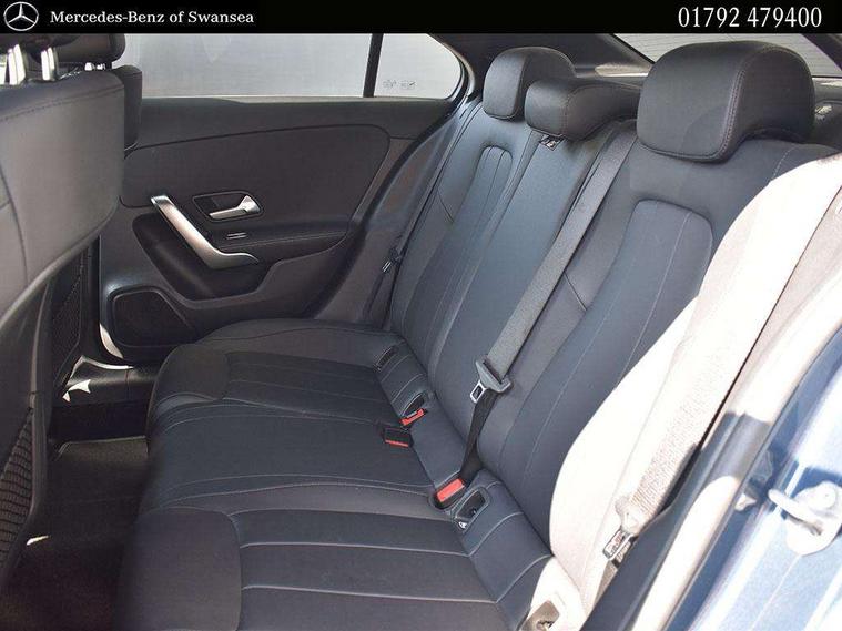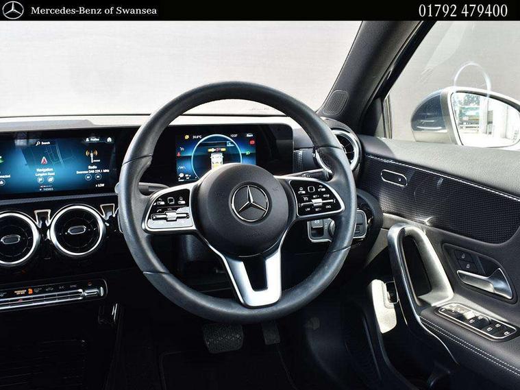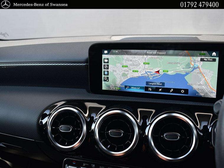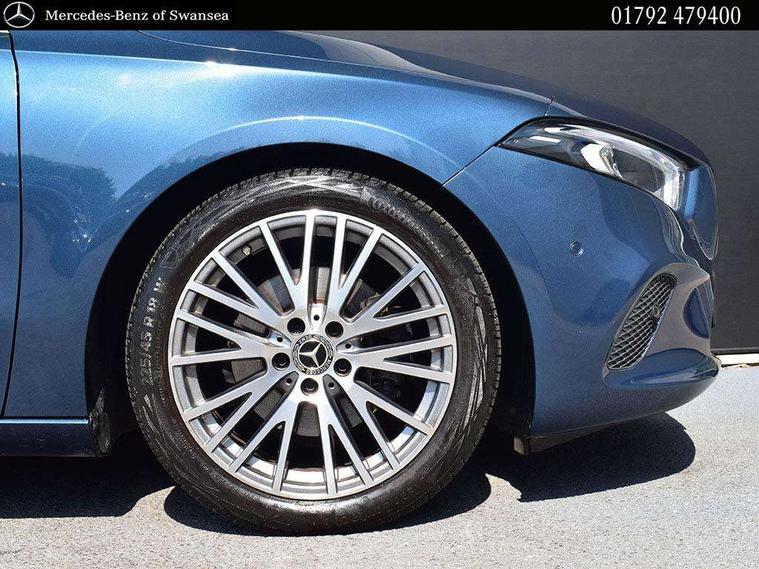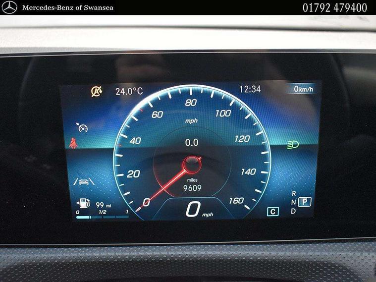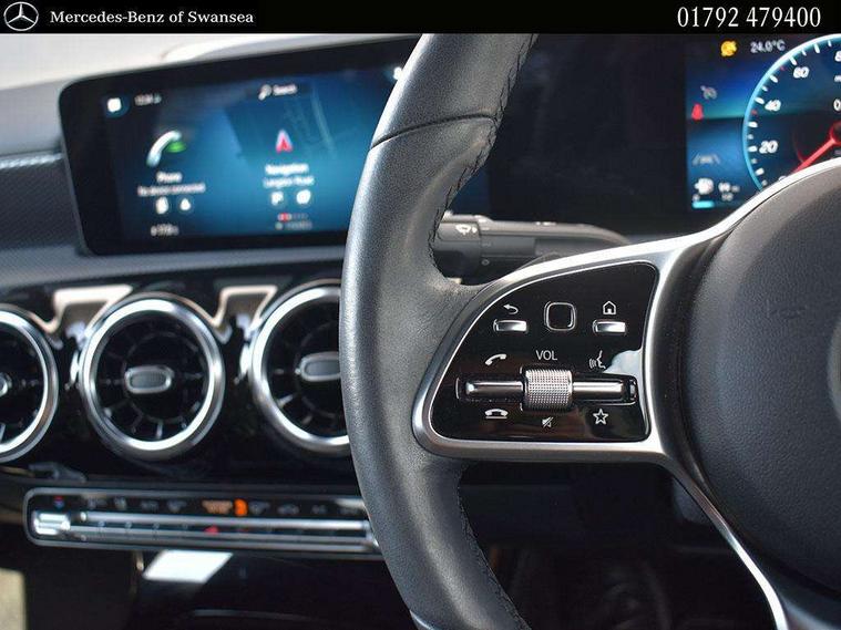 10.25" media display, 180 degree rear view camera with parking guidelines, 7" colour screen in instrument panel, Active parking assist with visual and audible warning of detected obstacles, Attention assist, Brake pad wear indicator warning light, Car wash mode, Cruise control + speed limiter, Direct steering, Dual bluetooth interfaces, DYNAMIC SELECT with a choice of driving modes (ECO, Comfort, Sport and Individual), ECO start/stop function, Fluid level warning indicator for fuel, oil, coolant and washer fluid, Hard-disk navigation, Hey Mercedes Voice activation, Lamp failure indicator, Lane keeping system, Mercedes me connect including emergency call system, accident recovery, breakdown management and maintenance, Mercedes me remote services, Outside temperature gauge, Owners manual in English, Pre-installation for car sharing, Preinstallation for Mercedes Benz link, Service indicator (ASSYST), Smartphone integration with Apple CarPlay and Android auto, Speed sensitive power steering, Trip computer, Ultrasonic sensors positioned in the front and rear bumpers, Lowered comfort suspension, Rear axle torsion beam, 2 USB ports (type C) in rear stowage compartment and one in front of center console, 6 speakers, DAB Digital radio, MBUX multimedia system with DAB digital radio and touchpad including satellite navigation, Mercedes-Benz sound system - 100W, 4 Electric Front and Rear windows, Adaptive brake lights, Automatic headlights, Black weather strip, Body colour bumpers, Body colour door handles, Body colour side skirt, Body coloured door mirrors, Chrome beltline trim, Diamond radiator grille with black pins with one louvre in silver + chrome insert, Electric adjustable and heated door mirrors with integrated LED side indicators, Exhaust system - Twin visible tailpipes in polished stainless steel, Headlamp assist automatic headlamp activation, Heated glass rear windscreen + timer control, LED high performance headlamps with integrated LED daytime running lights, LED tail lamp, Privacy glass, Radio aerial, Rain sensing windscreen wipers with two sensitivity settings, Rear boot, Rear fog lights, Rear side wing doors, Third brake light featuring LED technology, Window line trim strip in chrome, 3 seat bench in 2nd row, 3 Spoke leather multi function steering wheel, 40:20:40 split folding rear seats, Artico man-made leather upholstery, Auto Mercedes-Benz child seat recognition sensor, Black air vents with surround in silver chrome, Black roof lining, Controller on centre console with chrome surround, Front centre armrest with storage compartment, Front comfort seats with adjustable head restraints, Front door sills with Mercedes Benz lettering, Front seat backs luggage nets, Front seat cushion length adjustment, Gearshift paddles on steering wheel, Heated front seats, Height/reach adjustable steering column, Interior mirror with reading lamps in black and frameless, ISOFIX and top tether child seat fixing points in two outer rear seats, Manual height adjustable front seats, Rear head restraints, Seat occupancy sensor for front passenger seat, Single front passenger seat, Stowage compartment in centre console with retractable cover, Sunvisors with illuminated vanity mirrors, Touchpad on center console, Twin front cupholders, Two zone thermotronic luxury automatic climate control, Velour floor mats, Light and sight pack - A Class, Mirror package - A Class, Seat comfort pack - A Class, 3 rear 3 point seatbelts, ABS with Brake Assist, Active bonnet, Active brake assist includes forward collision warning system with autonomous braking, Adaptive brake assist with hold function and hill start assist, Black seatbelts, Childproof locks manually operated for rear doors and electrically operated for rear power windows, Crash responsive emergency lighting, Driver and passenger head and side airbags, Drivers knee airbag, Dual stage driver/passenger airbags, Electronic parking brake, ESP curve dynamic assist, ESP with ASR, Front and rear seatbelt reminder, Tyre pressure monitoring system, Warning triangle and first aid kit, Window airbags, Alarm system/interior protection/immobiliser, Keyless Go, Remote central locking and crash sensor with emergency opening function, Urban guard vehicle protection system with immobiliser and interior protection, Dark carbon fibre interior trim, 18" multi spoke light alloy wheels painted in himalayas grey with a high sheen finish, Summer tyres, Tirefit sealant kit,