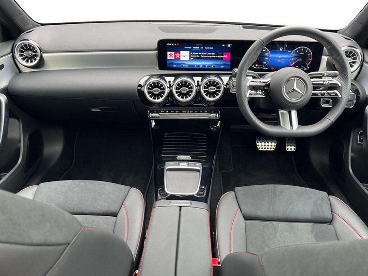 10.25 inch touchscreen central media display, 10.25" Digital instrument cluster display screen, Attention assist, Brake pad wear indicator warning light, Car wash mode, Direct steering, Direction indicators with lane change function, Dual bluetooth interfaces, DYNAMIC SELECT with a choice of driving modes (ECO, Comfort, Sport and Individual), ECO start/stop function, Engine start/stop button, Fluid level warning indicator for fuel, oil, coolant and washer fluid, Hard-disk navigation, Head up Display, Hey Mercedes Voice activation, Lamp failure indicator, MBUX augmented reality for navigation, MBUX Interior assistant, Mercedes me connect including emergency call system, accident recovery, breakdown and maintenance management, Mercedes me remote services, Outside temperature gauge, Owners manual in English, Pre-installation of private car share, Preinstallation for Mercedes Benz link, Remote boot closing, Service indicator (ASSYST), Smartphone integration with Apple CarPlay and Android auto, Speed sensitive power steering, Traffic sign assist, Trip computer in multifunction display with current consumption indicator, Wireless charging, Lowered comfort suspension, DAB Digital radio, MBUX multimedia system, Mercedes Benz advanced sound system (225 W) with 10 speakers, 1 central speaker, speakers on doors, a tweeter on door, one sub woofer + boost amplifier, 4 Electric Front and Rear windows, Adaptive brake lights, AMG body styling - AMG front apron with front splitter and AMG rear apron and visible exhaust tailpipe trim elements, Body colour bumpers, Body colour door handles with chrome inserts, Body colour side skirt, Body coloured door mirrors, Chrome beltline strips, Diamond radiator grille with pins in fine star pattern, Electric adjustable and heated door mirrors with integrated LED side indicators, Exhaust system with 2 visible tailpipe trim elements and rear apron, Headlamp assist automatic headlamp activation, Heat insulating dark tinted rear and rear side windows, Heated glass rear windscreen + timer control, LED daytime running lights, LED tail lamp, Multibeam LED headlamps with adaptive highbeam assist and cornering function, Panoramic sliding sunroof, Privacy glass, Radio aerial, Rain sensing windscreen wipers with two sensitivity settings, Rear boot, Rear fog lights, Rear side wing doors, Surround lighting with logo projection, Third brake light featuring LED technology, Window line trim strip in chrome, 3 seat bench in 2nd row, 3 Spoke flat bottom leather multi function steering wheel with perforated leather in grip area, 40:20:40 split folding rear seats, Air conditioning - Two zone thermotronic luxury automatic climate control with display, Automatic child seat recognition sensor, Black air vents with surround in silver chrome, Black roof lining, Brushed stainless steel sports pedals with rubber studs, Electrically adjustable front memory seats including lumbar support and backrest inclination, Floor mats with AMG lettering, Front centre armrest with stowage, Front seat backs luggage nets, Front sports seats with adjustable head restraints, Galvanished gear shift paddles on steering wheel, Heated front seats, Height/reach adjustable steering column, Illuminated Mercedes Benz lettering front door sills with changeable cover, Interior lighting - 64 colour Ambient lighting, Interior mirror with reading lamps in black and frameless, Rear armrest with 2 cupholders, Seat occupancy sensor for front passenger seat, Single front passenger seat, Stowage compartment in centre console with retractable cover, Sunvisors with illuminated vanity mirrors, Twin front cupholders, Keyless go comfort pack - A Class, Light and sight pack - A Class, Mirror package - A Class, Parking pack with 360 degree camera - A Class, Seat comfort pack - A Class, USB pack plus - A Class, 3 rear 3 point seatbelts, ABS with Brake Assist, Active bonnet, Adaptive brake assist with hold function and hill start assist, Black seatbelts, Bonnet with power domes, Childproof locks manually operated for rear doors and electrically operated for rear power windows, Crash responsive emergency lighting, Driver and passenger head and side airbags, Drivers knee airbag, Dual stage driver/passenger airbags, Electronic parking brake, ESP curve dynamic assist, ESP with ASR, Exit warning, Front and rear seatbelt reminder, ISOFIX and top tether child seat fixing points in two outer rear seats, Tyre pressure monitoring system, Warning triangle and first aid kit, Window airbags, Alarm system/interior protection/immobiliser, Guard 360 degree vehicle protection, Remote central locking and crash sensor with emergency opening function, Light longitudinal grain aluminium trim, 19" AMG multi-spoke light alloy wheels, aerodynamically optimised, painted in titanium grey with high sheen finish, Summer tyres, Tirefit sealant kit,
