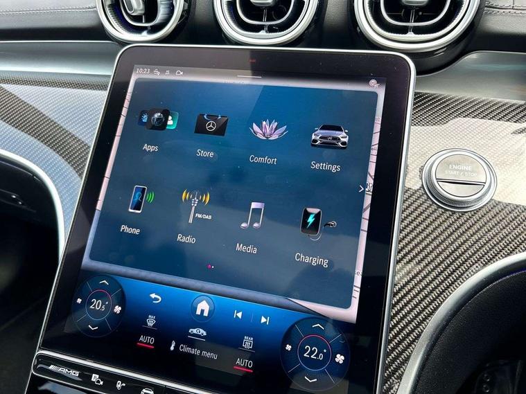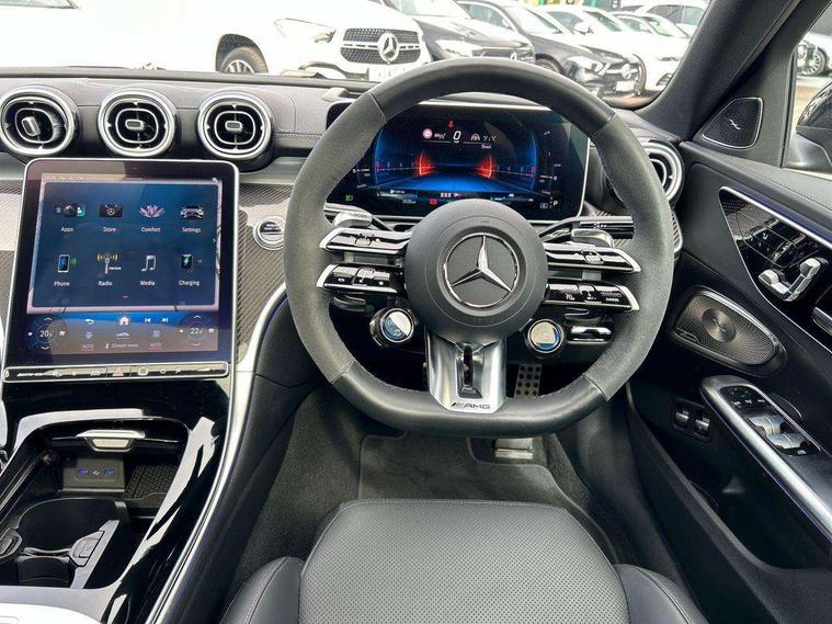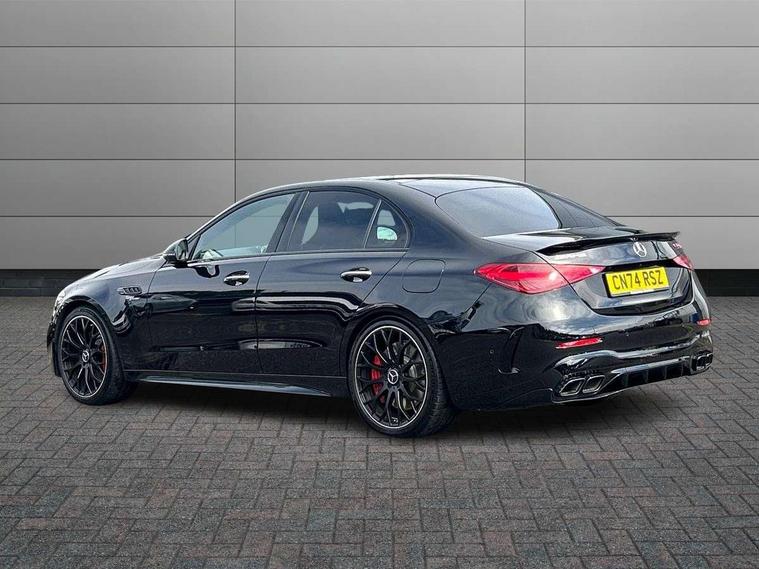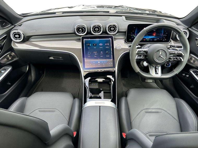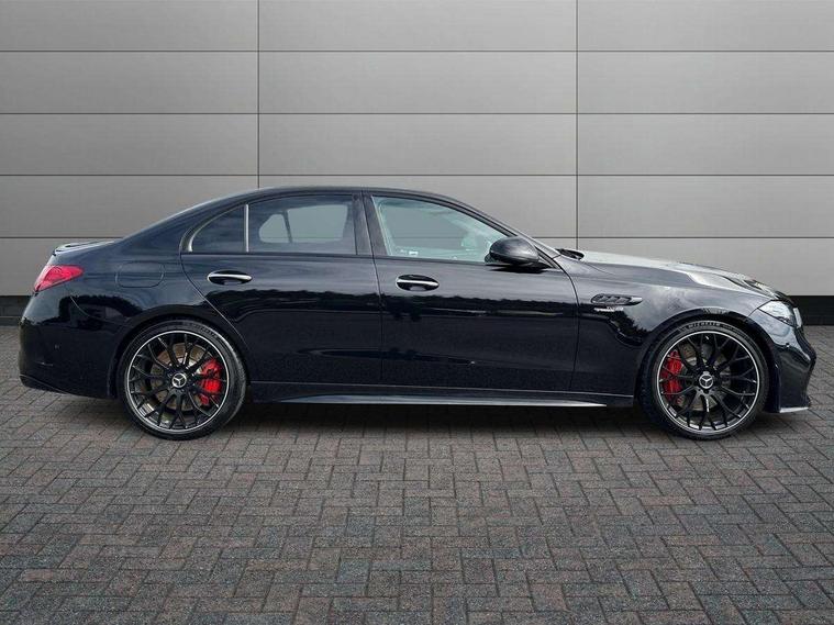 11.9" high resolution multimedia colour display, 12.3" digital instrument cluster display, Acoustic ambient protection, Active parking assist with PARKTRONIC, AMG DYNAMIC SELECT with a choice of eight driving modes(Electric, Comfort, Battery Hold, Sport, Sport+, Race, Slippery and Individual), AMG track pace, Attention assist, Charging services plus, E-call, Extended MBUX functions, Finger print sensor, Fluorescent jacket for driver, Hard disc navigation, Head up Display, MBUX augmented reality for navigation, MBUX navigation premium, Mercedes me remote services, Outside temperature gauge, Rear axle steering, Service indicator (ASSYST), Smartphone integration, Sports direct steer speed sensitive steering, Status display for rear seat belts in instrument cluster, Traffic sign assist, Wireless charging system for mobile devices, 5m charging cable for household socket (mode 2), 5m charging cable for wall box/public charging stations(mode 3), AC charging, AMG Ride Control suspension, AMG speedshift MCT 9G with wet starting clutch and race start function, Petrol Particulate Filter, Suspension with adaptive damping system, Burmester 3D surround sound system, DAB Digital radio, MBUX multimedia system, Adaptive brake lights, Adaptive high beam assist plus, AMG body styling front apron, rear apron and side skirts, AMG fuel cap, AMG illuminated door sills with AMG lettering and with exchangeable cover, AMG Real Performance Sound, Body coloured bumpers, Digital light LED headlamps, Electric panoramic glass sunroof, Electric windows with one touch opening/closing and obstruction sensors, Electrically adjustable and heated door mirrors, EQ badging on front wings, Flared wheel arches, Heat insulating dark tinted glass, High gloss black AMG performance spoiler lip, LED daytime running lights, LED Indicators, LED tail lights, LED third brake light, Mercedes AMG exterior, Noise acoustic glass, Rain sensor with automatic windscreen wiper activation, Rear boot, Rear side wing doors, 3 seat bench in 2nd row, 40:20:40 split folding rear bench seat, Ambient lighting premium, Ambient lighting with projection of brand logo, AMG floor mats, AMG Nappa leather upholstery, AMG Performance steering wheel in nappa leather/microcut microfibre, AMG steering wheel buttons, Auto Mercedes-Benz child seat recognition sensor, Black roof liner, Boot lid convenience closing feature, Double cupholder in centre console, Electrically height/reach adjustable steering column, Folding rear seat backrest, Front and rear head restraints, Gearshift paddles on steering wheel, Illuminated glove compartment stowage, Mercedes AMG interior, Rear top tether child seat ISOFIX attachment, Single front passenger seat, Sunvisors with illuminated vanity mirrors, THERMATIC 2 zone automatic climate control, AMG aerodynamics package - C Class C63, AMG drivers pack - C Class, AMG exterior night pack - C Class, Interior light package - C Class, Keyless go comfort package - C Class, Memory package - C Class, Mirror package - C Class, Parking package with 360 degree camera - C Class, Stowage space pack - C Class, USB package plus - C Class, 3 rear 3 point seatbelts, Active bonnet pedestrian safety measure which detects an impact and raises bonnet, Adaptive brake system with HOLD function and brake drying in the wet, Anti-lock braking system (ABS), Black seat belts, Child proof door locks, Drivers knee airbag, Drivers pelvis airbag, Dual stage driver/passenger airbags, Electric parking brake, Electronic Stability Programme (ESP), Front centre airbag between driver and front passenger seats, Front side airbags, Red brake callipers, Tyre pressure monitoring system, Warning triangle and first aid kit, Window airbags for driver, front passenger and rear passenger, Antitheft alarm system, Interior monitoring system and Increased antitheft protection, Central locking with interior switch, automatic locking and crash sensor with emergency opening function, Chrome surround electric key, Dashcam, Urban guard vehicle protection plus, Carbon fibre trim with centre console in high gloss black, Dashboard, instrument panel and beltlines in ARTICO man made leather in nappa look, 20" AMG cross spoke light alloy wheels painted in high gloss black with high sheen finish, TIREFIT with tyre inflation compressor,