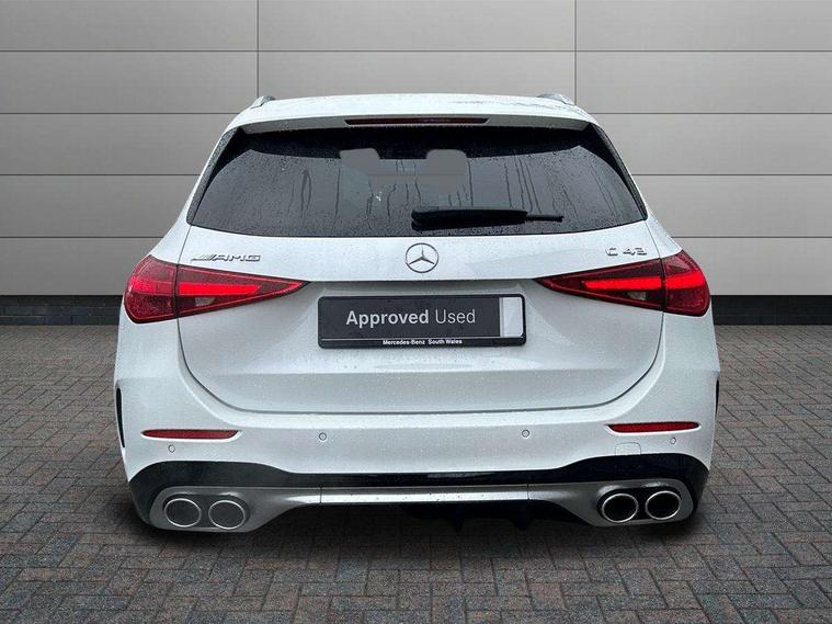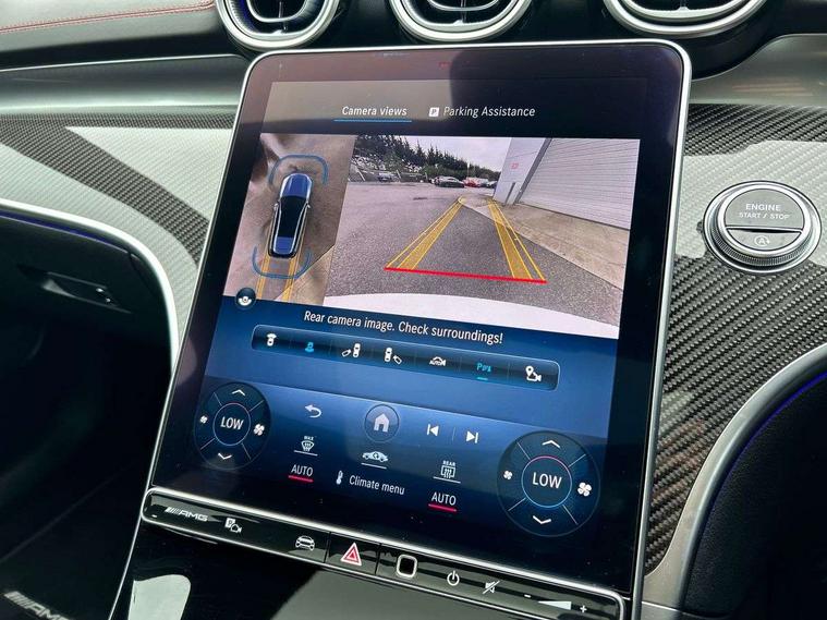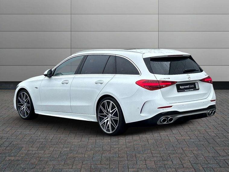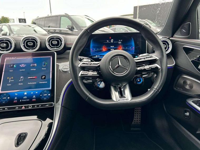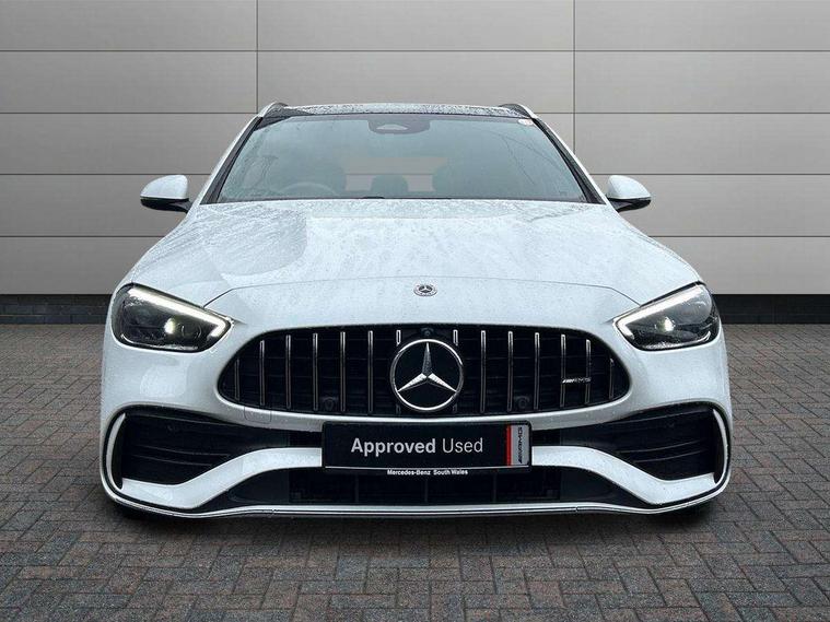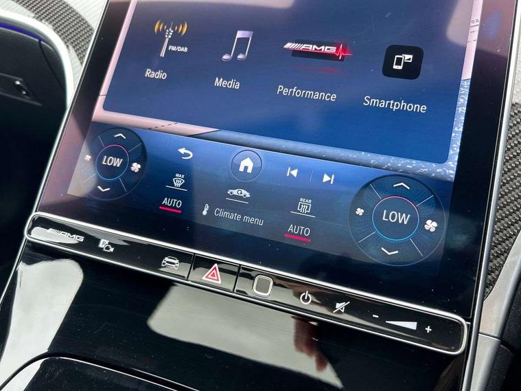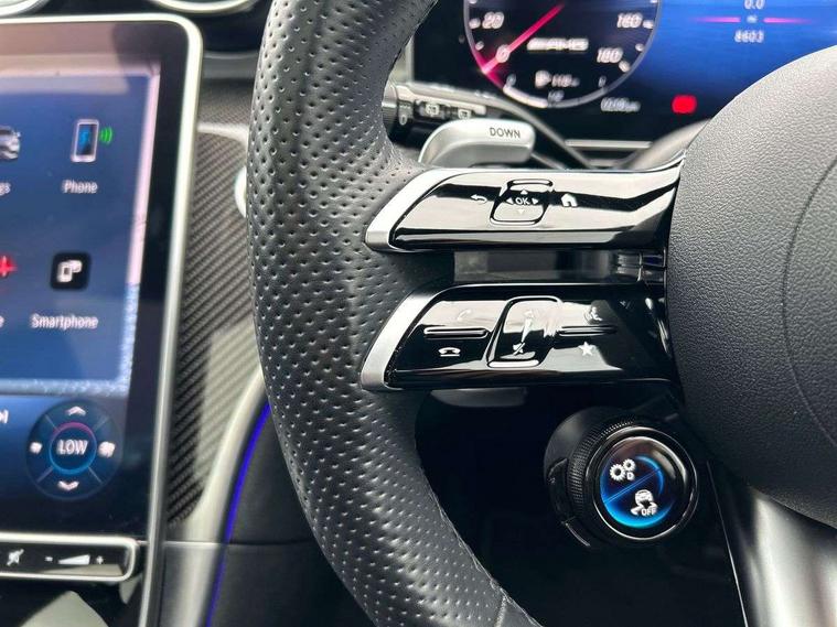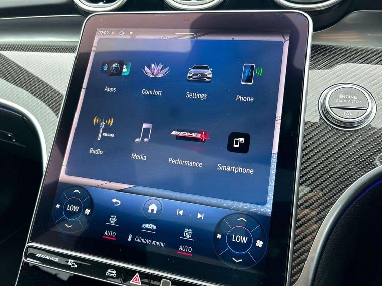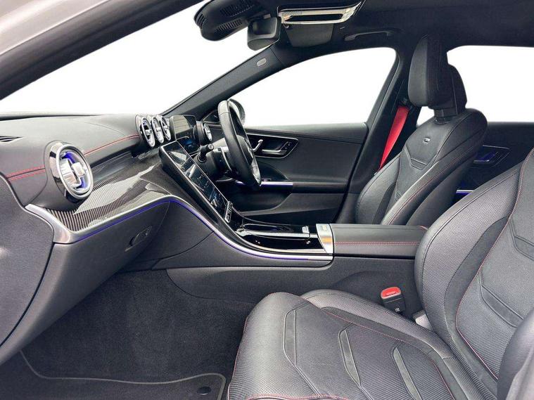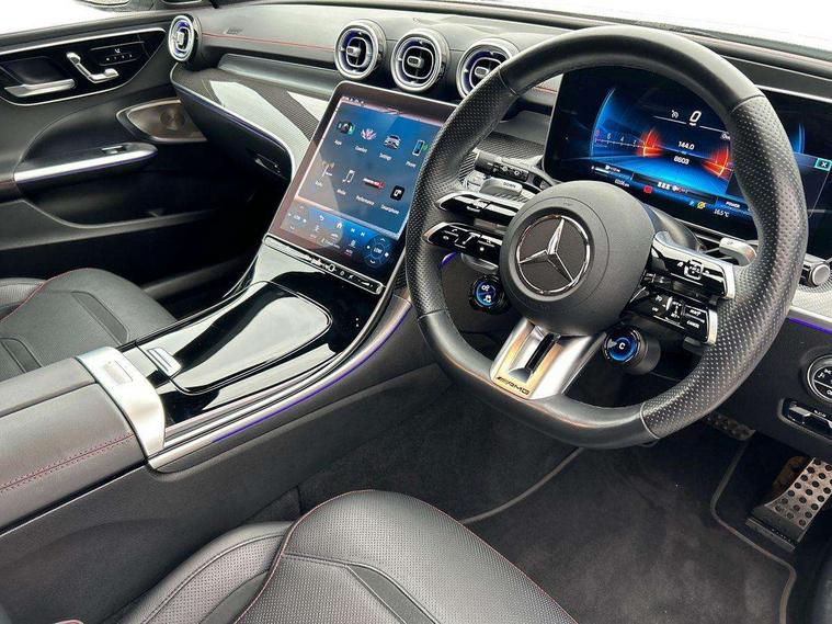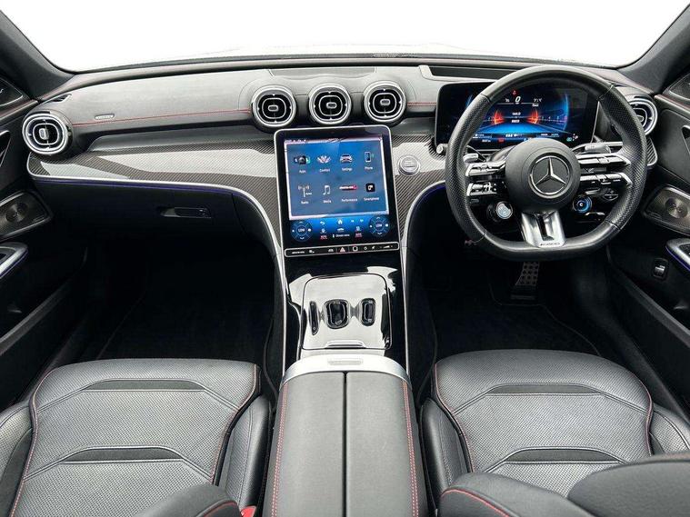 11.9" high resolution multimedia colour display, 12.3" digital instrument cluster display, Active brake assist plus, Active lane keeping assist, AMG DYNAMIC SELECT with a choice of driving modes (Slippery, Comfort, Sport, Sport+, Individual), Attention assist, Cruise control with speedtronic variable speed limiter, E-call, Easy pack automatic powered tailgate, Extended MBUX functions, Finger print sensor, Fluorescent jacket for driver, Head up Display, MBUX augmented reality for navigation, MBUX navigation premium, MBUX voice control activated by keywords "Hey Mercedes", Mercedes connect me, Mercedes me remote services, Outside temperature gauge, Pre-installation for digital key transfer, Rear axle steering, Remote boot release, Service indicator (ASSYST), Smartphone integration, Sports direct steer speed sensitive steering, Status display for rear seat belts in instrument cluster, Traffic sign assist, Wireless charging system for mobile devices, 66l fuel tank with increased capacity, 9G TRONIC 9 speed automatic transmission, Agility control sports suspension with adaptive damping system, Petrol Particulate Filter, Residual engine heat utilisation, Sporty engine sound system, Burmester 3D surround sound system, DAB Digital radio, MBUX multimedia system, Adaptive brake lights, Adaptive high beam assist plus, AMG body styling front apron, rear apron and side skirts, AMG front bumper with sporty air intakes and chrome elements, AMG illuminated door sills with AMG lettering and with exchangeable cover, AMG rear bumper with high gloss chrome elements, AMG side skirts in vehicle colour, B-pillar trim in glossy black, Body coloured bumpers, Body coloured door mirrors, Chrome beltline trim, Chrome roof rails, Daytime running lights, Digital light LED headlights with projection function, Electric panoramic sliding sunroof, Electric windows with one touch opening/closing and obstruction sensors, Electrically adjustable and heated door mirrors, Exhaust system with two round twin tailpipe trim elements in high gloss chrome, Green tinted glass, Heat insulating dark tinted glass, Illuminated front door sill panels, LED Indicators, LED tail lights, LED third brake light, Mercedes AMG exterior, Noise acoustic glass, Powerdomes on bonnet, Privacy glass, Radiator diamond grille with integrated Mercedes Benz star and louvre silver with chrome pins, Radio aerial integrated into rear window, Rain sensor with automatic windscreen wiper activation, Rear side wing doors, Rear wiper, 3 seat bench in 2nd row, 3 spoke flattened bottom AMG multifunction steering wheel in black nappa leather with chrome inserts and perforated leather in grip area, 40:20:40 split folding rear bench seat, AMG Leather upholstery, AMG sports seats, AMG steering wheel buttons, Audio and onboard settings control on multifunction steering wheel, Auto Mercedes-Benz child seat recognition sensor, Black air vents with silver chrome elements, Black floor mats with AMG lettering, Black roof liner, Door trim elements high gloss black with silver chrome surroundings and switches, Double cupholder in centre console, Electrically height/reach adjustable steering column, Folding rear seat backrest, Front and rear head restraints, Front centre armrest with storage compartment, Gearshift paddles on steering wheel, Heated front seats, Illuminated glove compartment stowage, Interior lighting - 64 colour Ambient lighting, Load compartment cover, Mercedes AMG interior, Overhead control unit in high gloss black, Rear top tether child seat ISOFIX attachment, Single front passenger seat, Sports pedals with stainless steel surfaces and rubber studs, Sunvisors with illuminated vanity mirrors, Thermotronic automatic 4 zone climate control, Interior lighting package - C Class, Memory package - C Class, Mirror pack - C Class, Parking package with 360 degree camera - C Class, Seat comfort pack - C Class, Stowage space pack - C Class, USB package - C Class, USB package plus - C Class, 3 rear 3 point seatbelts, Active bonnet pedestrian safety measure which detects an impact and raises bonnet, Adaptive brake system with HOLD function and brake drying in the wet, Anti-lock braking system (ABS), Brake calipers with Mercedes-Benz lettering + perforated front brake discs, Child proof door locks, Drivers knee airbag, Drivers pelvis airbag, Dual stage driver/passenger airbags, Electric parking brake, Electronic Stability Programme (ESP), Front centre airbag between driver and front passenger seats, Front side airbags, Larger brake discs on front axle, Rear seatbelt warning indicator, Sports braking system, Tyre pressure monitoring system, Warning triangle and first aid kit, Window airbags for driver, front passenger and rear passenger, Central locking with interior switch, automatic locking and crash sensor with emergency opening function, Chrome surround in electric key, Dashcam, Keyless Go comfort access, URBAN GUARD vehicle protection (Thatcham Category 1) consisting of break-in, anti-theft alarm system (ATA), interior monitoring and tow-away protection, Artico man-made leather dashboard with contrast stitching, Centre console trim in high gloss black with carbon fiber trim, 20" AMG 5 twin spoke light alloy wheels in tantalite grey with high sheen finish, Noise reduced tyre with foam absorber, Summer tyres, TIREFIT with tyre inflation compressor,