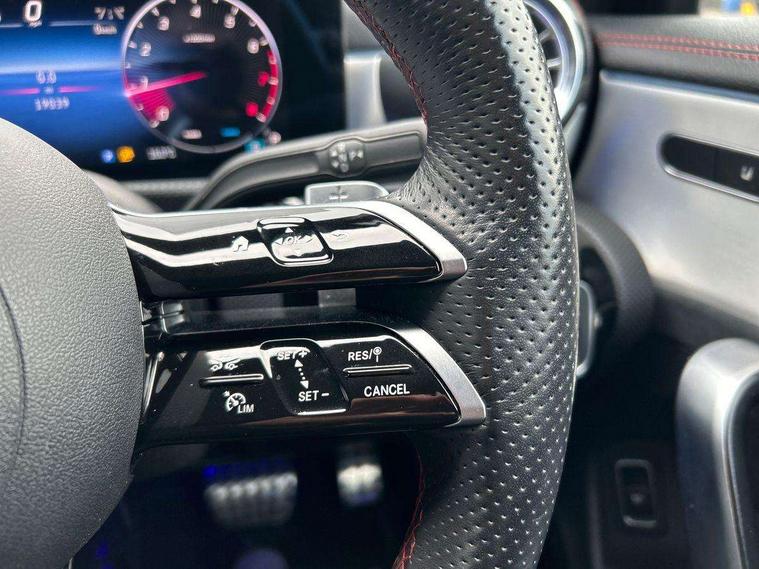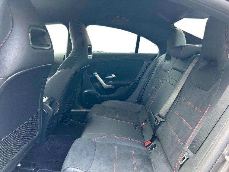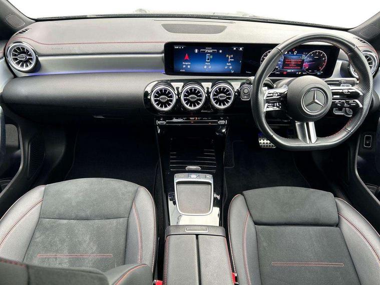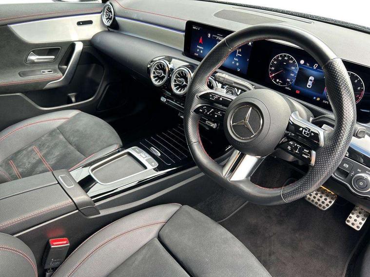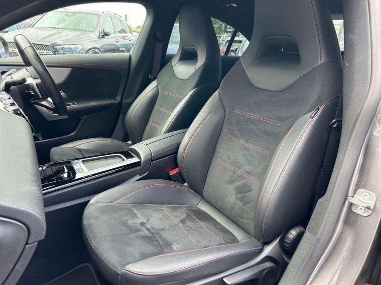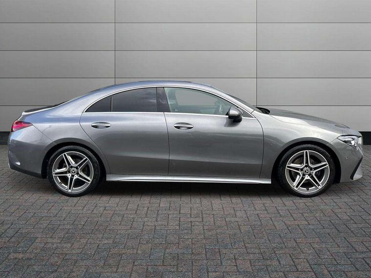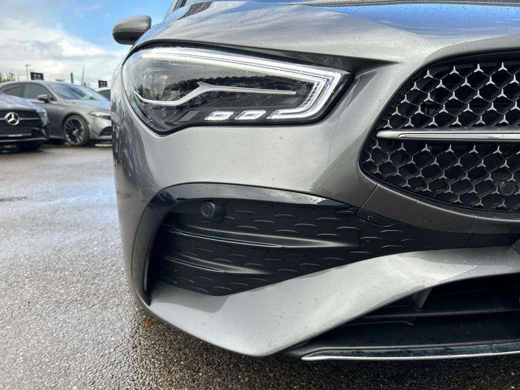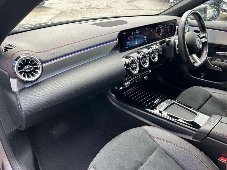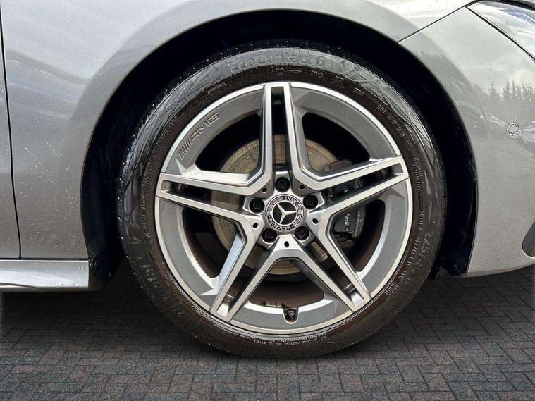10.25 inch Instrument display with digital cockpit, 10.25 inch touchscreen central media display, Active lane keeping assist, Attention assist - Monitors steering behaviour and long journey fatigue, Bluetooth connection, Car wash mode, Cruise control with limiter, Direct steer system, DYNAMIC SELECT with a choice of driving modes (ECO, Comfort, Sport and Individual), ECO start/stop function, Fluid level warning indicator for fuel, oil, coolant and washer fluid, Hard-disk navigation, Hey Mercedes Voice activation, Lamp failure indicator, Mercedes me connect including emergency call system, accident recovery, breakdown and maintenance management, Mercedes me remote services, Outside temperature gauge, Owners manual in English, Pre-installation of private car share, Radio aerial integrated into front and rear windshields, Service indicator (ASSYST), Smartphone integration with Apple CarPlay and Android auto, Speed limit assist, Trip computer in multifunction display with current consumption indicator, Wireless charging in the front centre console, Comfort suspension with ride height lowering, Rear axle multi-link, DAB digital radio tuner, MBUX multimedia system, Mercedes Benz sound system (100 W) with 6 speakers, Pre installation for Mercedes Benz Link, Adaptive brake lights, AMG body styling with AMG front apron and rear apron and visible exhaust tailpipe in chrome trim elements, Body colour door handles, Electric windows, Electrically adjustable and heated door mirrors with integrated LED indicators, Exhaust system with 2 Visible tailpipe trim elements and rear apron with trim in chrome, Headlamp assist automatic headlamp activation, Heated glass rear windscreen + timer control, High gloss aluminium beltline strips, High level LED third brake light, Interior mirror with black reading lamps and frameless, LED high performance headlamps with integrated LED daytime running lights and adaptive highbeam assist, LED tail lamp, Privacy glass with dark tinting on rear side windows and rear window, Radiator grille with Mercedes-Benz pattern in chrome with central Mercedes star and single louvre with chrome inserts, Rain sensing windscreen wipers with two sensitivity settings, Rear boot, Rear fog lamp, Rear side wing doors, Variable front intermittent wipers, Window line trim strip in high gloss aluminium, 3 seat bench in 2nd row, 3 twin spoke flattened multifunction steering wheel in nappa leather - horizontal twin spoke in high gloss black, vertical twin spoke in silver chrome, 4 way lumbar support, 40:20:40 split folding rear seat backrests, Air conditioning - One zone THERMATIC automatic climate control with automatically controlled air distribution, Air vents with surround in silver chrome, Artico man-made leather/Microcut microfibre upholstery, Automatic child seat recognition sensor, Black roof lining, Brushed stainless steel sports pedals with rubber studs, Floor mats with stitched AMG lettering, Front centre armrest with stowage, Galvanished gear shift paddles in silver chrome, Heated front seats, Interior lighting - 64 colour Ambient lighting, Luggage net on driver/front passenger seat backrest, Manually height and reach adjustable steering column, Rear head restraints, Single front passenger seat, Sport seats with fixed head restraints, Stowage compartment in centre console with retractable cover, Sunvisors with illuminated vanity mirrors, Twin front cupholders, Two outer rear seat isofix and top tether child seat fixing points, Keyless go comfort pack - CLA, Light and sight pack - CLA, Mirror pack - CLA, Parking pack with reversing camera - CLA, Seat comfort pack - CLA, USB package plus - CLA, Active bonnet pedestrain safety measure which detects an impact and raises bonnet by 65mm, Active brake assist includes forward collision warning system with autonomous braking, Adaptive brake assist with hold function and hill start assist, Anti lock braking system (ABS) with brake assist, Black seat belts, Bonnet with power domes, Brake calipers with Mercedes-Benz lettering, Brake pad wear warning indicator, Childproof locks manually operated for rear doors and electrically operated for rear power windows, Crash responsive emergency lighting, Driver and front passenger head and sidebags, Driver and front passenger windowbags, Drivers knee airbag, Dual stage driver and front passenger airbags, Electric parking brake, Electronic stability programme with acceleration skid control, ESP curve dynamic assist, Front and rear seatbelt reminder, Front passenger seat occupancy sensor, Perforated front brake discs, Three point rear seat belts, Tyre pressure monitoring system, Warning triangle and first aid kit, Alarm system with immobiliser and interior protection -Thatcham category 1, Guard 360 deg vehicle protection - tow away protection with visual, acoustic warning, interior monitoring, preinstallation for parking damage, Remote central locking and crash sensor with emergency opening function, Light aluminium with longitudinal grain interior trim, 18" AMG 5 twin spoke light alloy wheels painted in termolite grey with high sheen finish, Summer tyres, Tirefit tyre sealant kit,