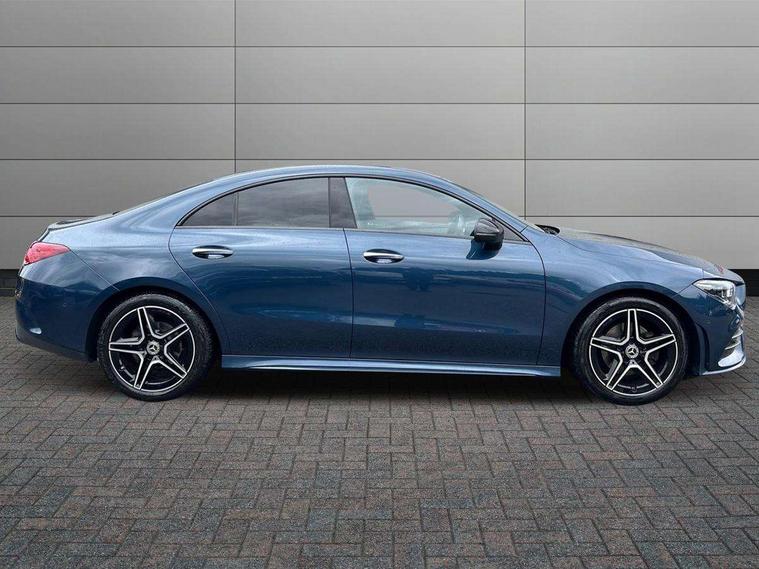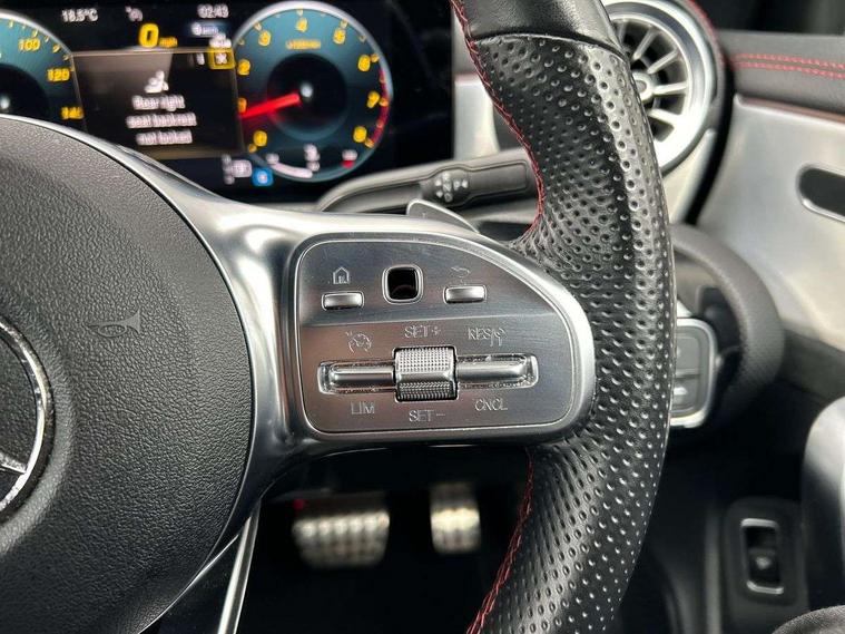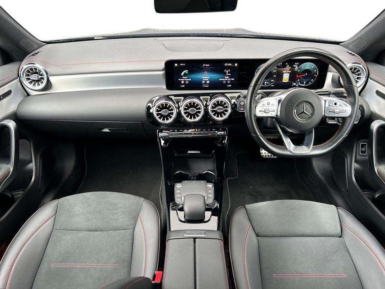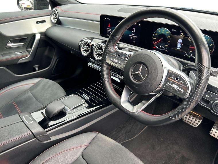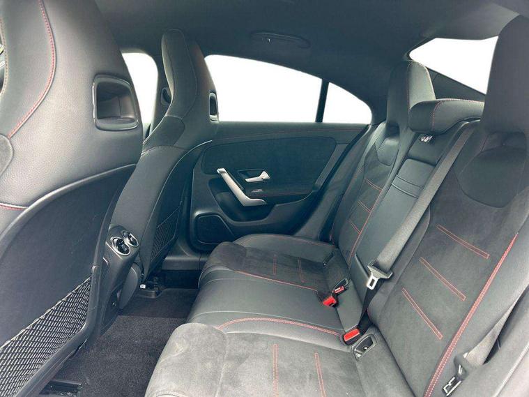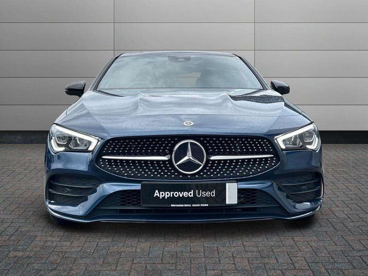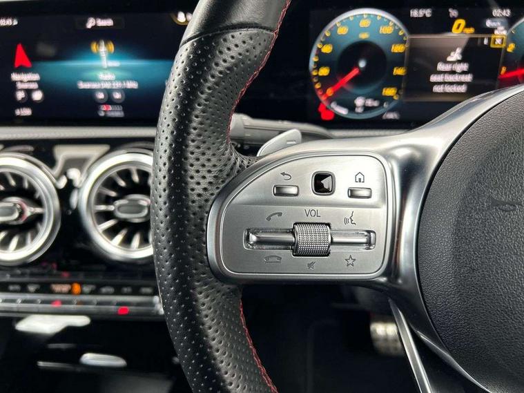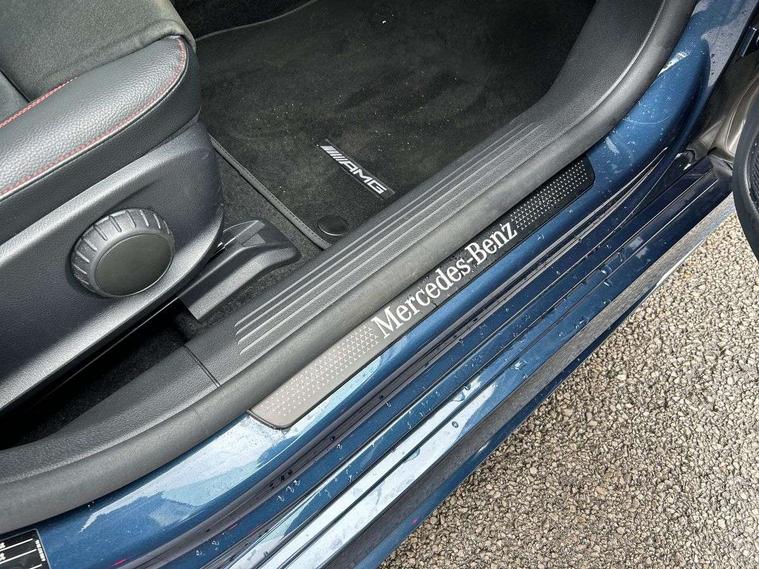 10.25 inch Instrument display with digital cockpit, 10.25 inch touchscreen central media display, Active lane keeping assist, Attention assist - Monitors steering behaviour and long journey fatigue, Bluetooth connection, Car wash mode, Cruise control with limiter, Direct steer system with speed sensitive power steering, DYNAMIC SELECT with a choice of driving modes (ECO, Comfort, Sport and Individual), ECO start/stop function, Fluid level warning indicator for fuel, oil, coolant and washer fluid, Hard-disk navigation, Hey Mercedes Voice activation, Lamp failure indicator, Mercedes me connect including emergency call system, accident recovery, breakdown and maintenance management, Mercedes me remote services, Outside temperature gauge, Owners manual and service booklet in English, Pre-installation of private car share, Preinstallation for Mercedes Benz link, Radio aerial integrated into front and rear windshields, Service indicator (ASSYST), Smartphone integration with Apple CarPlay and Android auto, Speed limit assist, Trip computer in multifunction display with current consumption indicator, Lowered comfort suspension, Rear axle multi-link, DAB digital radio tuner, MBUX multimedia system, Mid-range sound system, USB (type C) ports (2) in stowage compartment and 1 in front of centre console, Adaptive brake lights, AMG body styling with AMG front apron and rear apron and visible exhaust tailpipe in chrome trim elements, AMG bodystyling side skirts, Body colour bumpers, Body colour door handles, Chrome beltline strips, Diamond radiator grille pins in chrome, Electric windows, Electrically adjustable and heated door mirrors with integrated LED indicators, Exhaust system with 2 Visible tailpipe trim elements and rear apron with trim in chrome, Headlamp assist automatic headlamp activation, Heated glass rear windscreen + timer control, High level LED third brake light, Interior mirror with black reading lamps and frameless, LED high performance headlamps with integrated LED daytime running lights, LED tail lamp, Privacy glass with dark tinting on rear side windows and rear window, Rain sensing windscreen wipers with two sensitivity settings, Rear boot, Rear fog lamp, Rear side wing doors, Variable front intermittent wipers, Window line trim strip in chrome, 3 seat bench in 2nd row, 3 spoke flattened bottom nappa leather multifunction steering wheel with perforated leather in grip area, 40:20:40 split folding rear seat backrests, Air conditioning - Two zone thermotronic luxury automatic climate control with display, Air vents with surround in silver chrome, Artico man-made leather upholstery, Automatic child seat recognition sensor, Black roof lining, Brushed stainless steel sports pedals with rubber studs, Floor mats with stitched AMG lettering, Front centre armrest with stowage, Galvanished gear shift paddles on steering wheel, Heated front seats, Illuminated front door sills with changeable cover, Illuminated glove compartment stowage, Interior lighting - 64 colour Ambient lighting, Luggage net on driver/front passenger seat backrest, Manually adjustable front seats, Manually height and reach adjustable steering column, Rear armrest with two integral cup holders for drinks, Rear head restraints, Single front passenger seat, Sport seats with fixed head restraints, Stowage compartment in centre console with retractable cover, Sunvisors with illuminated vanity mirrors, Touchpad on center console, Twin front cupholders, Two outer rear seat isofix and top tether child seat fixing points, Keyless go comfort pack - CLA, Light and sight pack - CLA, Mirror pack - CLA, Night package - CLA, Parking package - CLA, Seat comfort pack - CLA, Active bonnet pedestrain safety measure which detects an impact and raises bonnet by 65mm, Active brake assist includes forward collision warning system with autonomous braking, Adaptive brake assist with hold function and hill start assist, Anti lock braking system (ABS) with brake assist, Black seat belts, Bonnet with power domes, Brake pad wear warning indicator, Childproof locks manually operated for rear doors and electrically operated for rear power windows, Crash responsive emergency lighting, Driver and front passenger head and sidebags, Driver and front passenger windowbags, Drivers knee airbag, Dual stage driver and front passenger airbags, Electric parking brake, Electronic stability programme with acceleration skid control, ESP curve dynamic assist, Front and rear seatbelt reminder, Front passenger seat occupancy sensor, Three point rear seat belts, Tyre pressure monitoring system, Warning triangle and first aid kit, Guard 360 degree guard vehicle protection system with immobiliser and interior protection, Remote central locking and crash sensor with emergency opening function, Light aluminium with longitudinal grain interior trim, 18" AMG 5 twin spoke light alloy wheels painted in black with high sheen finish, Summer tyres, Tirefit tyre sealant kit,