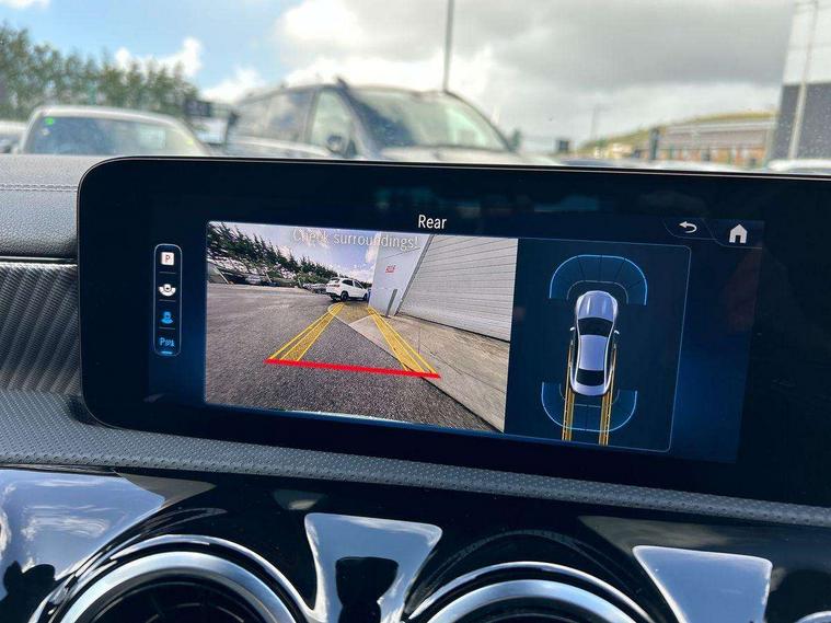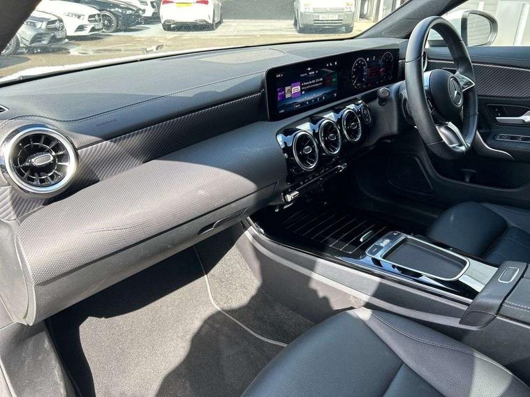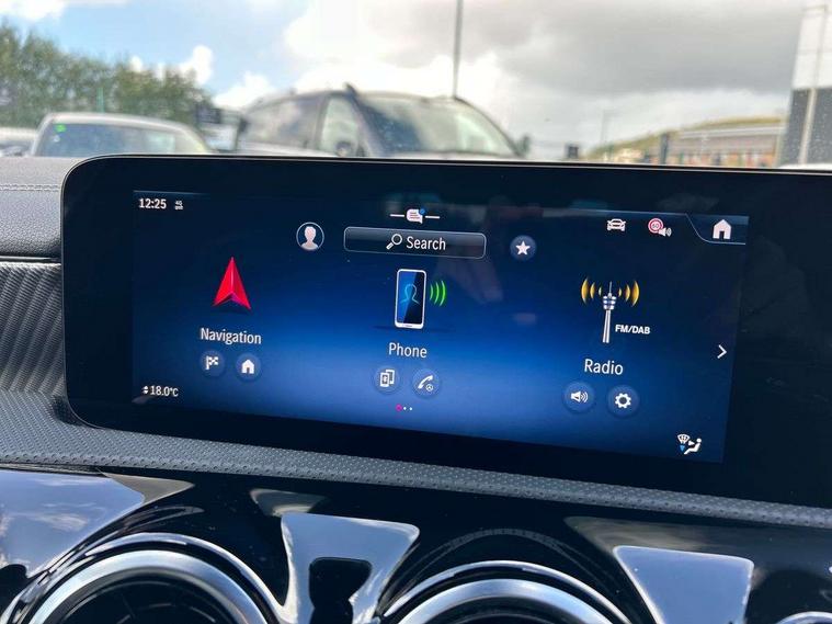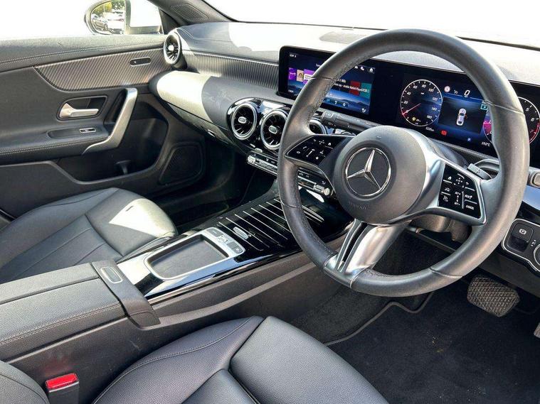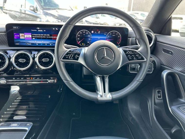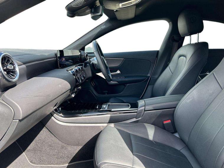 10.25 inch Instrument display with digital cockpit, 10.25 inch touchscreen central media display, Active lane keeping assist, Attention assist - Monitors steering behaviour and long journey fatigue, Bluetooth connection, Car wash mode, Cruise control with limiter, Direct steer system, DYNAMIC SELECT with a choice of driving modes (ECO, Comfort, Sport and Individual), ECO start/stop function, Fluid level warning indicator for fuel, oil, coolant and washer fluid, Hard-disk navigation, Hey Mercedes Voice activation, Lamp failure indicator, Mercedes me connect including emergency call system, accident recovery, breakdown and maintenance management, Mercedes me remote services, Outside temperature gauge, Owners manual in English, Pre-installation of private car share, Radio aerial integrated into front and rear windshields, Service indicator (ASSYST), Smartphone integration with Apple CarPlay and Android auto, Speed limit assist, Trip computer in multifunction display with current consumption indicator, Comfort suspension, Rear axle multi-link, DAB digital radio tuner, MBUX multimedia system, Mercedes Benz sound system (100 W) with 6 speakers, Pre installation for Mercedes Benz Link, Adaptive brake lights, Body colour door handles (Chrome insert with Keyless entry), Chrome beltline strips, Electric windows, Electrically adjustable and heated door mirrors with integrated LED indicators, Exhaust system with 2 Visible tailpipe trim elements and rear apron with trim in chrome, Headlamp assist automatic headlamp activation, Heated glass rear windscreen + timer control, High level LED third brake light, Interior mirror with black reading lamps and frameless, LED high performance headlamps with integrated LED daytime running lights and adaptive highbeam assist, LED tail lamp, Privacy glass with dark tinting on rear side windows and rear window, Progressive body-styling - Front apron with trim strip in chrome, visible tailpipe trim elements and rear apron with trim strip in chrome, Radiator grille with Mercedes-Benz pattern in high-gloss black and central Mercedes star, single louvre in matt grey with chrome inserts, Rain sensing windscreen wipers with two sensitivity settings, Rear boot, Rear fog lamp, Rear side wing doors, Variable front intermittent wipers, Window line trim strip in chrome, 3 seat bench in 2nd row, 3 spoke ARTICO man made leather multi function sports steering wheel with black grained gearshift paddles, oeration via touch control panels, 4 way lumbar support, 40:20:40 split folding rear seat backrests, Air conditioning - One zone THERMATIC automatic climate control with automatically controlled air distribution, Air vents with surround in silver chrome, Artico man-made leather upholstery, Automatic child seat recognition sensor, Black roof lining, Brushed stainless steel sports pedals with rubber studs, Comfort seats, Fluorescent jacket, Front centre armrest with stowage, Front head restraints, Heated front seats, Luggage net on driver/front passenger seat backrest, Manually height and reach adjustable steering column, Rear head restraints, Single front passenger seat, Stowage compartment in centre console with retractable cover, Sunvisors with illuminated vanity mirrors, Twin front cupholders, Two outer rear seat isofix and top tether child seat fixing points, Velour floor mats, Light and sight pack - CLA, Mirror pack - CLA, Parking pack with reversing camera - CLA, Seat comfort pack - CLA, USB package plus - CLA, Active bonnet pedestrain safety measure which detects an impact and raises bonnet by 65mm, Active brake assist includes forward collision warning system with autonomous braking, Adaptive brake assist with hold function and hill start assist, Anti lock braking system (ABS) with brake assist, Black seat belts, Bonnet with power domes, Brake pad wear warning indicator, Childproof locks manually operated for rear doors and electrically operated for rear power windows, Crash responsive emergency lighting, Driver and front passenger head and sidebags, Driver and front passenger windowbags, Drivers knee airbag, Dual stage driver and front passenger airbags, Electric parking brake, Electronic stability programme with acceleration skid control, ESP curve dynamic assist, Front and rear seatbelt reminder, Front passenger seat occupancy sensor, Three point rear seat belts, Tyre pressure monitoring system, Warning triangle and first aid kit, Alarm system with immobiliser and interior protection -Thatcham category 1, Guard 360 deg vehicle protection - tow away protection with visual, acoustic warning, interior monitoring, preinstallation for parking damage, Remote central locking and crash sensor with emergency opening function, Dark carbon fibre look trim, 18" multi-spoke himalayas grey painted light alloy wheels with high sheen rim finish, Summer tyres, Tirefit tyre sealant kit,