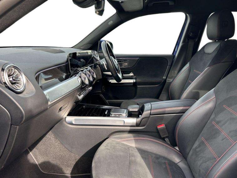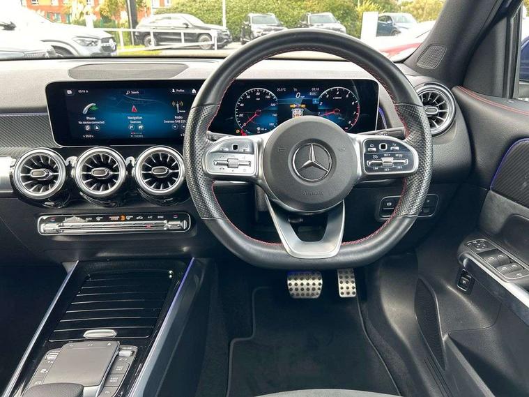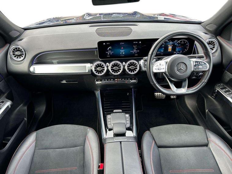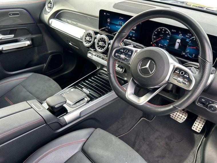 10.25" Digital instrument cluster display screen, 10.25" Digital media screen display, Active lane keeping assist, Attention assist - Monitors steering behaviour and long journey fatigue, Brake pad wear indicator warning light, Car wash mode, Cruise control with limiter, DYNAMIC SELECT with a choice of driving modes (ECO, Comfort, Sport and Individual), ECO start/stop function, Fluid level warning indicator for fuel, oil, coolant and washer fluid, Hard disk navigation, Hey Mercedes Voice activation, Lamp failure indicator, Mercedes me connect including emergency call system, accident recovery, breakdown and maintenance management, Mercedes me remote services, Outside temperature gauge, Owners manual and service booklet in English, Parameter steering system, Pre-installation of private car share, Radio aerial integrated into front and rear windshields, Service indicator (ASSYST), Smartphone integration with Apple CarPlay and Android auto, Speed limit assist, Trip computer in multifunction display with current consumption indicator, Comfort suspension, Rear axle multi-link, DAB digital radio tuner, MBUX multimedia system with DAB digital radio and touchpad including satellite navigation, Mercedes Benz sound system (225 W) with 10 speakers, 1 central speaker, speakers on doors, a tweeter on door, one sub woofer + boost amplifier, Pre installation for Mercedes Benz Link, USB (type C) port in front stowage compartment, USB (type C) ports (2) in stowage compartment, Adaptive brake lights, Aerial for GPS, AMG bodystyling door panels black grained with chrome plated inserts, AMG bodystyling front apron with chrome splitter, AMG bodystyling rear apron with diffuser optics and chrome trim element, AMG specific front and rear bumper including underride guard in high gloss chrome, Beltline strips and weather strip in chrome, Body coloured door handles with chrome insert for keyless entry, Body coloured door mirror caps, Electric adjustable and heated door mirrors with integrated LED side indicators, Exhaust system with dual flow exhaust pipes (non-functional), Front and rear electric windows, Headlamp assist automatic headlamp activation, Heated glass rear windscreen + timer control, High level LED third brake light, Interior mirror with black reading lamps and frameless, LED high performance headlamps with integrated LED daytime running lights, LED tail lamp, Polished aluminium roof rails, Privacy glass with dark tinting on rear side windows and rear window, Radiator grille with pins in chrome and single louvre with chrome insert, Rain sensor windscreen wipers, Rear fog lamp, Rear side wing doors, Rear wing door, Rear wiper, Two visible tailpipe trim elements exhaust, 3 seat bench in 2nd row, 3 spoke multifunction sport steering wheel in nappa leather, Air conditioning - Two zone thermotronic luxury automatic climate control with display, AMG sports pedals with brushed stainless steel surfaces and black rubber studs, Artico man-made leather/Microfibre Dinamica upholstery with red contrast stitching, Automatic child seat recognition sensor, Black floor mats with AMG lettering, Black roof lining, Fore/aft adjustment rear seats, Freight packaging with tie-down hooks, Front centre armrest with stowage, Front door sills with illuminated changeable cover, Front passenger grab handle with brushed side silver chrome, Front sports seats with adjustable head restraints, Galvanished gear shift paddles on steering wheel, Heated front seats, Height/reach adjustable steering column, Interior lighting - 64 colour Ambient lighting, Luggage net on driver/front passenger seat backrest, Rear armrest with two integral cup holders for drinks, Rear seat easy entry, Single front passenger seat, Stowage compartment in centre console, Stowage compartment with retractable cover, Third row of seats for two people on rear seat, Touchpad on center console, Twin front cup holders, Two outer rear seat isofix and top tether child seat fixing points, Interior lighting with light and sight pack - GLB, Keyless go pack - GLB, Mirror pack - GLB, Parking pack - GLB, Seat comfort package - GLB, 3 rear 3 point seatbelts, Active bonnet pedestrain safety measure which detects an impact and raises bonnet by 65mm, Active brake assist includes forward collision warning system with autonomous braking, Adaptive brake assist with hold function and hill start assist, Airbags - kneebag for driver, Anti-lock braking system (ABS) with brake assist, Childproof locks manually operated for rear doors and electrically operated for rear power windows, Crash responsive emergency lighting, Curve dynamic assist, Driver and front passenger head and sidebags, Driver and front passenger windowbags, Dual stage driver and front passenger airbags, Electronic parking brake, Electronic stability programme with acceleration skid control, Front and rear seatbelt reminder, Front brake callipers with Mercedes Benz lettering, Front passenger seat occupancy sensor, Tyre pressure monitoring system, Warning triangle and first aid kit, Remote central locking and crash sensor with emergency opening function, Thatcham category 1 alarm system with immobiliser and interior protection, Urban guard vehicle protection - Anti theft alarm system, tow away protection with visual and acoustic warning and alarm siren, Vehicle key with decorative surround in chrome, Black air vents with chrome surround, Carbon structure trim, 19" AMG 5 twin spoke light alloy wheels painted in tantalite grey with high sheen finish, Summer tyres, Tirefit tyre sealant kit,