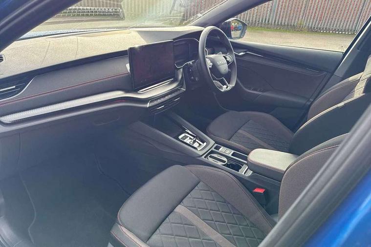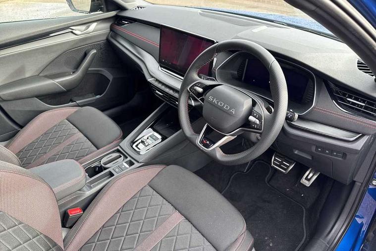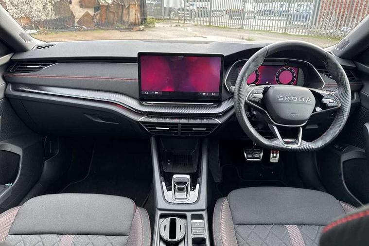 1x USB Typc C port in rear view mirror, 4x USB Type C ports - 2x in front centre console and 2x in rear (45W), Drive mode selection, Driver fatigue sensor, eCall emergency system, Electrically operated boot with virtual pedal, Front assist system, Progressive dynamic steering, Traffic sign recognition, Turn Assist, Virtual Cockpit - 10.25" digital display, Voice control system, Wireless charging (15W) with cooling function, Wireless SmartLink for Apple CarPlay and Android Auto, Electronically controlled limited slip differential, vRS suspension, 13" touchscreen display with navigation, DAB Digital radio, Aero front windscreen wipers with intermittent function, Auto dimming rear view mirror, Black sport exhaust pipes, Body colour bumpers, Body colour door handles, Electric front and rear windows, Exterior gloss black sports styling including front grille, window surrounds, door mirrors and badging, Gloss black diffuser, Gloss black spoiler, Heated rear windscreen, High beam control, High level third brake light, Ice scraper in fuel cap, LED daytime running lights, Logo projection in front doors, Rain and light sensors, Rear fog light on one side, Rear privacy glass, Rear side wing doors, Unique vRS bumpers and exterior styling, 12 volt socket in boot, 3 rear headrests, 3 seat bench in 2nd row, 4 foldable roof handles, Aluminium pedals, Front head restraints, Front sport seats, Heated front seats, Illuminated glovebox, Interior door handles in dark chrome, Jumbo Box storage, Luggage compartment lighting x2 lights, Mechanical rear seat release from boot, Parcel shelf - folding, Single front passenger seat, Steering wheel in black leather with black stitching, Storage compartments in left and right of boot, Sun visors with mirrors, Sunglasses storage, Ticket holder, Umbrella in door panel, Unsplit rear bench seat, split folding backrest with centre armrest with cupholder, Waste bin in door panel, Comfort package - Octavia, Family package - Octavia, Light and view package plus - Octavia, vRS Design Selection pack - Octavia, 3x3 point rear seat belts, Alarm with interior monitoring, tilt sensor and back up horn, Curtain airbags and front side airbags, Driver and front passenger airbags, Drivers knee airbag, Electronic parking brake, ESC including ABS, EBV, MSR, ASR, EDS, HBA, DSR, Front central airbag, Hill hold assist, ISOFIX on front passenger seat and outer rear seats, Passenger airbag deactivate switch, Red brake calipers, Three point seat belts in front and rear, Two tone horn, Tyre pressure monitor, Visual and acoustic seat belt reminder, Warning reflectors in front door, Anti-theft wheel bolts, Keyless start/stop, Remote central locking, Gloss black air vent surrounds, 19" Elias anthracite alloy wheels,