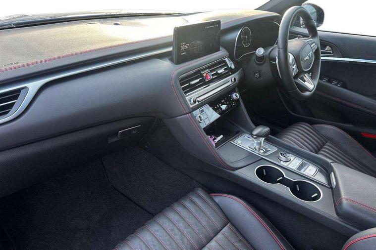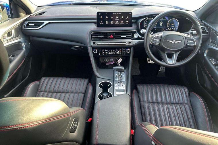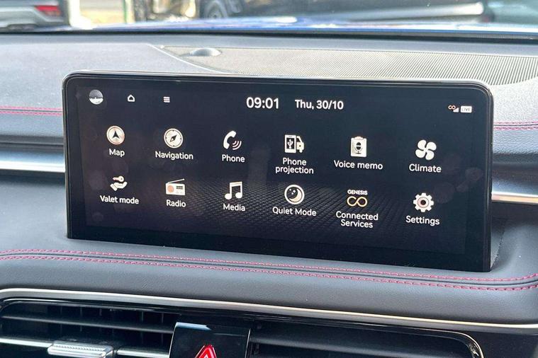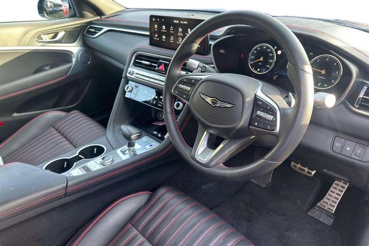 10.25" navi screen + DAB radio + phone mirroring + genesis connected, 8" Dashboard cluster TFT display, Blind spot collision avoidance assist rear (BCA-R), Drive mode integrated control, eCall emergency call system, Electric power steering, Electric rear tailgate opening, Electronic chromatic mirror with HOMELINK, Forward Collision Avoidance Assist Junction Turning (FCAJX), Front parking sensors, Highway Driving Assist (HDA), Intelligent speed limit assist (ISLA), ISG with AMS 2, Lane Following Assist (LFA), Lane keeping assist (LKA), Lighting backup guidelines, Low washer fluid warning, Manual speed limit assist (MSLA), Rack and pinion mounted motor driver power steering (MDPS), Rear parking sensors without button, Rear view camera with dynamic guidelines on screen, SCC smart cruise control with stop and start, Trip computer, Wireless phone charger, Battery saver, Electronically controlled suspension, Limited slip differential, Shift by wire - E shift, 1x USB front, Steering wheel audio remote control, Active hood system, Aero blade wiper, Auto up/down windows, Automatic headlights with dusk sensor, Automatic window defogger, Beltline in satin finish, Black painted single rear muffler and chrome coating, Body coloured bumpers, Body coloured door mirrors, Body coloured outside door handles, Body coloured side sills, Dual front LED low and high projection headlamps with high beam assist, Electrochromic inside rear view mirror, Electrochromic outside rear view mirrors, Insulated hood, Laminated front side glass, LED daytime running lights, LED position lamp, LED rear combination lamp, LED rear fog lamp, LED rear stop light, Outside electrical folding rear mirror, Outside rear mirrors electrical adjustment + heated, Puddle lamps with logo, Rain sensor, Rear door glass + backlite glass (solar + privacy), Rear side wing doors, Rear spoiler with high mounted stop lamp, Rear wiper, Side repeater lamp in exterior mirrors, Sport appearance, Tow hitch receiver, Windshield acoustic film, Windshield glass + front door glass (solar with sun blind + solar), 2nd row heating floor output, 2nd row remote folding seats, 3 seat bench in 2nd row, 4 way manual headrest adjustment for driver and passenger, 4 way mechanical electric lumbar support for driver, 40:20:40 split folding rear seats, Air purification (PM sensor), Backlight flash heated + timer, Central armrest, Console storage box, Console ventilation duct, Drink holder at centre armrest, Driver and passenger electric seat adjustment, Driver and passenger illuminated LED sunvisor, Driver and passenger seat back panel with pocket, Driver and passenger sliding sunvisor, Driver and passenger vanity mirrors, Driver's seat electric height adjustment, Floor mounted pedal, Foot lamp in front, Front air condition with dual zone adjustment, Front and rear courtesy lamp reflector, Front cup holders, Front passenger seat, Front power outlet, Heated front seats, Heated steering wheel, Height adjustable passenger seat, Ion plated interior door handle, Leather gear knob, LED luggage compartment lighting, Luggage net, Luggage net with hooks, Metallic pedals, Overhead console LED lamp with sunglass case & mood lamp, Paddle shifter, Perforated leather with metal grain steering wheel, Premium charcoal cabin filter, PTC heater, Room LED lamp in 2nd row, Up/down rear headrest adjustment, USB charger console inside (1port), USB rear charger console outside (2ports), 3x3 point rear seat belts, ABS + ESC + HAC + MCB (Multi Collision Brake), Black brake calipers, Brembo premium brakes, Driver and passenger depowered airbag, Driver knee airbag, Dual shell horn, Electronic parking brake with auto hold, Forward collision avoidance system (car/pedestrian/bicycle), Front brake ventilated disc 320mm, Front center side airbags, Front thorax and pelvis + rear thorax + side curtain (ff/rr) airbag, Rear brake ventilated disc 314mm, Rear door child safety locks, Rear seat alert without sensors, Tyre pressure monitoring system, Upper and lower rear Isofix child anchor, Central door lock driver's control, Immobilizer + deadlock, Smart key/button start, Aluminum sport dark stripe pattern, Leatherette dashboard, Michelin tyres,