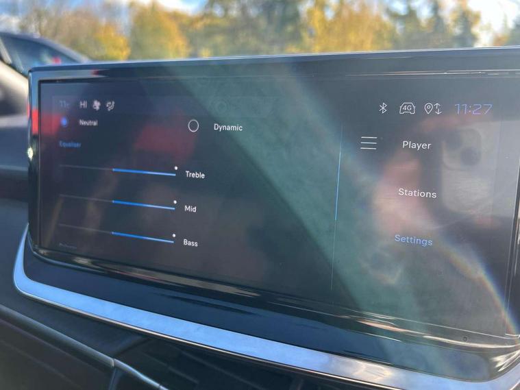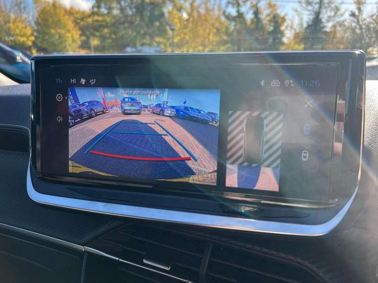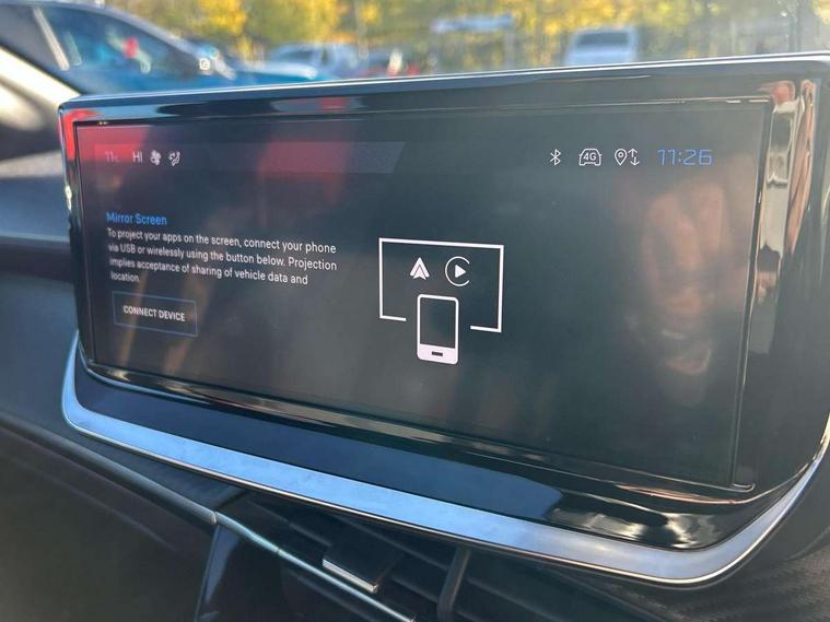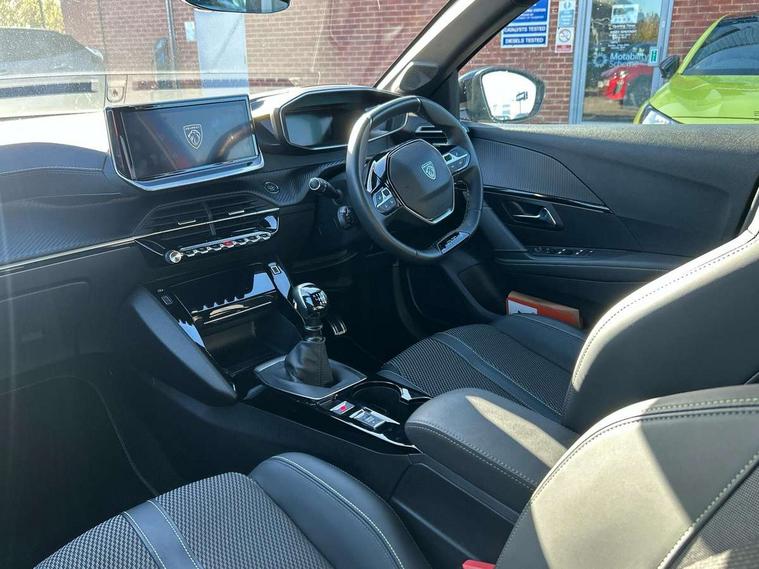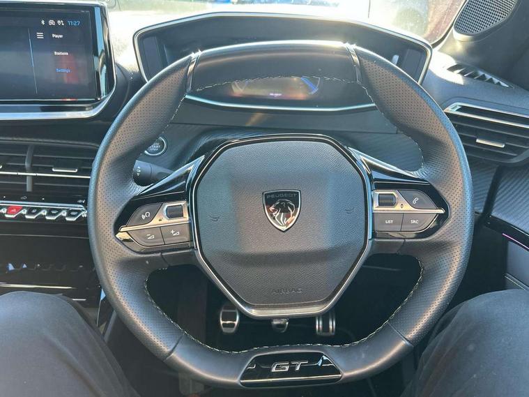 Bluetooth telephone facility, Drive mode select (Eco/Normal/Sport), Driver attention warning, Emergency call service, Exterior temperature indicator with ice warning, Front and rear parking sensors, Multi function trip computer, PEUGEOT i-Cockpit with 10" configurable 3D colour head up instrument panel, PEUGEOT i-Cockpit with 10" HD capacitive colour touchscreen, PEUGEOT i-Cockpit with compact steering wheel, PEUGEOT SOS and assistance, Push button start, Smart phone docking station, Smartphone 15W wireless charging plate, Speed limit recognition and recommendation, Start/stop system, Wireless mirror screen with apple carplay and android auto, 6 Speakers - 2 tweeters and 4 door speakers, DAB Digital radio, Peugeot i-connect infotainment system - 10in HD touchscreen, AM/FM/DAB digital radio, Wifi Mirroring, Bluetooth & 2 USB connection, USB-A socket (x1) and USB-C socket (x1) - rear, USB-C data and charge socket and USB-C charge socket in front, Voice recognition for radio, navigation and telephony features, 2 X Rear number plate lights, Acoustic windscreen, Antenna - Gloss Black 'fin' design, Automatic hazard light activation upon heavy brake application, Body coloured exterior door handles, Dark tinted rear side and tailgate windows, Diamond black rear spoiler (roof), Door sills protection with PEUGEOT signature lettering, Electric heated and power folding door mirrors with courtesy floor lighting, Frameless electrochrome interior rear view mirror, Full LED headlights with automatic height adjustment and PEUGEOT smartbeam assist, Gloss black B pillar, Gloss black door mirror shells, Gloss black front bumper grille with body colour accents, Gloss black rear cluster connecting strip, Gloss black wheel arch extensions, Gloss black window weatherstrips, GT model designation badging on C pillar, GT model designation badging on tailgate, Headlights left on audible warning, LED 3 claw horizontal rear lighting signature (with daylight function) and LED brake lights, indicators and reversing lights, LED daytime running lights with distinctive 3 claw signature, LED front indicators, LED third brake light, Model designation badges front and rear in basalt grey, One touch electric front/rear windows with pinch protection, Rear bumper with gloss black finish, Rear reversing lights, Rear side wing doors, Rear windscreen wiper triggered automatically in reverse gear, Roof spoiler, Tailgate with heated rear windscreen and wiper blade, Variable front intermittent wipers, 1/3 to 2/3 split folding rear seats, 12V socket, 3 seat bench in 2nd row, 8 Colour personalisable ambient lighting, Adamite green contrast stitching to front and rear armrest, front centre console, dashboard facia, Aluminium pedals, Automatic mono zone climate control air condition, Boot lighting, Driver and front passenger dynamic seats, Driver and front passenger seat manual adjustment in longitudinal and back rest angle, Driver and front passenger seat mechanical height adjustment, Driver and passenger sun visors, front footwells and central storage with LED lighting, Electric power steering with reach and rake adjustable steering column, Front centre armrest with storage compartment, Front LED interior light, front LED reading spotlights(x2), rear LED reading spotlight(x2), Gear shift indicator, High centre console with 2 cup holders, Luxury carpet mats, Map pockets on the backs of the front seats, Multi function full grain perforated leather steering wheel with adamite green stitch detail and 'GT' emblem, Passenger seat height adjuster, Piano keys gloss black plated toggle switches to access main functions of the vehicle, Rear centre headrest, Roof lining - Mistral black, Seatbelt unfastened on the move audible and visual alert for front and rear seats, Single front passenger seat, Visibility pack - 208, 2x Isofix child seat fitting on outer rear seats, 3 rear 3 point seatbelts, ABS (Anti-lock Braking System) with EBD (Electronic Brakeforce Distribution) and EBA (Emergency Braking Assistance), Active safety brake with night function/cyclists/pedestrians, Child locking functionality on rear doors, Driver and front passenger airbag with passenger airbag deactivation, Driver/front passenger side airbags, Electric parking brake, ESP with Hill Assist, Front and rear curtain airbags, Front and rear disc brakes, Front optimised safety headrests and 3 x rear retractable headrests with height adjustable, Front three point retractable seatbelts with force limiters, Remote plip(x2) for locking, unlocking, includes emergency key blade, Tyre pressure monitoring system, Acoustic vehicle alert system (AVAS), Alarm - Connected, volumetric , perimetric, anti lift sensor, Automatic door locking when moving off, Deadlock, Electronic code immobiliser, Peugeot Open and Go System, Remote central locking, Carbon effect Dashboard, front and rear door panel finish, 17" Yanaka two tone diamond cut alloy wheels wheels includes gloss black inserts, Space saver spare wheel,
