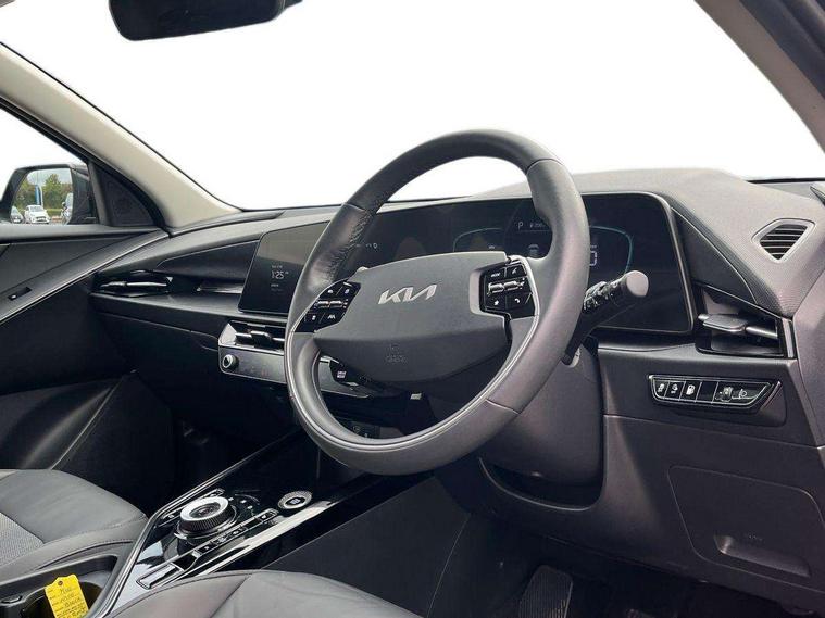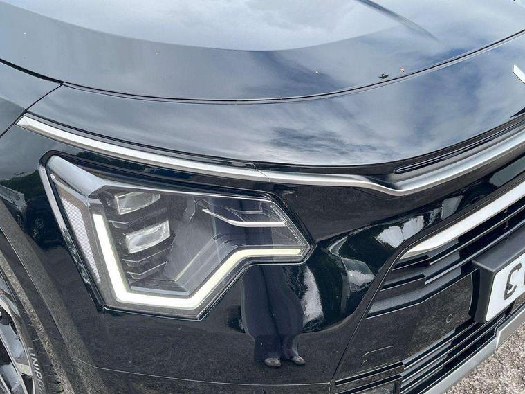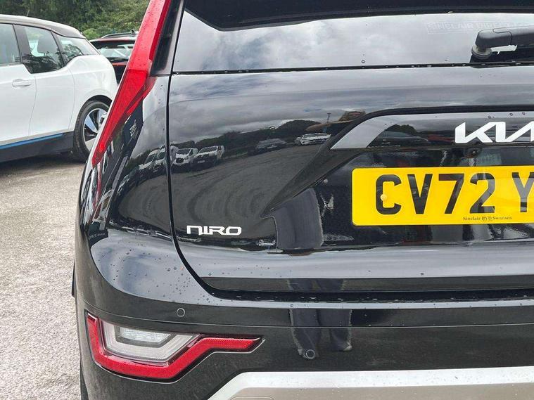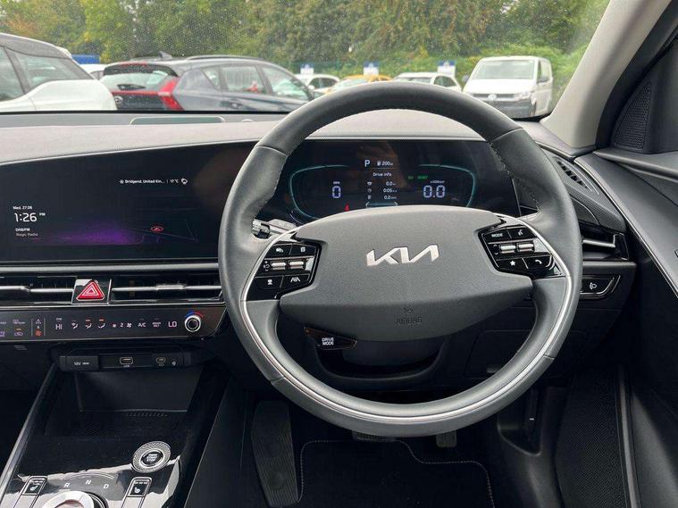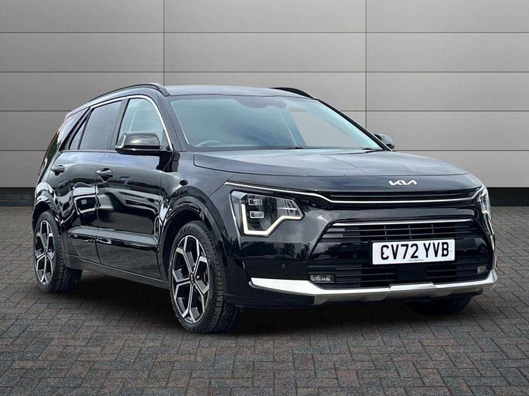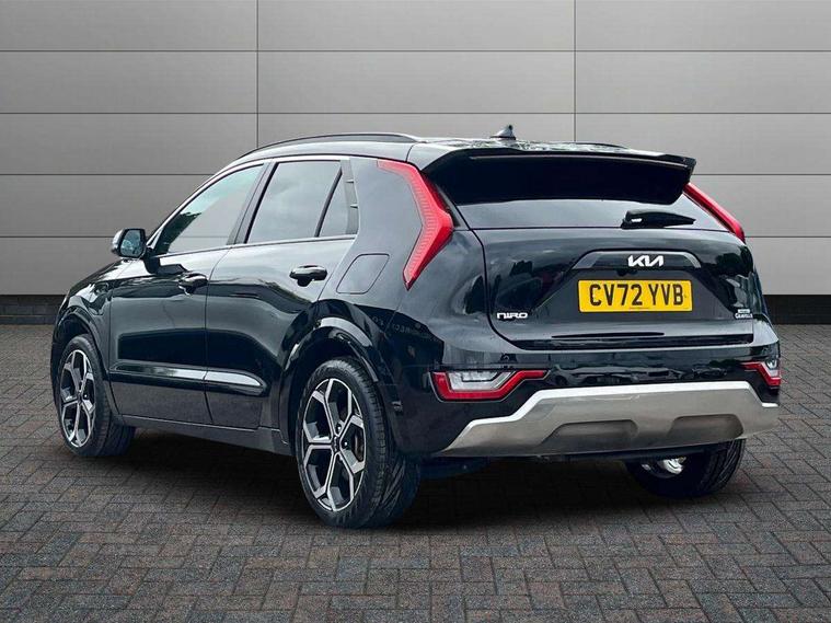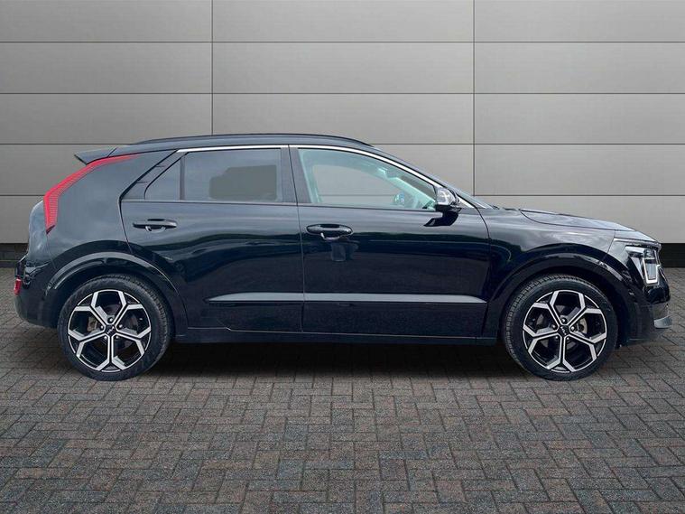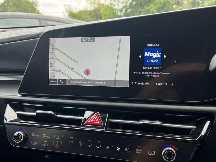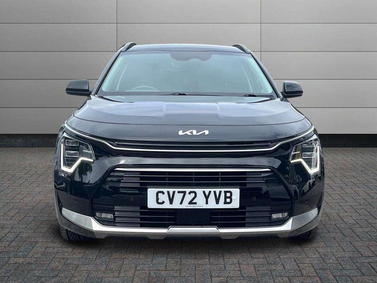 10.25" touchscreen satellite navigation, 4.2" supervision colour cluster display, Adaptive smart cruise control function (SCC) with stop and go, Apple car play/Android Auto with voice control, Blind spot collision avoidance assist, Drive mode select (Eco, sport), E-call, Emergency stop signalling system, Forward Collision-Avoidance Assist (FCA) 1.5 - City/Pedestrian/Cyclist/Junction turning, Front parking sensors, Highway Driving Assist (HDA), Kia Connect (UVO), Lane Following Assist (LFA), Lane keep assist, Motor driven power steering, Rear cross traffic alert, Rear parking sensors, Reversing camera with dynamic guide lines, Safe exit warning (SEW), Speed limit assist, Tailgate, Trip computer with distance/fuel consumption/average speed, Wireless Smartphone charger, 220v AC Inverter, 'Shark fin' mobile antenna, 2 type C USB ports on front seats, 2 USB ports in centre console including 1 type C, 6 speakers, Bluetooth with music streaming, DAB Digital radio, Steering wheel mounted controls, Acoustic windshield, All round electric windows with drivers and front passenger auto up/down and safety function, Auto dimming rear view mirror, Automatic defog system, Automatic headlight control system, Black grille with chrome surround, Body colour bumpers, Body colour exterior door handles, Dual LED headlights (low and high projection), Electric heated door mirrors, Electrically folding door mirrors, Front and rear chrome skid plates, Front fog lights, Heated rear window with timer, High gloss black cladding, High gloss black door mirrors, LED daytime running lights, LED rear combination lights, LED third brake light, Privacy glass - Rear windows and tailgate, Rain sensing front wipers, Rear fog lights, Rear side wing doors, Rear spoiler, Rear wiper, Roof rails, Solar glass windscreen, Welcome and follow-me home light functionality, Windscreen Washer Level Warning, 12v socket in front, 12V socket in luggage compartment, 3 seat bench in 2nd row, 60/40 split/folding 2nd row of seats, All-round height adjustable headrests, Artificial leather centre console storage box, Artificial leather steering wheel, Bulb overhead console, 2nd row and luggage lamp, Centre console cupholder, Chrome coating interior door handles, Cloth / Artificial leather upholstery, Driver's power adjustable seat, Driver/passenger sunvisors with illuminated vanity mirrors, Drivers seat power lumbar support, Dual zone automatic air conditioning, Front and rear door storage, Heated front seats, Heated steering wheel, Illuminated glovebox, Interior door lock/unlock function, ISOFIX Child seat top tethers and anchor fixings, Luggage area load cover, Luggage board, Paddle shifts, Passenger seat height adjuster, Rear armrest, Seatback pocket - driver, Seatback pocket - front passenger, Shift by wire SBW, Single front passenger seat, Tilt/telescopic adjustable steering wheel, Ventiliation ducts to rear compartment, Towing pack - Niro, 3 point seatbelts on all seats, ABS, Automatic unlocking of doors in case of impact, Centre side front airbags, Curtain and side airbags, Drivers knee airbag, Dual shell horn, Electric parking brake with auto hold function, Electronic stability control, Front passenger airbag deactivation, Height adjustable front seatbelts, Hill start assist control (HAC), Manual rear child locks, Rear seat alert system, Traction control, Tyre pressure monitoring system, Alarm system and engine immobiliser, Deadlocks, Engine Start/Stop Button with Smart Entry System, Locking wheel nuts, Visible vehicle identification number, Warranty - 7 Years/ 100, 000 miles, Centre fascia chopped carbon, 18" Alloy wheels, Tyre mobility kit,