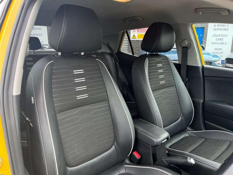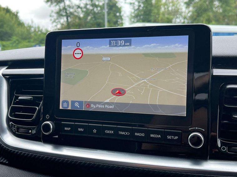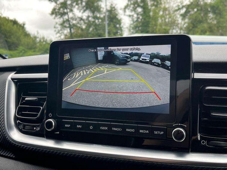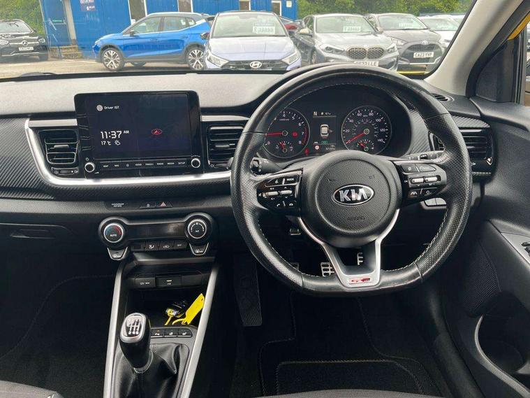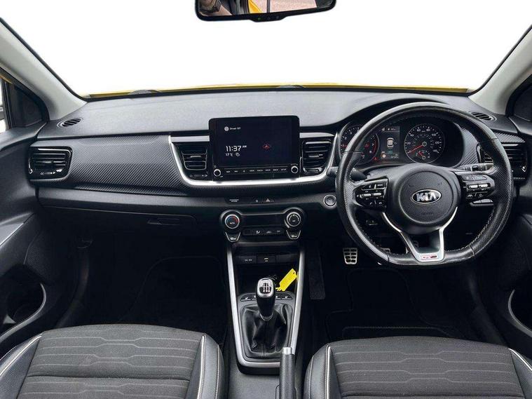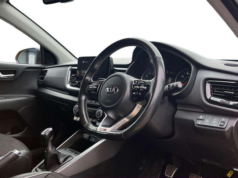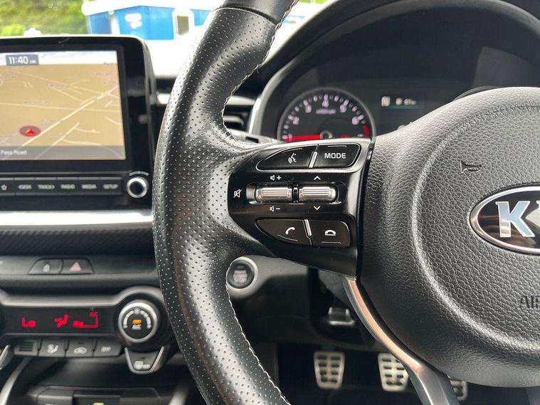 4.2" supervision colour cluster display, 8" Touchscreen navigation with telematics, Android auto with voice control, Apple car play with voice control, Blind spot collision warning, Cruise control + speed limiter, Drive mode selector, Electric power steering, Emergency stop signalling system, External temperature display, Forward Collision-Avoidance Assist (FCA) - City/Pedestrian/Cyclist, Front parking sensors, Intelligent speed limit assist, Kia connected services featuring TomTom live, Lane keeping assist system (LKAS), Driver attention warning (DAW) and High beam assist (HBA), Rear parking sensor, Reversing camera system, Trip computer, Intelligent Stop and Go, Audio system with 6 speakers, Bluetooth with music streaming, Front USB port, Rear USB port, Steering wheel mounted controls, Aero blade type windshield wipers, All round electric windows with drivers auto up/down function, Auto dimming rear view mirror, Automatic defog system, Automatic headlights control, Black side sill, door garnish and wheel arch trims, Black/body colour bumpers, Body coloured exterior door handles, Chrome side window trim, Electrically adjustable/heated/folding door mirrors with LED indicators, Front and rear silver skid plates, Gloss black door mirrors with matt black lower housing, Headlight levelling device, Heated rear window, High gloss black and satin radiator grille, LED Bi-function projection headlights with static bending, LED daytime running lights, LED front fog lights, LED rear combination lights, Privacy glass - Rear windows and tailgate, Rain sensing front wipers, Rear fog lights, Rear wash/wipe, Roof coloured rear spoiler with high mounted braking light, Roof rails, Shark fin antenna, Solar windshield glass, Speed variable front wipers, Two tone paint, Welcome and follow-me home light functionality, Windscreen Washer Level Warning, 12V power point front, 60/40 split folding rear seat, Air filter, All-round height adjustable headrests, Aluminium pedals, Automatic air conditioning, Centre armrest storage box, Centre console with cupholders, D-Cut perforated leather trimmed steering wheel, Dash illumination dimmer switch, Driver's seat height adjuster, Dual Height Luggage Area Floor, Front and centre cabin lights, Front and rear door map pockets with bottle holder, Gear shift indicator, Glovebox illumination, GT-Line cloth/faux leather upholstery, Heated front seats, Heated steering wheel, ISOFIX Child seat top tethers and anchor fixings outer rear seats, Leather trimmed gearshift, Luggage area light, Luggage area parcel shelf, Luggage net, Luggage net with hooks, Overhead console lamp, Overhead console with sunglasses cases, Passenger front seatback pockets, Passenger seat height adjuster, Satin chrome interior door handles, Sunvisors with vanity mirror illumination (Driver and front passenger), Tilt/telescopic adjustable steering wheel, ABS with Electronic Brakeforce Distribution (EBD) and Brake Assist System (BAS), All round 3-point seatbelts, Electronic stability control (ESC) and vehicle stability management (VSM), Front passenger airbag cut-off switch, Front seatbelt pretensioners + load limiters, Height adjustable front seatbelts, Hill start assist control (HAC), Impact sensing auto door unlocking, Rear seat Occupancy alert, Seatbelt reminder warning, Twin curtain airbags, Twin front airbags, Twin front side airbags, Tyre pressure monitoring system, Alarm system, Door deadlocks, Engine immobiliser, Locking wheel nuts, Smart key with engine start/stop button, Speed sensitive auto door locking, Visible vehicle identification number, High gloss black centre fascia, 17" GT-Line alloy wheels, Tyre mobility kit,