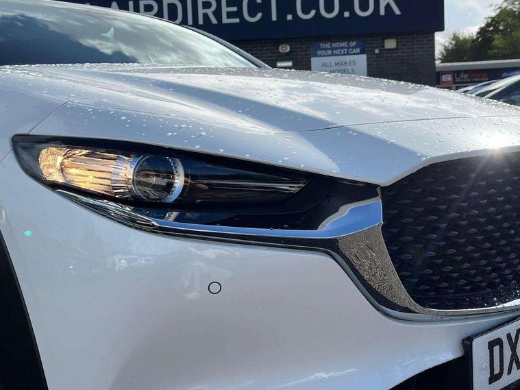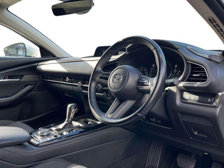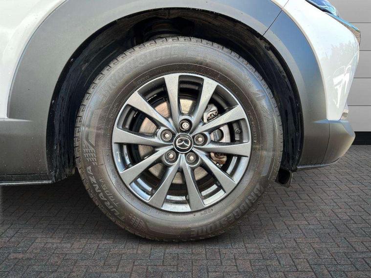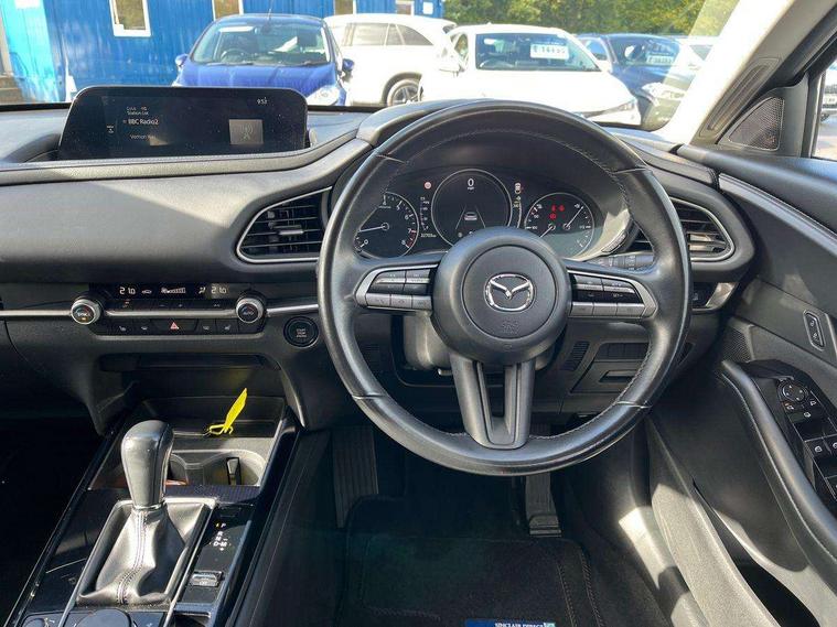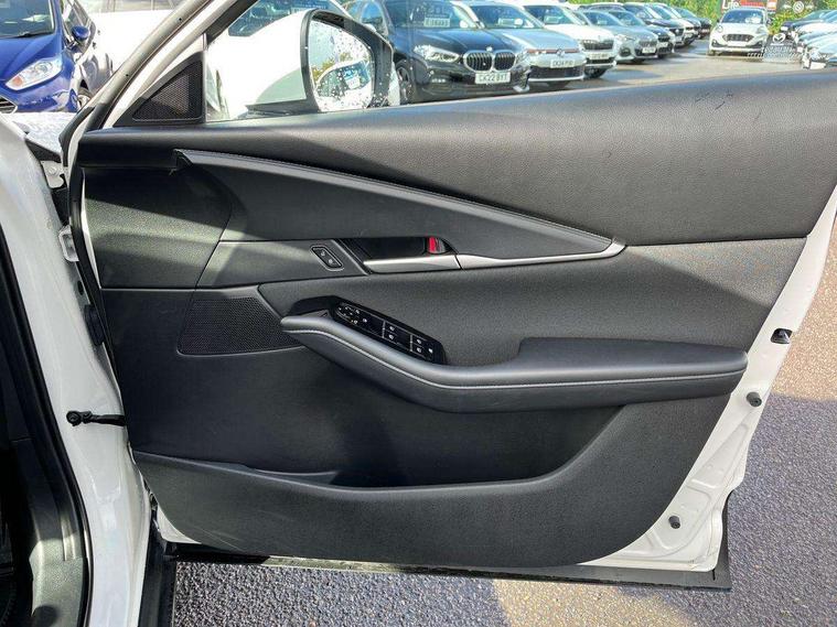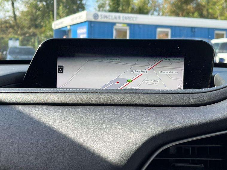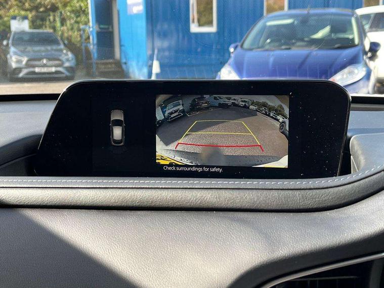 7" TFT Colour driver instrument panel display, 8.8" Colour centre touch screen display with Mazda Connect infotainment, Adaptive cruise control (Mazda radar cruise control) features stop and go, Apple car play/Android Auto, Blind spot monitoring with rear cross traffic alert, Drive mode selector, Driver attention alert system, E-call with GPS, Emergency stop signalling system, Engine start/stop button, Front and rear parking sensors, Integrated bluetooth, Integrated Mazda navigation system, Intelligent speed assist, Lane keep assist system (LAS) with Lane departure warning system (LDWS), Mazda connected services, PAS, Reversing camera, Service indicator, Tailgate, Traffic sign recognition, Trip computer, Windscreen projected colour active driving display (HUD), Cylinder Deactivation, i-stop, 2 USB charging ports in front inner central armrest, AM / FM / DAB radio with 8 speakers, Multimedia Commander including separate volume dial, Steering wheel mounted audio/bluetooth controls, B-pillar and C-pillar garnishes in satin black finish, Auto dimming driver's door mirror, Auto dimming rear view mirror, Auto headlight levelling, Body coloured, electrically adjustable, heated auto power folding door mirrors with integrated indicators, Chrome finish signature wing in front grille, Coming/leaving home lighting function, Dual chrome exhaust, Dusk sensing headlights, Electric front/rear windows with one touch auto up/down, Front kodo turn signal, Gloss black rear roof spoiler, LED headlights with halogen daytime running lights and high beam control, LED rear combination lights, Rain sensing front wipers with adjustable speed and intermittent wipe, Rear fog lights, Rear side wing doors, Rear wiper, Satin black front grille, Third brake light, 12V power outlet in centre console, 3 seat bench in 2nd row, 60/40 split fold down rear seats, Cloth upholstery with interior accents, Dark cloth door panel inserts, Dashboard, door cards and front centre armrest in black cloth, Driver and front passenger visors with covered vanity mirror and driver ticket holder, Driver seat manual slide, recline, height and seat tilt adjust, Driver, front passenger and two rear door storage, Driver, Front passenger and two rear grab handles with coathooks, Dual zone climate control air conditioning with rear air vents, Folding rear centre armrest with two cup holders, Front and rear (x3) head restraints, Front and rear LED lighting, Front armrest, Front centre storage with two cupholders, Front passenger seatback pockets, Front passengers seat manual slide, recline and height adjustment, Glovebox illumination, Heated front seats with 3 stage setting, ISOFIX child seat anchorage points attached on outer rear seats, Leather wrapped gear shift knob, Leather wrapped steering wheel with telescopic and tilt adjustment, LED luggage compartment lighting, Light roof headlining and pillars, Roof mounted sunglasses holder, Single front passenger seat, 3 point ELR front seat belts x2 with pretensioners, 3 point ELR rear seat belts, Anti-lock braking system (ABS), Drivers knee airbag, DSC - Dynamic Stability Control, Electronic parking brake with auto disengage function and auto hold function, Front and rear curtain airbags, Front dual stage driver and single stage front passenger airbags, Front passenger airbag cut-off switch, Front side airbags, Front smart city brake support, G-Vectoring control plus, Hill launch assist, Manual child lock in rear doors, Mild Hybrid system with regenerative braking, Seatbelt reminder for driver/front passenger and rear seats, Traction control system (TCS), Tyre pressure monitoring system (TPMS), Remote central locking with deadlocking and automatic door lock when driving, Smart keyless entry, Thatcham accredited alarm and immobiliser, 16" Grey alloy wheels, Emergency tyre repair kit,