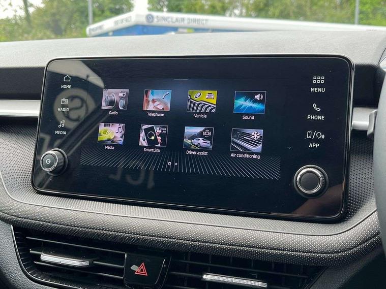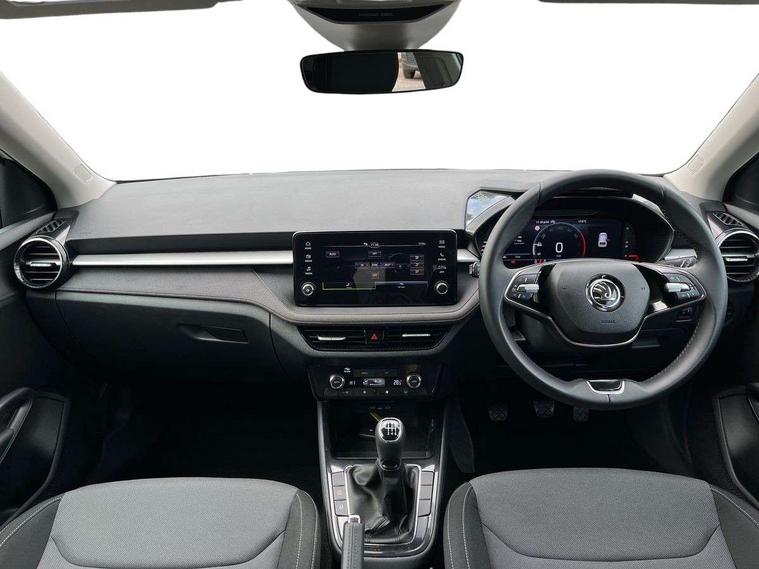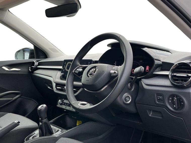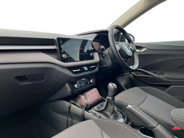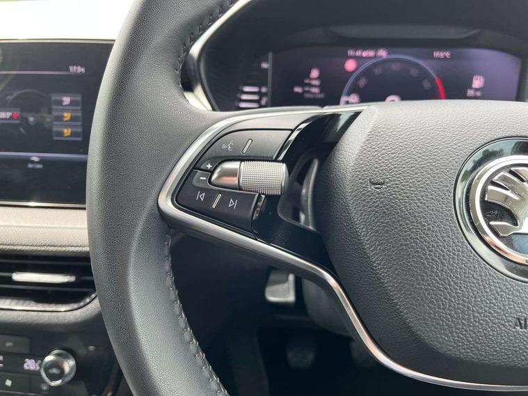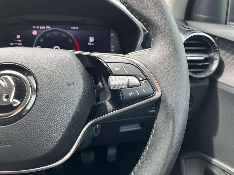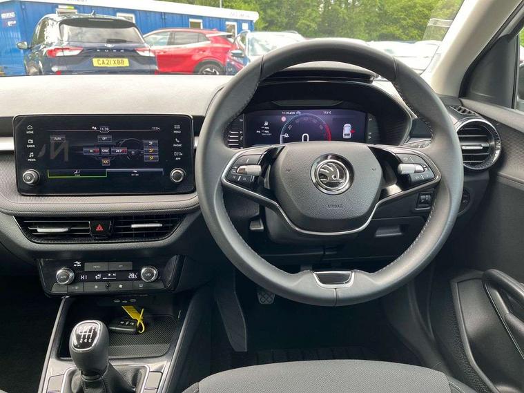 Advanced driver attention and drowsiness monitor, Bluetooth connection, Electromechanical power steering, Exterior temperature gauge, Service interval indicator, Traffic sign recognition, Virtual cockpit with 10.25" colour display, Wireless SmartLink for Apple CarPlay and Android Auto, 6 Speakers (4 in front and 2 in rear), Auxiliary socket for external MP3 player, DAB digital radio reception, Auto dimming rear view mirror, Body coloured bumpers, Door mirror integrated indicators, Front and rear electric windows, Front window wiper intermittent control, Headlight range control - Automatic, Ice scraper in fuel cap, LED daytime running lights with coming and leaving home feature, LED rear lights, Privacy glass, Rear LED fog light, Rear side wing doors, Rear window wiper with washing nozzles, Roof mounted spoiler, SKODA tailgate lettering in chrome, Third brake light, Unique dark chrome design logo on alloy wheels, 2 reading lights in front and 2 reading lights in rear, 3 rear headrests, Backrest split and folding, Central console with removable cup holder and storage box, Chrome handbrake release button, Dual zone air conditioning with climatronic electronic control, Fabric upholstery, Front centre armrest, Gearshift knob/handle in leather, Grain satin black interior door handles, Hand brake lever handle in leather, Height adjustable front headrests, Height adjustable front seats, Height adjustable steering wheel, ISOFIX and TopTether anchorage points to the outer rear seats, ISOFIX and TopTether on the front passenger seat, Luggage compartment lighting, Manually adjustable lumbar support in front seats, Pollen filter, Rear seat bench unsplit, Single front passenger seat, Skoda lettering on steering wheel, Storm grey headlining, Sun visors with mirror and airbag label on passenger side, Textile floor mats, Ticket holder, Umbrella in drivers door, 3-point height adjustable front seats belts with pretensioner and force limiter, Automatic warning lights in case of crash, Driver and passengers airbag with switch off function, e-Call+, ESC including ABS, MSR, ASR, EDS, HBA and XDS, Front and rear seat belt warning, FRONT ASSIST (AEB City and AEB Inter Urban), Front side airbags, Head airbags, One tone horn, Pedestrian protection, Three rear 3-points safety seat belts with pretensioner and force limiter including stop function for outer rear seat belts, Tyre pressure monitoring system, Anti-theft alarm system including immobiliser, interior monitoring, backup horn, and towing protection, Central locking with radio remote control, interior controls, SAFE function and 2 foldable keys, Black painted air vents, Grain satin black central console cover, Metallic grey upper decorative trim, Satin black door and side trim panel in front, Textile Kota grey lower decorative inserts, Anti-theft wheel bolts protection, Super-low rolling resistance tyres,