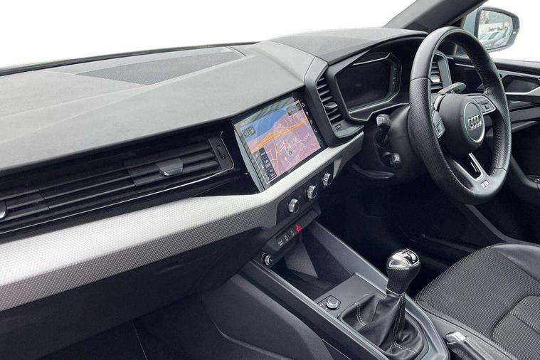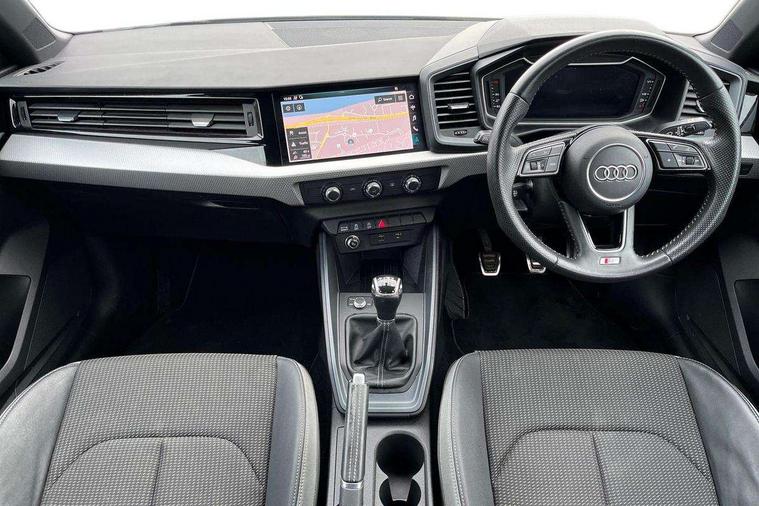 10.25" Digital instrument cluster display classis style instrument dials + speed, odometer, time, outside temperature, telephone menu + fuel level warning, Audi connect safety emergency and service including E-call, Audi drive select - power steering assistance + engine, Audi smartphone interface with connect compatible smartphone via USB directly MMI display + Nav, music, third party apps controlled via MMI controller, Automatic start/stop system, Bluetooth interface, Cruise control, Driver's information system, Electromechanical power steering, Lane departure warning system, Rear parking sensor, Service interval indicator, Speed limiter, Voice control system, Washer fluid level indicator, Sports suspension, 1 x SDXC card reader, 1 x USB type C and 1 USB type A charging points, DAB Digital radio, MMI radio plus with 8.8" colour MMI display screen and MMI touch, Auto dimming rear view mirror, Body coloured door mirrors, Door sills with aluminium inlays and S Line logo, Electric front and rear windows, Electrically adjustable, heated, folding door mirrors with integrated LED side indicator, Front side air inlets in grained matt black and C frame in titanium black, Heat insulating glass windscreen and side windows, Heated rear windscreen, LED headlights with LED rear lights + dynamic rear indicators + headlight adjustment and high beam, turning light + LED daytime running lights, Radiator grille and rear diffuser in matt titanium black, Radiator protective grille frame in matt aluminium silver, Rain and light sensors, Rear fog lights, Rear wiper, S line badges on front wings, Side front spoiler lips in grained matt black, 12V socket in centre console with two cup holders, 3 rear seats with headrests, 40:60 Split folding rear seat or folded fully, Black cloth headlining, Driver and passenger seat with manual height adjust with forward and backwards adjustment, Front and rear black floor mats with contrast stitching in fine silver, Front head restraints, Height and reach adjustable steering wheel, ISOFIX child seat mounting for front passenger and outer rear seats including top tether attachment point of outer rear seats, Leather gear knob with aluminium trim, Luggage compartment light with front and rear reading lights, Manually adjustable lumbar support in front seats, Stainless steel pedals, LED interior lighting pack - A1, Luggage compartment pack - A1, S line exterior styling pack - A1 Sportback, 3x3 point rear seatbelts, Audi pre-sense front with pedestrain and cyclist recognition, Brake assist function, Driver and front passenger airbag with front side and head airbags, Electronic Stability Control including ABS, EBD, ASR and EDL, Front and rear seatbelt reminder, Front passenger airbag deactivation switch, Hill hold assist, Seatbelt height adjustment for front seats, Seatbelt monitoring, Tyre pressure warning light, Warning triangle and first aid kit, Anti theft alarm, Anti theft wheel bolts and loose wheel warning, Immobiliser, Remote central locking with 2 foldaway keys, Aluminium trim for control switches, air vents and digital instrument cluster, Silver grey inlays polygon structure in diamond paint finish, Structured grey accent areas including air vents, door handle recesses and centre console in quartz paint finish,
