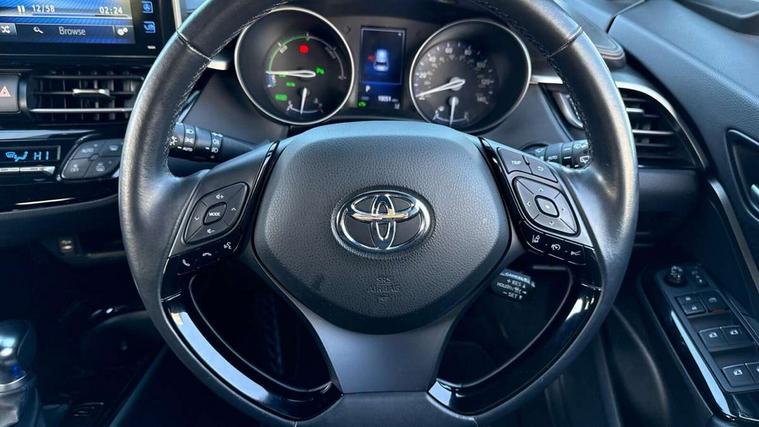 7" Coloured TFT multi informational display, 8" touch screen, Adaptive cruise control, Adjustable speed limiter, Bluetooth connectivity, Electric power steering, Intelligent parking assist with front & rear parking sensors, Lane change assist and blind spot monitor, Lane departure alert with steering control, Lights on warning, Push button starter, Rear cross traffic alert, Reversing camera, Reversing camera display in audio screen, Road sign assist - RSA, Touch 2 Go navigation system, Trip computer, Voice recognition, Vehicle Stability Control (VSC), 6 speakers, DAB Radio (Digital Audio Broadcasting), Steering wheel mounted controls, USB and Aux in connectors + 12V front outlet, Wi-fi connectivity, Auto high beam, Automatic headlight levelling, Automatic headlights, Automatic retractable door mirrors, Bi-tone black roof, Body colour door handles, Body colour door mirrors, Body coloured bumpers, Boot door release with push button, Door mirror puddle lights, Electric folding/heated door mirrors with integrated indicators, Electrochromatic rear view mirror, Follow me home headlights, Front and rear electric windows, Heated rear windscreen, Intermittent wipe, LED daytime running lights, LED front fog lights, LED headlights with sequential LED indicators, LED High mounted stop lamp, LED rear brake lights, LED rear lights, Rain sensitive windscreen wipers, Rear privacy glass, Rear spoiler, Rear wiper, Shark fin antenna, Trailer sway control, 12V Accessory socket, 3 spoke leather steering wheel with multimedia switches, Ambient lighting, Chrome interior door handles, Clean air filter, Cloth upholstery, Driver + front passenger electric lumbar support, Driver and front passenger personal light, Driver and front passenger Whiplash Injury Lessening seats, Driver/passenger sunvisors and illuminated vanity mirrors, Dual zone automatic air conditioning, Folding rear seats, Front and rear door pockets, Front console box and front cupholders, Front cupholders x 2, Front head restraints, Gear shift indicator, Glovebox with internal light, Hard tonneau cover, Heated driver and front passenger seats, Illuminated door sills, Illuminated entry system, Isofix seat fixing, Leather effect padded armrest on front console box, Leather gearshift, Light blue ambient lighting on front doors, Pollen filter, Rear headrests, Tilt/telescopic steering column, 3x3 point rear seatbelts, ABS+EBD+Brake assist, Electronic parking brake, ESP + traction control, Front and rear seatbelt reminder, Front passenger airbag on/off switch, Hill start assist control (HAC), Pre collision system with pedestrian detection, Rear child proof door locks, Road sign information display, Supplemental restraint system (SRS) airbags - 7 airbags including driver, front passenger, curtain, side and knee airbags, Toyota safety sense, Tyre pressure monitoring system, Immobiliser, Intrusion alarm, Motion sensor alarm, Remote central locking, Smart entry + Smart start, Silver dash inserts, 18" 5 double spoke matt black alloy wheels, Tyre repair kit,