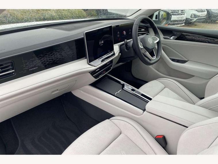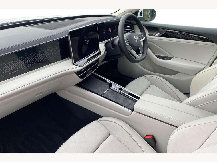 2 x Front USB-C ports, 2 x USB-C charging sockets on the centre console in the rear, charging capacity up to 45W, Adaptive cruise control, Advanced driver attention and drowsiness monitor, Chat GPT function for IDA voice assistant, Digital cockpit pro 10.25" high resolution, Discover media navigation system includes streaming and internet, Dynamic road sign display, E-Sim card for online connectivity, eCall emergency call service, Electronic engine sound, Full electric tailgate operation, Inductive smartphone charging without external antenna connection, Memory feature for park assist, Oncoming vehicle braking when turning including swerve support, Park assist pro with park distance control (Remote park assist), Predictive speed limiter, Preparation for We connect and We connect plus, Wireless app connect, Battery 340 A (58 Ah), Front wheel drive, Petrol Particulate Filter, 8 Speakers, Auto dimming interior rear view mirror, Automatic headlights, Body colour bumpers, Body colour door handles, Electric panoramic sunroof, tilting and sliding panoramic sunroof with rear panoramic sunroof, Heated windscreen washer jets, Laminated safety glass windshield, heat and sound insulating, LED third brake light, Rain sensor, Rear side wing doors, Rear wiper, Welcome light with surround lighting, 3 seat bench in 2nd row, 3 zone air care climatronic with rear air conditioning control panel, 30 colours options interior ambient lighting, Front + rear carpet mats, Front head restraints, Front sports comfort seats, Isofix child seat preparation, easy-fit (for two outer rear seats, and front passenger seat), compatible with I-size, Leather-wrapped, heated and multi-function steering wheel with shift paddles, Luggage compartment cover, power operated, Rear centre armrest, Single front passenger seat, Standard pedal cluster, Sun visors with illuminated vanity mirrors for driver and front passenger, Sunblind for rear side windows, Three rear head restraints, Unsplit rear seat bench, split folding backrest, Acoustics pack - Passat Estate, LED High matrix headlamps pack with Illuminated VOLKSWAGEN emblem rear - Passat, 3x3 point rear seat belts, ABS (Anti locking brake system) includes BAS (Brake assist) and EBD (Electronic brake pressure distribution), Autonomous emergency braking front assist with pedestrian and cyclist monitoring, Disc brakes in front, Driver/Front Passenger airbags, Drivers knee airbag, Electronic parking brake with auto hold, ESC (Electronic stability control) + EDL (Electronic Differential lock) and ASR (Traction control), EDTC (Engine drag torque control), Extended safety system with proactive passenger protection system, Front passenger airbag deactivation switch, Hill hold function, Tyre pressure loss indicator, Warning triangle and first aid kit, Alarm with interior protection, Electronic engine immobiliser, Keyless locking and starting system keyless access with safelock, Aluminium decorative inserts, Tool kit for tyre mobility set, Trims for alloy wheels,
