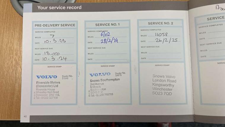12.3" Progressive Driver Display, 360 degree surround view parking camera with side proximity sensors, 9" centre console touch screen, Adjustable steering wheel force, Bluetooth handsfree system, Driver alert control with lane keeping aid, Driver assistance (pilot assist and adaptive cruise control), Driver awareness - Blind spot information system with steer assist, cross traffic alert with autobrake and rear collision warning and mitigation, Emergency services call system, Front and rear park assist, Google Automotive Services, Oncoming Lane Mitigation, Service interval indicator, Speed limiter, Speed sensitive steering, Trip computer, Volvo on call with App, Wireless/Inductive Mobile Phone Charging, 8 speed automatic transmission with start/stop + manual change functions, Dynamic chassis, DAB Digital radio, Premium Sound by Harman Kardon, dirac unison, dolby pro logic II surround sound, 13 speakers/600W output and fresh air subwoofer, Steering wheel remote infotainment controls, Adaptive brake lights with high level LED brake lights, Auto dimming interior + exterior mirrors, Automatic headlight levelling system, Automatic LED Headlights + Active high beam incorporating daytime running lights, Electric adjustable/heated/auto power folding door mirrors, Electric front+rear windows, Front aluminium tread plates, Heated front windscreen, High gloss black door mirrors and window surround, High gloss black front and rear bumper decoratives, High gloss black mesh front grille with high gloss black surround, Home safe and approach lighting, Integrated roof rails in high gloss black, LED front fog lights, Puddle lights, Rain sensor with automatic windscreen wiper activation, Rear side wing doors, Rear wiper, Roof antenna, Roof spoiler, Tinted windscreen, Visible VIN plate, 12V socket in front tunnel console and luggage compartment, 3 seat bench in 2nd row, 4 Zone electronic climate control, A-pillar parking ticket holder, Air purifier particulate matter (PM) 2.5 filter, B Pillar ventilation, Bright metal luggage threshold, Centre console cupholders and storage, Charcoal floor mats, Front and rear courtesy lights, Front and rear door pocket illumination, Front cupholder illumination, Front footwell illumination, Front reading lights, Front seat cushion extensions, Glovebox compartment with illumination, Head restraints for all seats, Heated front seats, Heated steering wheel, Height/reach adjustable steering column, Illuminated luggage compartment, Illuminated vanity mirrors + ticket holder, ISOFIX attachment on outer rear seats, Load cover, Load protection net, Multi directional lumbar support, Power driver seat with memory + exterior mirrors memory, Power height adjustable passenger seat, Rear armrest with cupholder, Rear footwell and front and rear side step illumination, Rear seat concealed storage, Single front passenger seat, Tailgate illumination and ambient door lighting, Underfloor stowage compartment, Versatile split folding rear seat - 60/40, 5 three point seatbelts, City safety with steering support with Pedestrian + cyclist + large animal detection + front collision warning with full auto brake, Drivers knee airbag, Dual stage driver/passenger airbags, Electronic parking brake with auto hold, First aid kit, Front seats SIPS airbags, Hill descent control - Off-road drive mode, Hill start assist, IC (Inflatable Curtains) - Full Length, Passenger airbag cut-off device, Power child locks on rear doors, Road sign information display, Run off Road Mitigation, Run off Road Protection, Seatbelt reminder and pretensioners, SIPS (Side Impact Protection System), Slippery road and hazard light alert, Stability and Traction Control with Spin control, Engine Drag Control and Corner Traction Control, Tyre pressure monitoring system, Vehicle deceleration control with Anti-lock Brake System, Electronic Brake Distribution and Emergency Brake Assist, Warning triangle, WHIPS whiplash protection system - front, Anti-theft alarm including immobiliser/volume sensor + level sensor, Care key with user defined top speed, Key integrated remote control central locking + fuel flap with deadlocking system and auto open/close power windows, Keyless Drive (includes Keyless Entry and Keyless Start) with Handsfree Tailgate Opening/Closing, Locking wheel nuts, Private locking for tailgate,