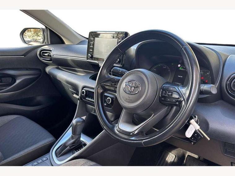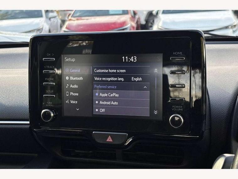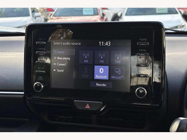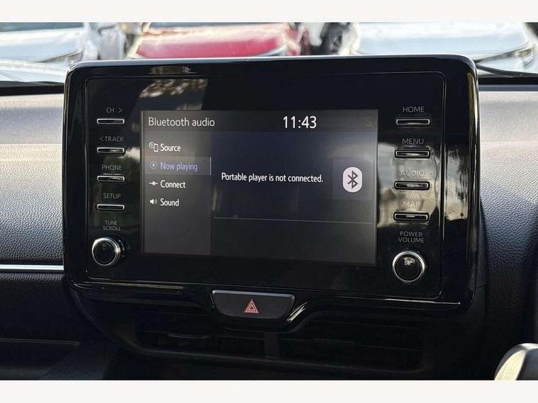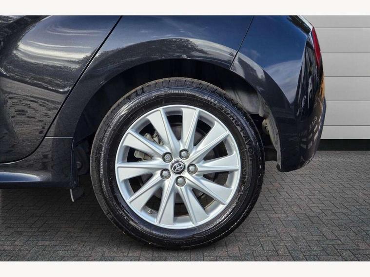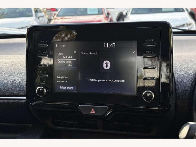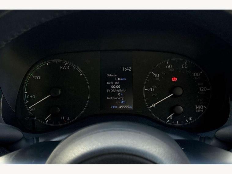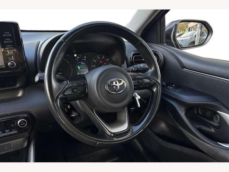 4.2" coloured TFT multi information display with analogue speedometer, Adaptive cruise control, Adjustable speed limit with speed warning, Bluetooth connectivity, E-call, Electric power steering, Hybrid energy display, Multi information display switches on steering wheel, Reversing camera, Smartphone integration with Apple CarPlay and Android auto, Voice recognition, Vehicle Stability Control (VSC), 4 speakers, 7" Multimedia display touch screen, Toyota Touch 2 with DAB, USB connection, Acoustic windscreen glass, Auto windscreen wipers, Automatic headlights, Body coloured door mirrors, Bulb indicators, Chequered front grille, Daytime running lights, Electric adjustable heated door mirrors, Follow me home headlights, Front auto power windows with anti jam protection, Halogen projector headlights, LED High mounted stop lamp, Manual headlight levelling, Rain sensor, Rear side wing doors, Rear spoiler, Rear wiper, Shark fin antenna, Turning signal integrated indicators in door mirrors, 3 adjustable rear headrests, 3 spoke leather steering wheel, 60/40 split folding rear seat, Active headrests, Adjustable boot height, Auto air conditioning, Coat hooks in rear grab handles, Cup holders (2 front & door), Data Communication Module (DCM) connected services, Fabric upholstery, Front armrest, Glovebox, Grey roof lining, Height adjustable driver's seat, Isofix seat fixing, Leather gearshift, Pollen filter, Shopping bag hooks, Single front passenger seat, Tilt/telescopic steering column, 3 point seatbelts on all rear seats, ABS+EBD+Brake assist, Electronic parking brake, Emergency brake light system (EBS), Front passenger airbag on/off switch, Front seatbelt reminder, Hill start assist control (HAC), Rear child proof door locks, Rear seat belt reminder, Supplemental Restraint System (SRS) 8 airbags: Driver & passenger's airbags, dual side curtain airbags, side impact airbags, front centre airbag, Toyota Safety Sense 2, Precollison + Night time Pedestrian & Cyclist Detection, Lane Trace Assist, Auto High Beam, Intelligent ACC & Road Sign Assist, Tyre pressure warning system, 2x Master key, Alarm/immobiliser, Remote powered central double locking doors, Soft touch instrument panel, 16" Silver alloy wheels, Space saver spare wheel,