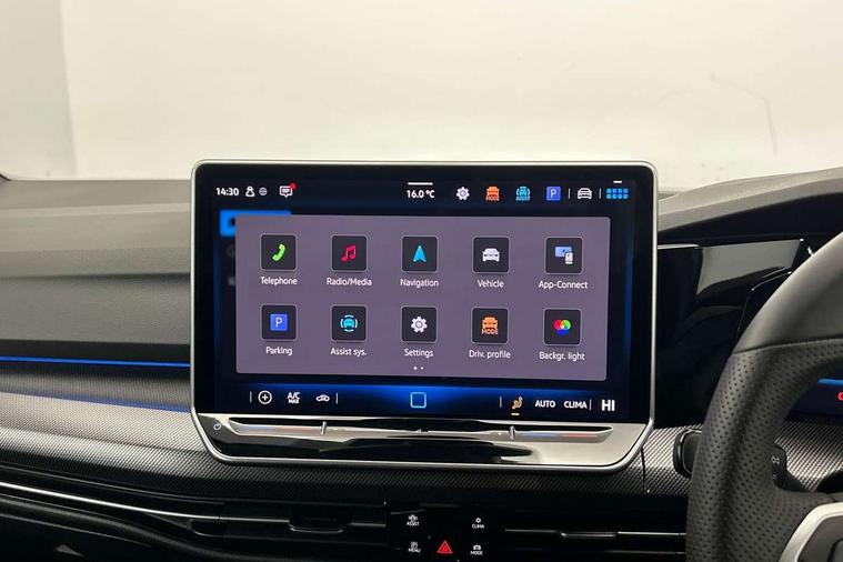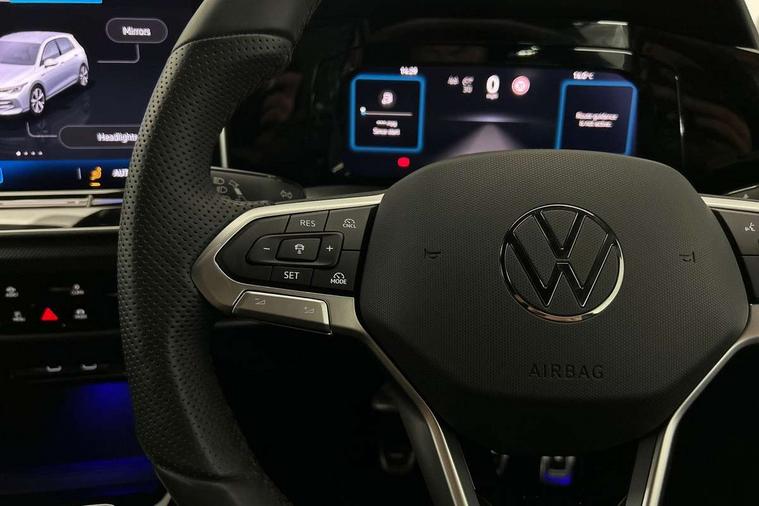 Activated carbon canister, Adaptive cruise control (ACC), Advanced driver attention and drowsiness monitor, Dynamic road sign display, Dynamic steering, E-Sim card for online connectivity, eCall emergency call system, Multi-color Digital cockpit pro, selection of different info profile possible, Multifunction front facing camera for distance control, Navigation system, Oncoming vehicle braking when turning including swerve support, Preparation for light assist system, Speed limiter, Speedo, rev counter, electronic odometer, trip, service interval display, exterior temperature and fuel gauge, Traffic jam assist, Voice enhancer and voice control, Warning signal and warning light for front and rear seatbelts not fastened, We connect plus preparation, We connect preparation, Wireless app connect, Petrol Particulate Filter, Start-stop system with battery regeneration (recuperation - energy recovery during braking), XDS electronic differential lock for improved traction and handling, 2 USB C ports in front, 2 USB charging sockets on the centre console in the rear charging capacity upto 45W, Comfort telephony + wireless charging, without wireless aerial connection, Digital radio reception (DAB), Diversity antenna for FM reception, Gaming platform via car app, Infotainment system with 12.9" display, Mobile phone interface with inductive charging feature, 3rd brake light, Auto headlights, Automatic headlamp activation with Coming home and Leaving home feature, Body colored bumpers in R-Line style, Body colour door handles, Exterior ambient lighting with illuminated door handles, Exterior mirrors convex on the left and aspherical on the right, Front and rear electric windows, Heat insulating windshield made of laminated glass, LED daytime running lights, Rear exhaust tailpipe, Rear fog light on one side and reversing lights on both sides, Rear side wing doors, Rear windscreen washer and wiper with interval delay, Remote electrically foldable door mirrors, puddle lights and reverse activated passenger's door mirror, Welcome light with surround lighting, 12V socket in front centre console, 12V socket in luggage compartment, 3 rear head restraints, 3 seat bench in 2nd row, Ambient lighting with 30 colour incl. LED light unit in front footwell with selectable light colour, Brushed stainless steel pedals, Carpet mats, front and rear, Chrome plated radiator grille inserts, air vent surrounds and light switch surrounds, Front centre armrest, Integrated front head restraints, ISOFIX anchors for child seats on outer rear bench seats and on front passanger seat compatible for i-Size, Leather gearshift handle, Luggage compartment lighting, Premium sports seats in front, Rear cupholder and loadthough, Single front passenger seat, Soul black instrument panel, Split folding backrest with centre armrest and unsplit rear seat bench, Storm grey roof lining, Sun visors with illuminated vanity mirrors, 3 point height adj front seatbelts + pretensioners, 3 rear three point seatbelts, ABS, Autonomous emergency braking front assist with pedestrian and cyclist monitoring, Child locks on rear doors, Driver and front passenger airbag with front passenger airbag deactivation, Electronic parking brake with auto hold, ESC (Electronic Stability Control), Extended pedestrian protection measures, Rear disc brakes, Two tone horn, Tyre pressure loss indicator, Volkswagen roadside assistance, Anti theft wheel bolts, Preparation for alcohol interlock, Decorative inserts carbon grey for dashboard and front door trim panels,