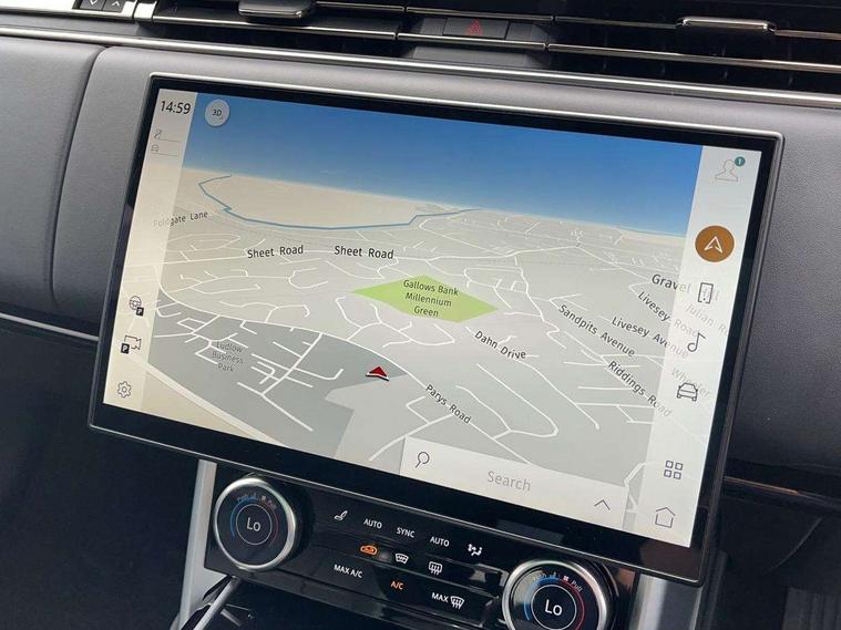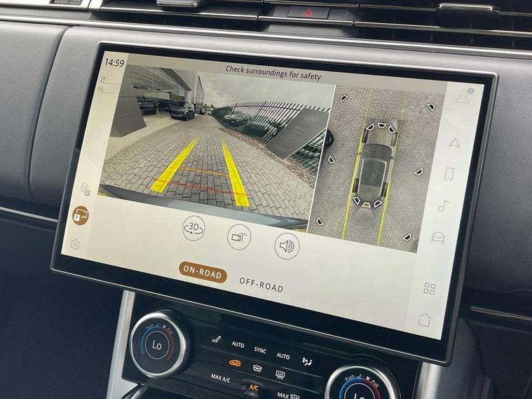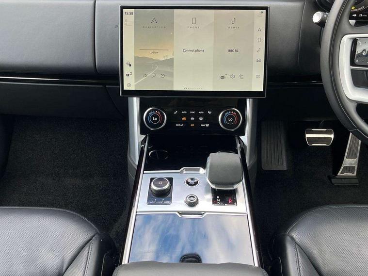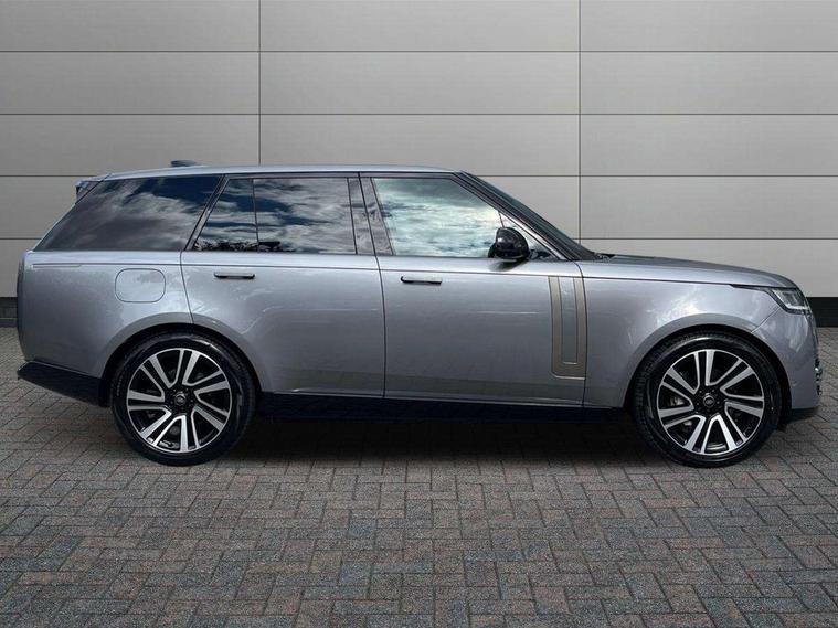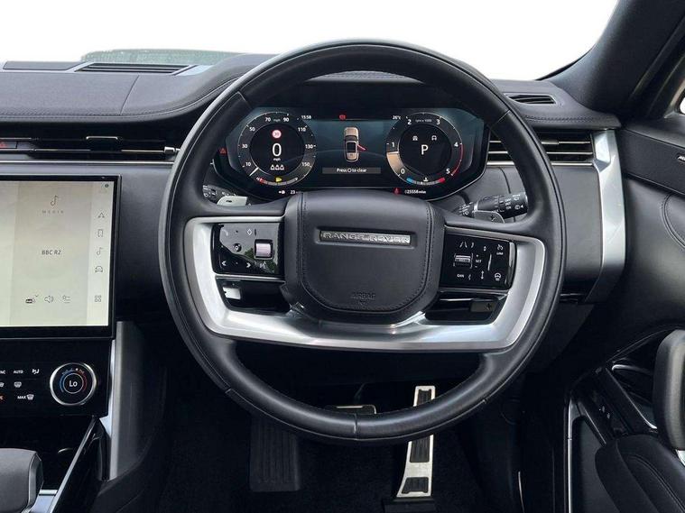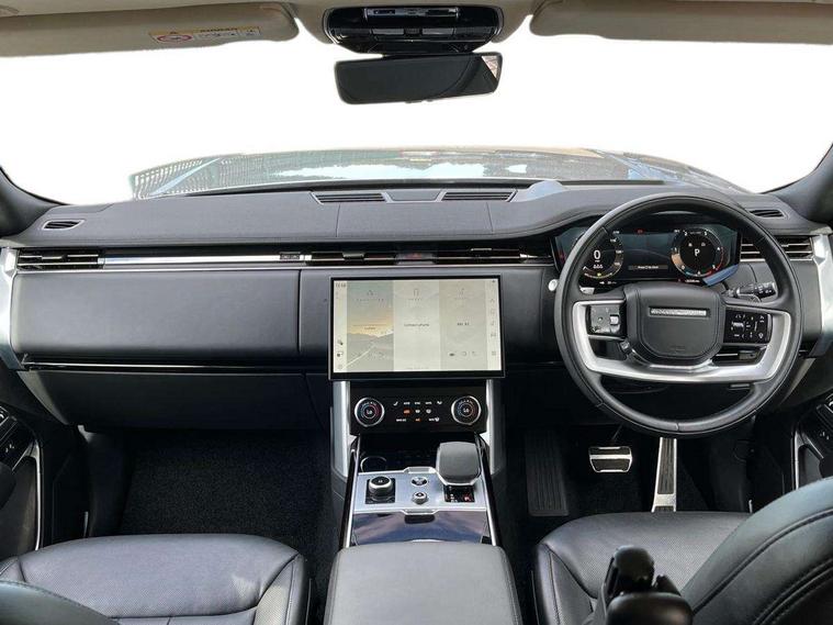 13.1" Touchscreen, 3D surround camera inc frwd traffic detection, vehicle clearance guidance, 3D view, clearsight ground view, manoevure light, 360 parking aid, wade sensing, All Terrain Info Centre, All wheel steering, Android Auto, Apple car play, Blind spot assist, Bluetooth connectivity streaming, Driver condition response, Eco mode, Electric power assisted steering (EPAS), Emergency call service, Front and rear parking aid, Head up Display, Interactive driver display, Lane keep assist, Rear collision monitor, Rear traffic monitor, Remote, Traffic sign recognition with adaptive speed limiter, Wi-Fi Enabled with data plan, Wireless device charging with phone signal booster, 8 speed automatic transmission, Active damper technology system, Adaptive dynamics, All terrain progress control, All Wheel Drive (AWD), Automatic access height, Terrain Response 2 Auto, Twin speed transfer box, Digital Audio Broadcast radio-DAB, Pivi pro including smart settings, Connected navigation pro, nuance speech, USB socket, Acoustic laminated windscreen, Animated directional indicators, Automatic headlights, Automatic levelling headlights, Centre high mounted stop light, ClearSight interior rear view mirror, Electric windows with one touch open/close and anti trap, Engine cover, Flush deployable exterior door handles, Front and rear recovery eyes, Front fog lights, Headlamp power wash, Heated rear window, Heated washer jets, LED tail lights, No badges, Power fold, auto-dimming, heated door mirrors with approach lights, Rain sensing windscreen wipers, Rear boot, Rear fog lights, Rear side wing doors, Side repeater indicators in mirror, Trailer stability assist, Winter wiper park position, 12V power sockets, 3 seat bench in 2nd row, Air quality sensor, Bright metal pedals, Cabin air purification pro, Cabin lighting, Customer configurable single point entry, Driver and passenger front seat armrests, Easy boot loading, Ebony Carpet, Front and rear cupholders, Front and rear grab handles, Front head restraints, Gearshift paddles, Heated steering wheel, Hook in load space, Loadspace light, Luggage tie down in loadspace, Multifunction steering wheel, Rear centre armrest, Rear head restraints, Rear ISOFIX, Single front passenger seat, Soft close doors, Twin blade sunvisors with Illuminated vanity mirrors, Upper and lower glovebox, Online pack with data plan - Range Rover, 3x3 point rear seat belts, Anti-lock braking system (ABS), Brake hold function, Cornering brake control (CBC), Customer configurable autolock, DSC - Dynamic Stability Control, Electronic brake force distribution, Electronic parking brake, Electronic traction control, Emergency brake assist, Emergency braking, Front airbags with passenger seat occupant detector, Front side airbags, Hill descent control, Hill launch assist, Illuminated seat belt buckles, Low traction launch, Occupant protection assist, Power operated child locks, Roll stability control, Tyre pressure monitoring system (TPMS), Immobiliser, Intrusion sensor and alarm, Keyless entry, Locking wheel nuts, Remote central locking, Noble chrome controls,