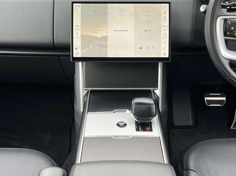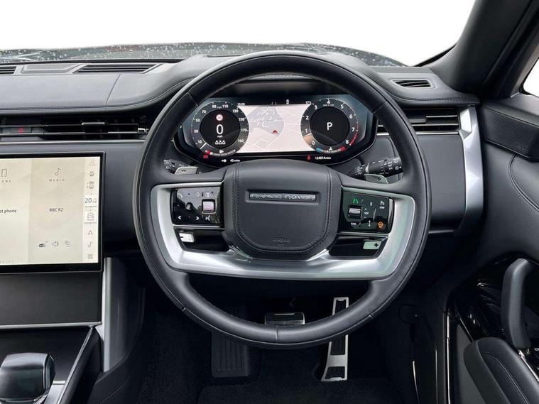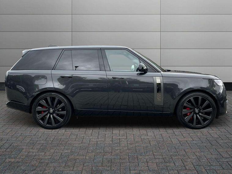 13.1" Touchscreen, 3D surround camera inc frwd traffic detection, vehicle clearance guidance, 3D view, clearsight ground view, manoevure light, 360 parking aid, wade sensing, All Terrain Info Centre, All wheel steering, Android Auto, Apple car play, Blind spot assist, Bluetooth connectivity streaming, Configurable programs, Driver condition response, Eco mode, Electric power assisted steering (EPAS), Emergency call service, Front and rear parking aid, Head up Display, Interactive driver display, Lane keep assist, Rear collision monitor, Rear traffic monitor, Remote, Traffic sign recognition with adaptive speed limiter, Wi-Fi Enabled with data plan, Wireless device charging with phone signal booster, 8 speed automatic transmission, Active damper technology system, Adaptive dynamics, Adaptive off-road cruise control, All Wheel Drive (AWD), Automatic access height, Electronic active differential with torque vectoring by braking, Electronic air suspension with dynamic response pro, Terrain Response 2 Auto, Twin speed transfer box, Digital Audio Broadcast radio-DAB, Meridian 1600W signature sound system, Pivi pro including smart settings, Connected navigation pro, nuance speech, USB socket, Acoustic laminated windscreen, Animated directional indicators, Automatic headlights, Automatic levelling headlights, Centre high mounted stop light, ClearSight interior rear view mirror, Digital LED headlights with signature DRL and image projection, Electric windows with one touch open/close and anti trap, Flush deployable exterior door handles, Front and rear recovery eyes, Front fog lights, Headlamp power wash, Heated rear window, Heated washer jets, Illuminated aluminum treadplates with illuminated SV script, Laminated front and rear side glass, LED tail lights, Power fold, auto-dimming, heated door mirrors with approach lights, Rain sensing windscreen wipers, Rear boot, Rear fog lights, Rear side wing doors, Side repeater indicators in mirror, Solar attenuating windscreen, SV branded puddle lamps, SV etched roundel on side gill inserts, SV exclusive front bumper and grille design, SV exterior badge, SV white ceramic exterior badge with black SV roundel, Trailer stability assist, Winter wiper park position, 12V power sockets, 24-way heated and cooled, hot stone massage electric front seats with Executive Class Comfort Plus rear seats, 3 seat bench in 2nd row, Air quality sensor, Auto folding loadspace cover, Bright metal pedals, Cabin air purification pro, Cabin lighting, Centre console with armrest, Customer configurable single point entry, Driver and passenger front seat armrests, Easy boot loading, Electric rear side window sunblinds, Four zone climate control, Front and rear cupholders, Front and rear grab handles, Front head restraints, Gearshift paddles, Heated steering wheel, Hook in load space, Loadspace light, Luggage tie down in loadspace, Multifunction steering wheel, Rear centre armrest, Rear head restraints, Rear ISOFIX, Single front passenger seat, SV exclusive seat foams and sculpting, SV exclusive seat pattern embroidery/ perforation, SV exclusive speaker grille design, SV start up graphics in IP screen, Twin blade sunvisors with Illuminated vanity mirrors, Upper and lower glovebox, Versatile loadspace floor in tailgate, Online pack with data plan - Range Rover, 3x3 point rear seat belts, Anti-lock braking system (ABS), Brake hold function, Cornering brake control (CBC), Customer configurable autolock, DSC - Dynamic Stability Control, Electronic brake force distribution, Electronic parking brake, Electronic traction control, Emergency brake assist, Emergency braking, Front airbags with passenger seat occupant detector, Front side airbags, Hill descent control, Hill launch assist, Illuminated seat belt buckles, Low traction launch, Occupant protection assist, Power operated child locks, Roll stability control, Tyre pressure monitoring system (TPMS), Immobiliser, Intrusion sensor and alarm, Keyless entry, Locking wheel nuts, Remote central locking, SV exclusive key fob with white and black SV roundel,