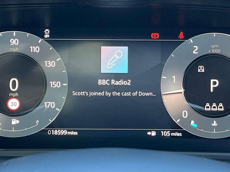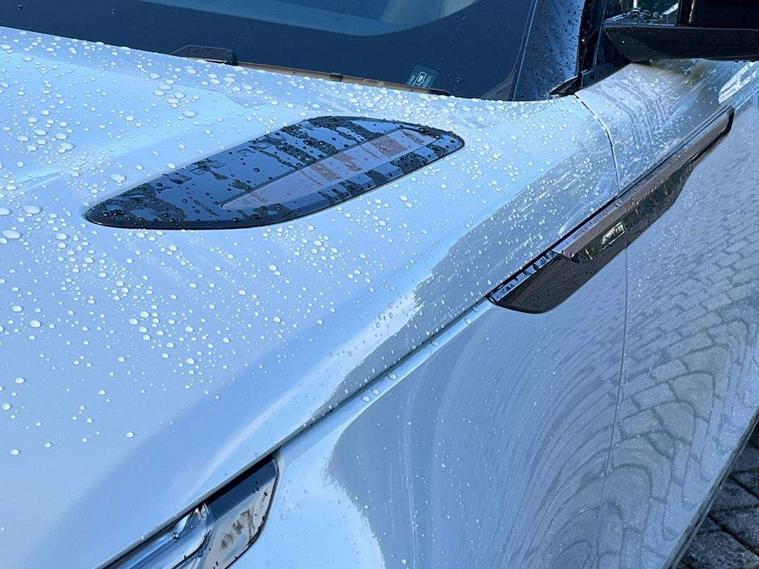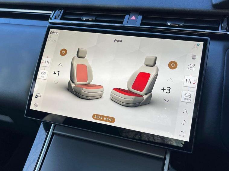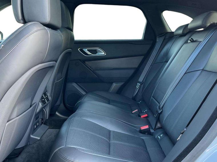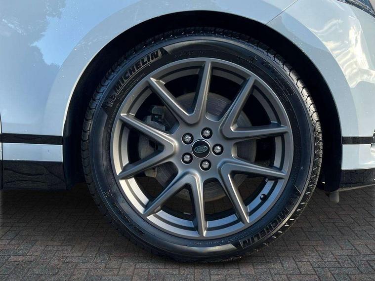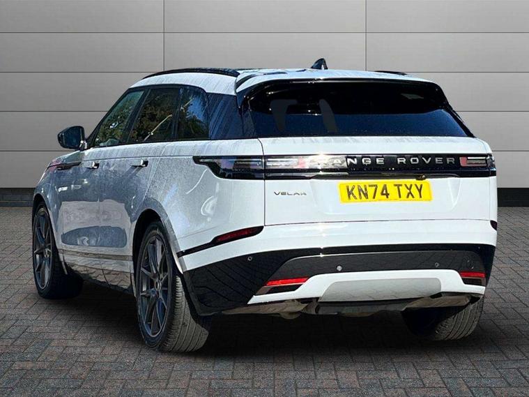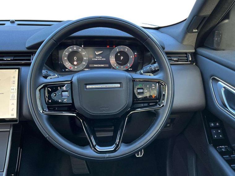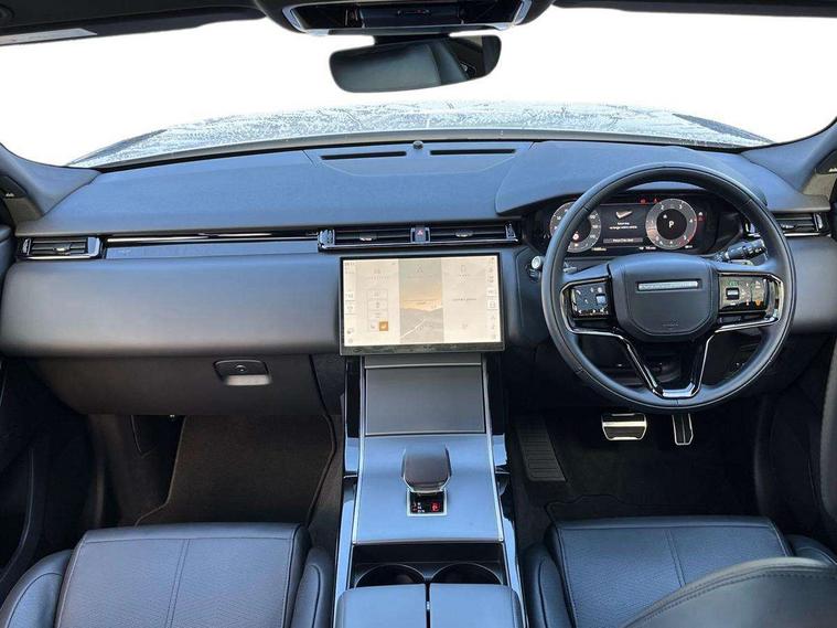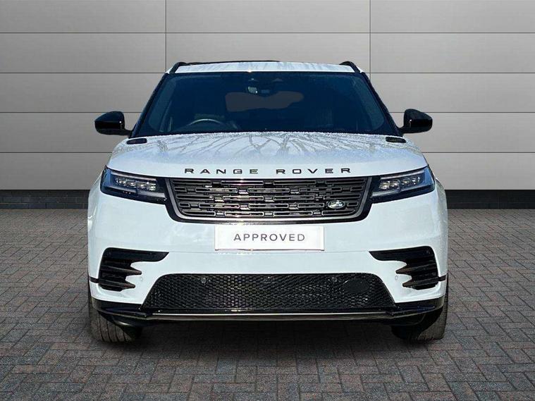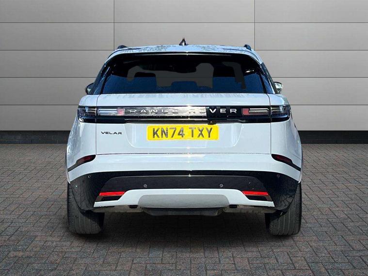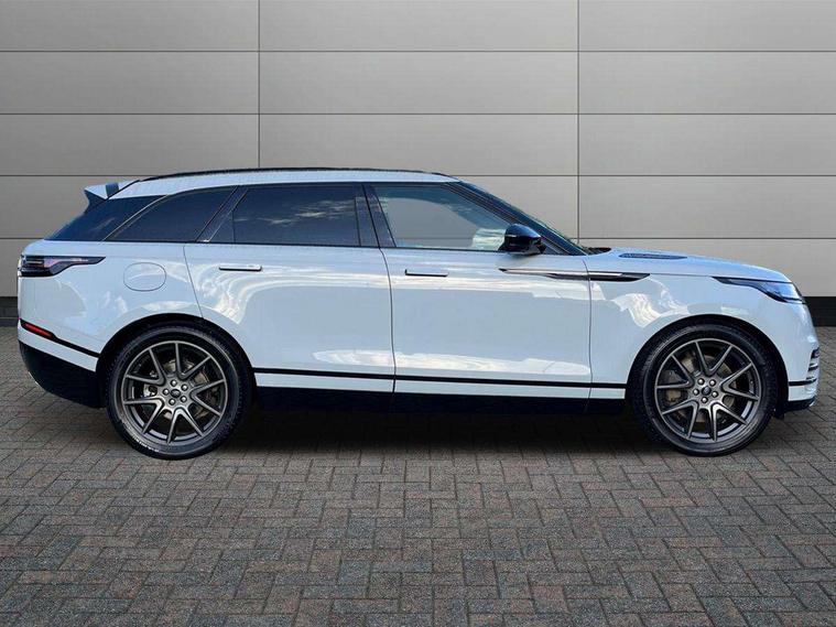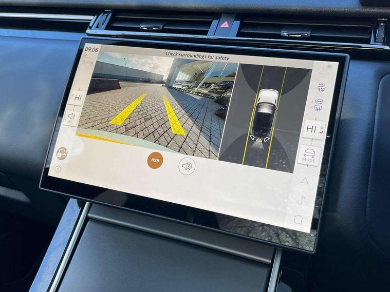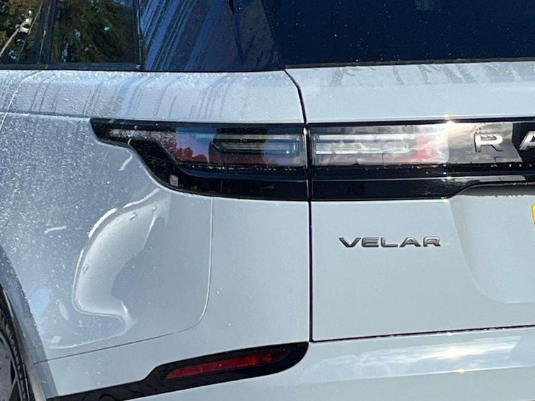 Adaptive cruise control with steering assist, Android Auto, Apple CarPlay, Blind spot assist, Bluetooth connectivity, Brake pad wear indicator warning light, Driver condition monitor, eCall emergency call system, Front and rear parking aid, InControl remote, Land Rover InControl apps, Lane keep assist, Pivi pro with connected navigation, Rear collision monitor, Rear traffic monitor, Service indicator, Speed proportional electronic power assisted steering (EPAS), Traffic sign recognition with adaptive speed limiter, Trip computer, Voice control system, Wireless device charging, 8 speed automatic transmission, Adaptive dynamics, All terrain progress control, Electronic air suspension, Open differential with torque vectoring by braking, Single speed transfer box, DAB radio, Steering wheel mounted controls, 3rd brake light, Acoustic laminated windscreen, Auto dimming interior rear view mirror, Automatic headlamp levelling, Automatic headlights, Body coloured bumpers, Boot protection plate, Electric windows with one touch open/close and anti trap, Flush deployable exterior door handles, Follow me home headlights, Heated rear window with timer, Heated washer jets, Heated windscreen, Metal front tread plates, Metal load space scuff plates, Pixel LED headlights with signature DRL, Power fold, auto-dimming, heated door mirrors with memory and approach lights, Rain sensor windscreen wipers, Rear animated directional indicators, Rear fog lights, Rear side wing doors, Rear wash/wipe, Tailgate/boot lid spoiler, Trailer stability assist, Velar badge, 3 seat bench in 2nd row, Ambient lighting, Bright metal pedals, Carpet mats, Driver/passenger sunvisors with illuminated vanity mirrors, Ebony morzine headlining, Electrically adjustable steering column, Extended leather upgrade, Heated steering wheel, Isofix system on outer rear seats, Loadspace cover, Overhead lighting console, Overhead stowage for sunglasses, Passive front headrests, Rear air vents, Rear centre headrest, Single front passenger seat, Twin front cupholders, Twin sliding front centre armrest, Online pack with data plan - Velar, Power socket pack 2 - Velar, 380mm front brakes and 325mm rear brakes, 3x3 point rear seatbelts, Anti-lock braking system (ABS), Cornering brake control, Curtain airbags, Customer configurable autolock, Door side intrusion beams, Driver airbag, DSC - Dynamic Stability Control, Electronic brake force distribution, Electronic parking brake, Electronic traction control, Emergency braking, Front and rear seatbelt reminder, Hill descent control, Hill launch assist, Low traction launch, Passenger airbag, Power operated child locks, Rear airbags, Roll stability control, Side airbags, Tyre pressure monitoring system (TPMS), Global lock and unlock switch on driver door, Immobiliser, Intrusion sensor, Keyless entry, Lock only switch on front passenger door, Locking wheel nuts, Perimetric alarm, Remote central locking, All season tyres,