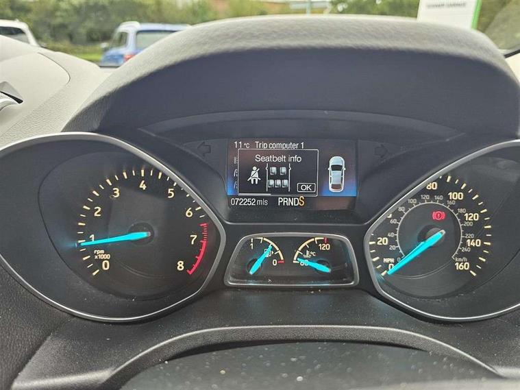 Cruise control + speed limiter, EPAS, Trip computer, 6 speakers, Auxiliary socket for external device, DAB radio/CD with SYNC, voice control + emergency assist, Remote audio controls on steering wheel, USB connection, Body colour bumpers, Body colour rear spoiler, Electrically heated door mirrors, Power front and rear windows, Quickclear heated windscreen, Rear diffuser, Tailgate wash/wipe, Twin exhaust pipes, 60/40 split/folding rear back and cushion, Auxiliary power socket in luggage area, Centre console with stowage tray/bottle holder/CD stowage/front and rear 12V power point, Cloth upholstery, Driver seat lumbar adjustment, Driver/passenger front seatback pockets, Driver/passenger seats fore/aft adjustment, Footwell courtesy lights front and rear, Front floor mats, Front head restraints, Front overhead courtesy lights with theatre style dimming and delay, Front/rear reading lights, Gearshift paddles, Isofix system on outer rear seats, Leather gearknob, Leather steering wheel, Manual air conditioning, Reach + rake adjustable steering column, Rear head restraints, Sports style front seats, Stowage unit in upper instrument panel, Tie down hooks, Tonneau cover, Variable intensity instrument illumination, 3 point seatbelts on all 3 rear seats, ABS/EBD, Driver and passenger airbags, Driver and passenger side airbags, Electric traction assist system, ESP+EBA, Front and rear curtain airbags, Hill start assist, Intelligent Protection System (IPS), Tyre pressure monitoring system, Immobiliser, Keyless Start, Locking wheel nuts, Remote central locking, Thatcham Cat.1 alarm, Mini steel spare wheel,