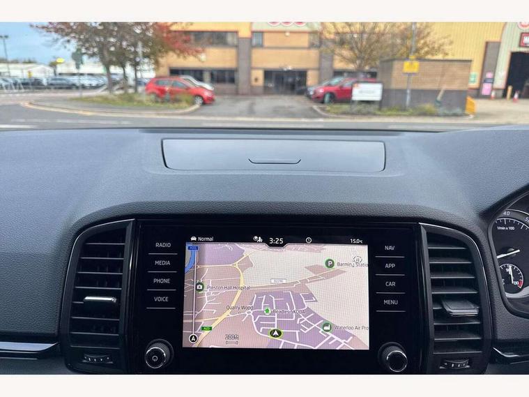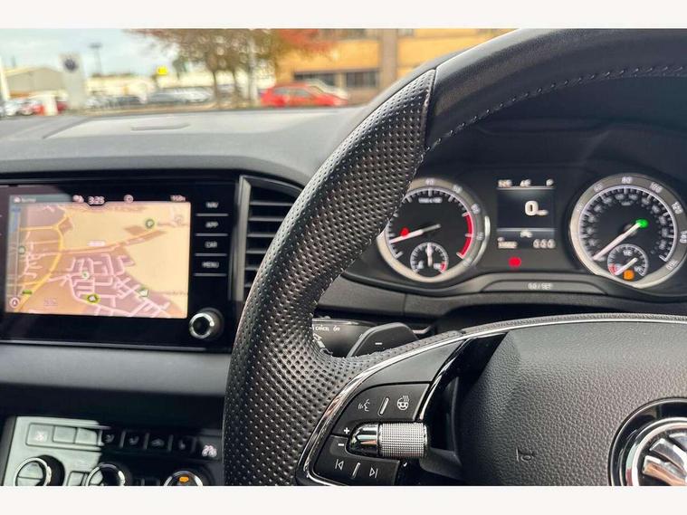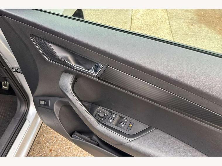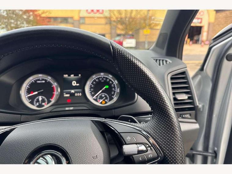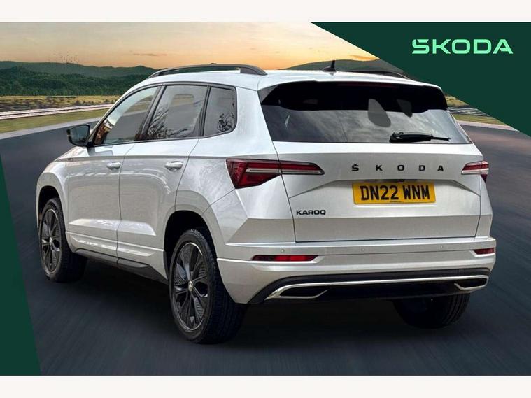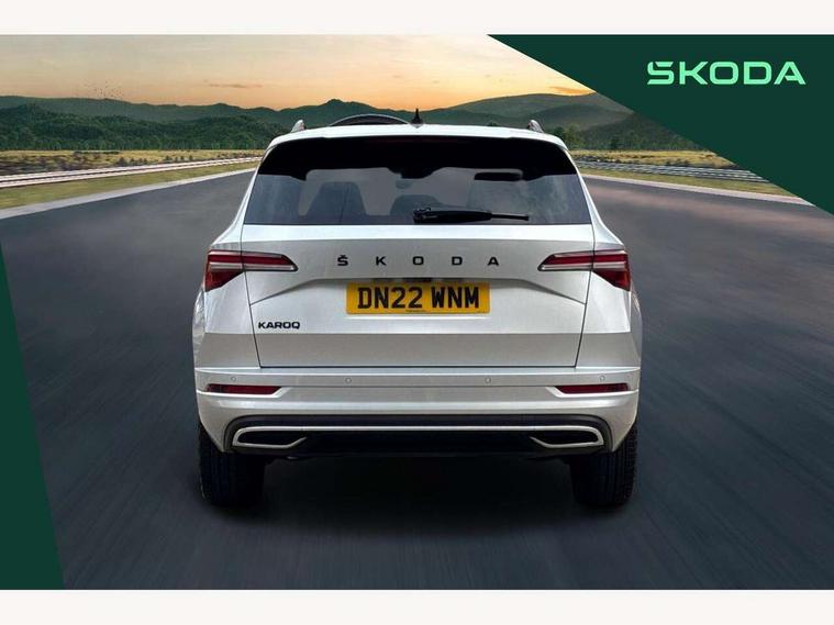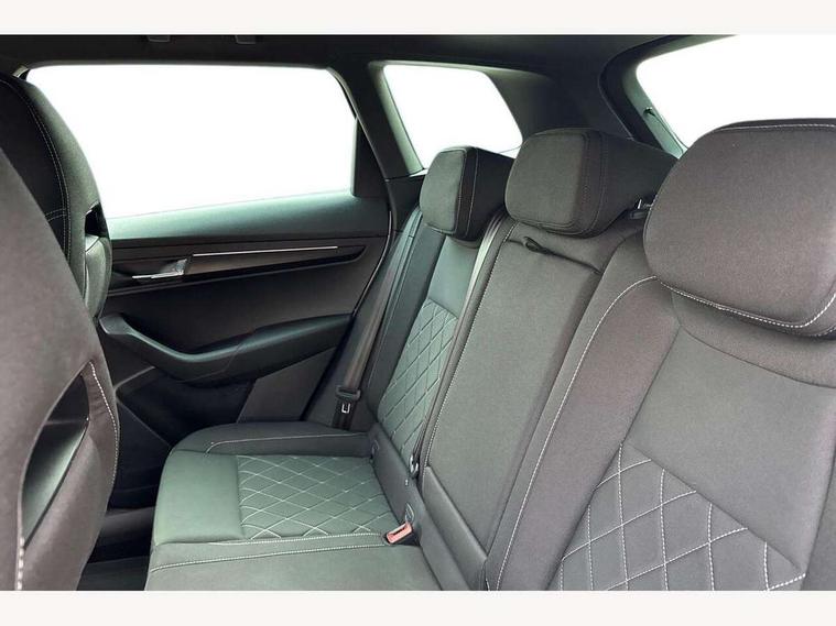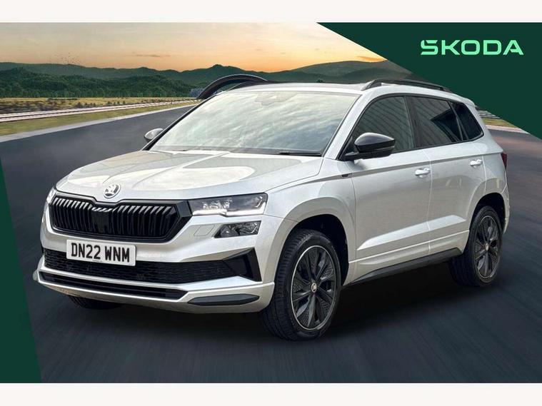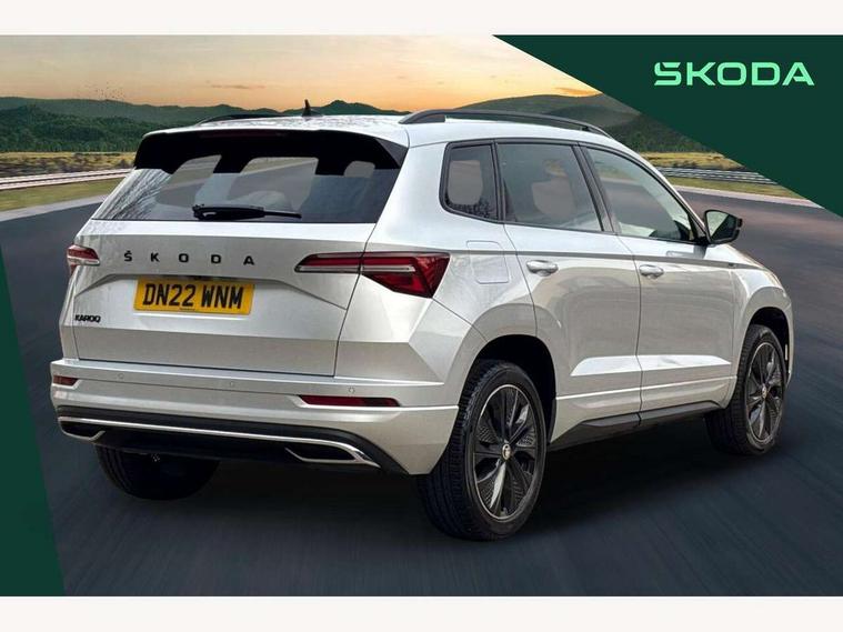 Care connect, Driver fatigue sensor, Emergency services call system, Multifunction colour trip computer, Outside temperature gauge, Service interval indicator, SmartLink wireless for Apple and wired for Android, Start/stop system with regenerative braking, USB C Port x 2 in front centre console, Virtual pedal with electrically operated boot door, 8 Speakers, DAB radio with Bluetooth, USB connection, Acoustic glass, Aero front windscreen wipers with intermittent function, Auto dimming rear view mirror with light and rain sensors, Automatic headlight control system, Black door mirrors, Black electric window control buttons, Black radiator grille, Black roof rails, Body colour door handles, Body coloured bumpers, Electric front and rear windows with child proof lock, Front door steps with SportLine logo, Heated rear windscreen, LED daytime running lights, LED rear lights with high functionality welcome effect and dynamic indicators, Light assistant (coming/leaving home/tunnel light), Panoramic sliding sunroof, Privacy glass, Protective door side sills in body colour, Rear diffuser, Rear side wing doors, Rear spoiler, Rear wiper, Safety reflectors on front doors, Skoda lettering on tailgate in black, Sportline badge on front fender, Sportline decorative inserts with badging, Sports front and rear bumpers, 1.5 litre bottle holders in driver and front passenger door panels, 12V socket in boot, 12v socket in front centre armrest with storage compartment and rear air vents, 2 Folding hooks and nets in boot, 3 rear height adjustable headrests, 3 seat bench in 2nd row, 3 spoke leather sports multifunction steering wheel and silver stitching with gear shift paddles, 4 foldable roof handles with rear coat hooks, Black floor carpet, Black roof headlining, Chrome inner door handles, Double sided boot floor, Foldable hooks in the boot, Front head restraints, Height adjustable front three point seats belts with tensioners, Height/reach adjust steering wheel, Ice scraper, Illuminated and cooled glovebox, Illuminated luggage compartment, Isofix child seat preparation outer rear, Manual lumbar support for front seats, Pen holder, Pollen filter, Rear reading lights, Rear seats fixed folding and divided 60:40, Retractable parcel shelf attachable to tailgate, Rubbish bin door, Safety vest holder, Single front passenger seat, Solid rear boot cover, Storage box in upper central dashboard closed, Sunvisors with illuminated vanity mirrors, Textile floor mats, Titan black interior ceiling, Umbrella under passenger seat, Welcome animation with sportline logo, Light Pack - Karoq, Parking pack - Karoq, Airbags - Front side, head, knee and curtain, Automatic door unlocking in case of crash, Automatic fuel cut off in case of crash, Child locks on rear doors, Driver airbag, Electronic parking brake with auto hold function, Emergency rear braking signal, ESC including ABS, MSR, ASR, EDS, HBA, DSR, RBS, MKB and traction control, Front assist radar scanning of the space in front of the car with automatic braking, Hill hold control, Passenger airbag with switch-off function, Pedestrian monitor, Seatbelt reminder signalisation and pretensioner for all seats, Three point seatbelts rear, Two tone horn, Tyre pressure display, Tyre pressure monitor, Alarm with interior monitoring, back up horn and tilt sensor with safe function, Electronic engine immobiliser, Keyless entry and start/stop system with SAFE system, Remote central locking with 2 remote folding keys, Black air vent surround, Black centre console, Satin black dashboard, Satin black door trim, 18" Procyon alloy wheels in black, Anti-theft wheel bolts protection, Matt black aero hub caps, Storage on wheel cover,