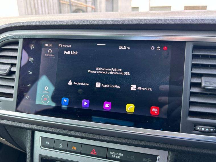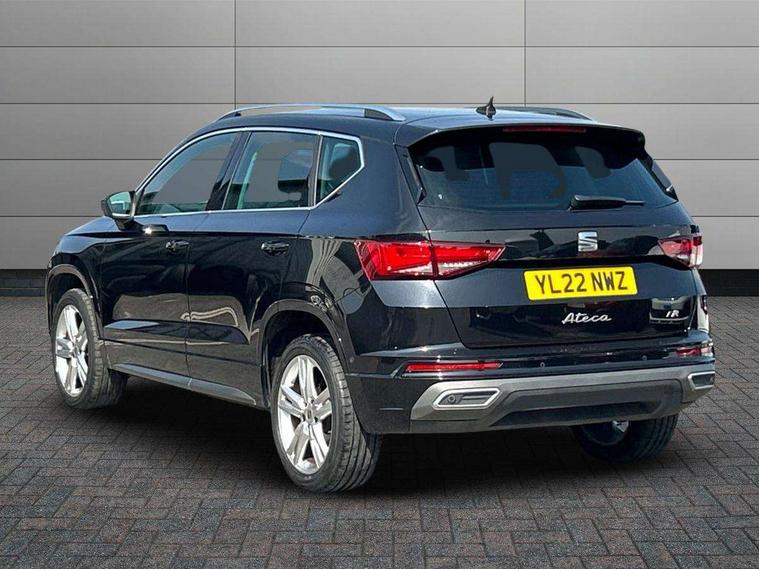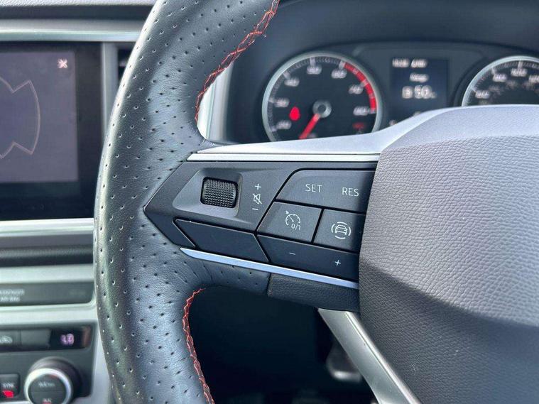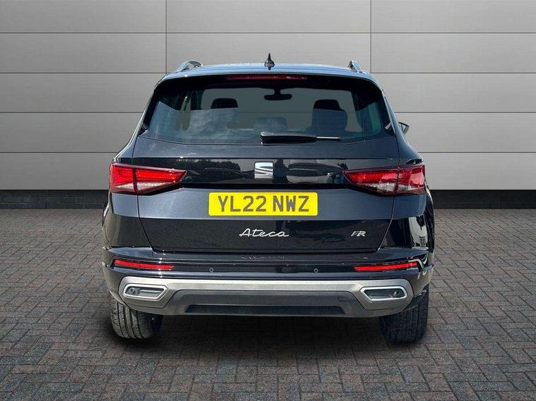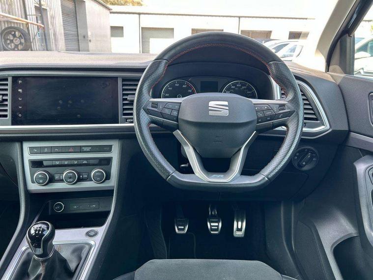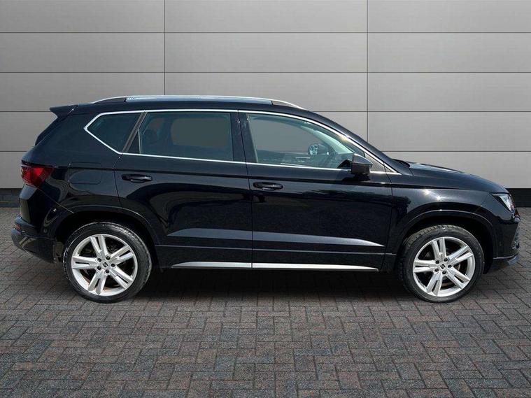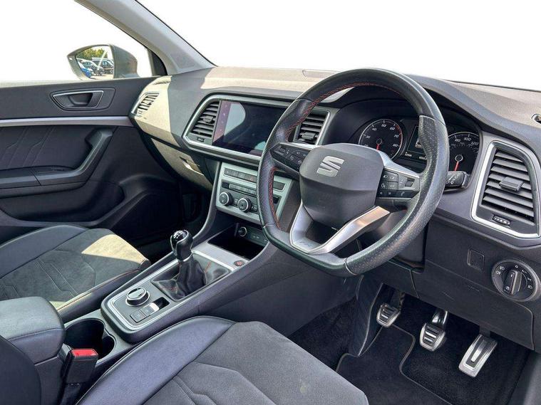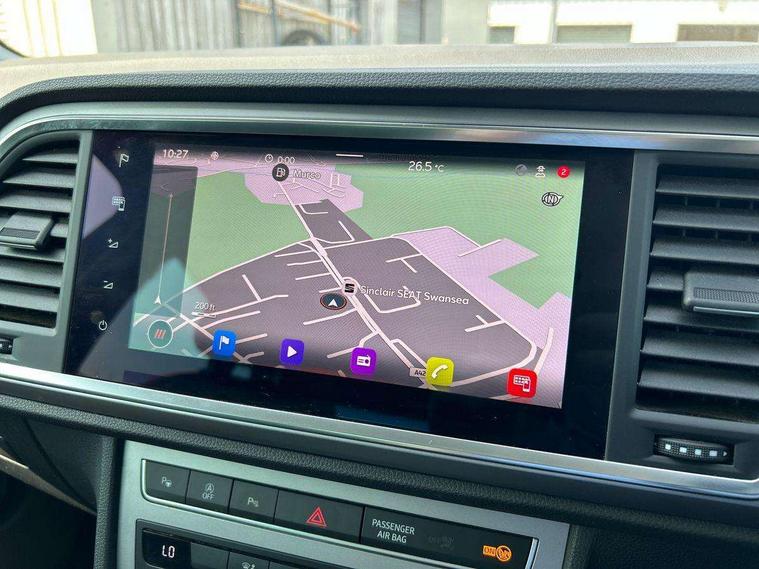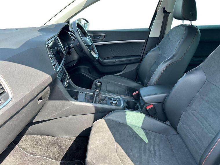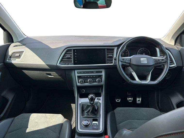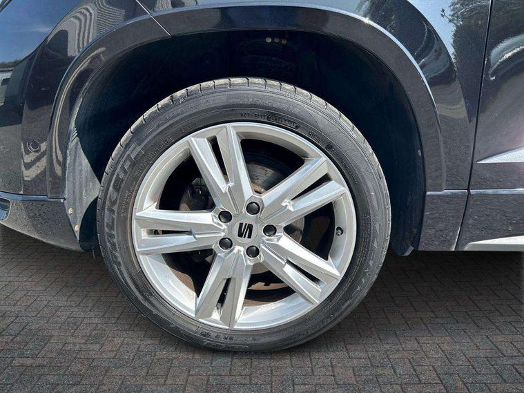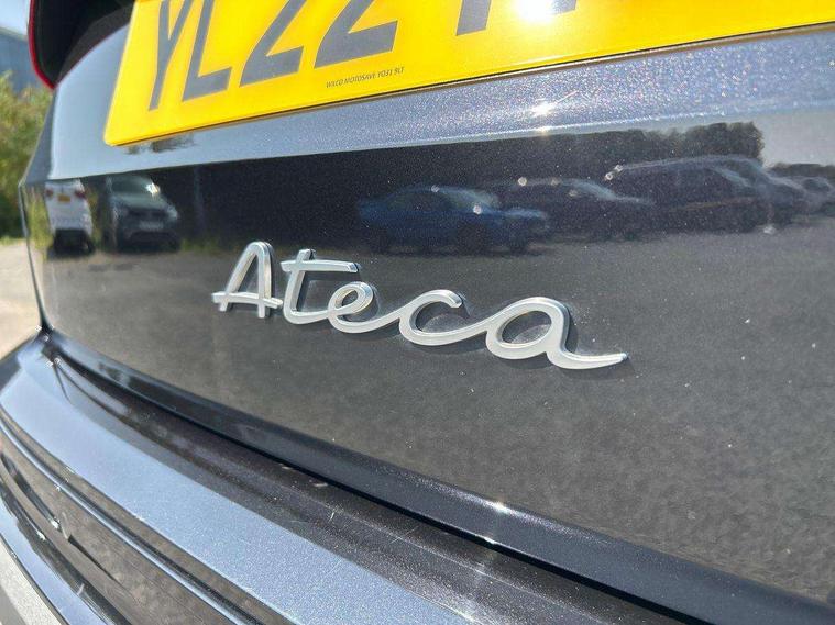 Colour multi-function on board computer display, Cruise control system with speed limiter, E-call, Outside temperature gauge, Progressive power assisted steering, SEAT drive profile with driving experience button - Normal, Sport, Eco and Individual mode, steering and throttle response, Self parking functionality (includes front and rear parking sensors), Trip computer, Wireless full link smartphone integration, Wireless phone charger, Steering wheel mounted audio/phone controls, Body colour bumpers, Body coloured wheel arch surrounds, Chrome front grille frame, Chrome roof rails, Chrome side window trim, Dark tinted rear windows, Daytime running lights, Door mirrors with welcome light silhouette, Dynamic headlight range control with self adjusting whilst driving, Electric adjustable/heated/folding door mirrors, Front and rear electric windows, Full LED headlamps with lens and LED front fog lamps with cornering function, Illuminated aluminium front door sill, LED rear tail lights with dynamic indicators, Rear fog lights, Rear side wing doors, Rear spoiler, Rear wash/wipe, Simulated exhaust pipes in chrome frame, 12v socket in front, 3 seat bench in 2nd row, 60/40 split folding rear seat, Aluminium pedals, Dual zone climate control, Front and rear head restraints, Front centre armrest, Front seat back storage pockets, Height adjustable driver and passenger seat with lumbar adjustment, ISOFIX points in outer rear seats with top tether anchorage points, Leather steering wheel and gear knob, Microsuede upholstery with front comfort seats, Rear armrest and easy back seat release mechanism from boot, Single front passenger seat, Storage compartment under driver's seat, Convenience pack - Ateca, Interior lighting pack - Ateca, Navigation system pack with DAB - Ateca, 3x3 point rear seatbelts, ABS, Traction control system (TCS), Electronic stability control (ESC) and Electronic differential lock system (XDS), Airbags - Driver and front passenger airbag with deactivation, front side, two curtain and driver's knee airbags, Electric parking brake with auto hold function, Front and rear seatbelt reminder, Front assist with autonomous emergency braking, Hill hold control, Manual rear child locks, Tiredness recognition system, Traction control, Tyre pressure monitoring system, Alarm, Keyless entry, Locking wheel bolts, Chrome interior detailing, 18" Brillaint silver alloy wheels,