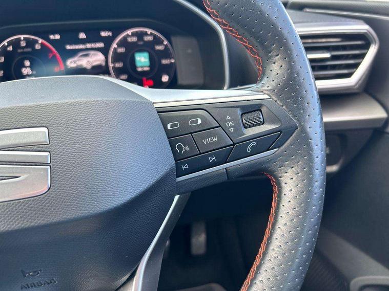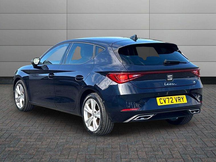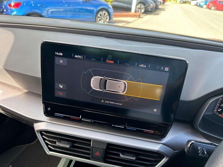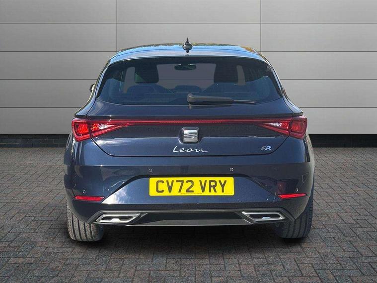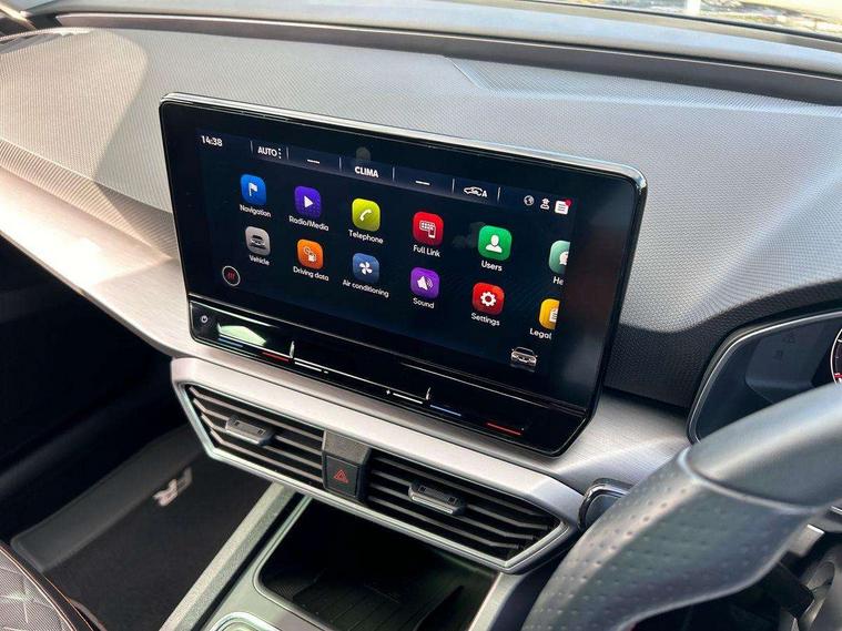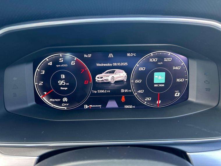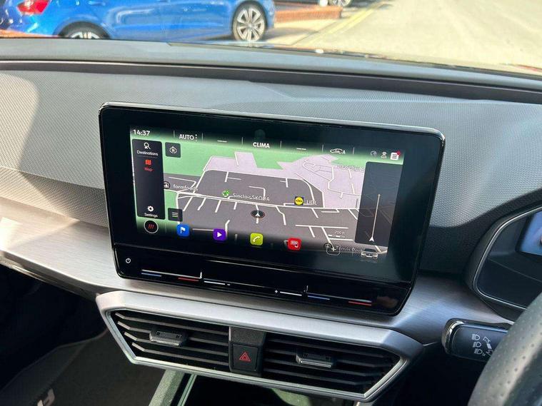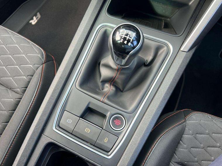Digital cockpit, E-call, Four x USB Type C ports, Front assist with forward collision warning braking reaction to vehicles, pedestrians and cyclists, Full link smartphone integration with Mirror Link, wireless Apple CarPlay and wired Google Android Auto, Lane assist, Lockable tailgate, Park assist (inc front/rear parking sensors), Power assisted speed sensitive electro-mechanical steering, RPM, trip computer, outside temp gauge, instrument light brightness, low fuel warning light, lights on reminder, gearshift indicator, SEAT drive profile with 4 modes (Eco/Normal/Sport/Individual), throttle response, Service interval indicator, Start/stop system with regenerative braking, Sports suspension, XDS electronic differential lock and dynamic traction support, 7 speakers, Auxiliary input socket, Auto dimming rear view mirror, Body colour door handles, Body coloured bumpers, Cosmo grey exterior mirrors with integrated LED indicators, Dark tinted rear windows, Dynamic headlight range control, Electric front/rear windows, Electrically adjustable, heated and folding door mirrors, FR sports bumper, Illuminated front door sill, LED front fog lamps with cornering function, LED Headlights with dynamic turn signals, LED tail lights and rear fog lights with rear coast to coast lighting, Rain sensing wipers, Rear side wing doors, Rear wash/wipe, Separate daytime running light with automatic headlight control and coming home feature, Third brake light, Welcome light silhouette from exterior mirrors, 12v power point in centre console, 3 seat bench in 2nd row, 60/40 split rear bench seat with armrest, Ambient lighting with glovebox, footwell and single monocolour, Driver/passenger manual seat height adjustment, Dust/pollen filter, Flat bottomed perforated leather steering wheel with red stitching and FR logo and leather gear stick, Folding boot cover, Front and rear height adjustable headrests, Front and rear reading lights X 4, Front centre armrest, Front seatback storage pockets, Height/reach adjust steering wheel, ISOFIX points in outer rear seats with top tether anchorage points, Luggage tie-down hooks, Lumbar adjustment for front seats, Single front passenger seat, Sunvisors with covered illuminated mirror, Three zone climate control, Two tone cloth upholstery, Media system plus with navigation - Leon, 3 point seatbelts on all rear seats, ABS, Brake control system - ESC and brake booster, Child proof door locks, Driver and front passenger airbags with front passenger airbag de-activation, front side and curtain airbags, Electronic parking brake, Extended safety system - seat belt tensioner, window closure and hazard lights, Hill hold control, Rear disc brakes, Seat belt reminder for front and rear seats, Tiredness recognition system, driver alert system, Tyre pressure monitoring system, Anti theft alarm system with interior monitoring in cab, backup horn and towing protection, KESSY Go (Keyless start), Locking wheel bolts, Wireless phone charging, Chrome interior detailing, 17" Dynamic Bi-spoke alloy wheels with 91W tyres, Tool kit,